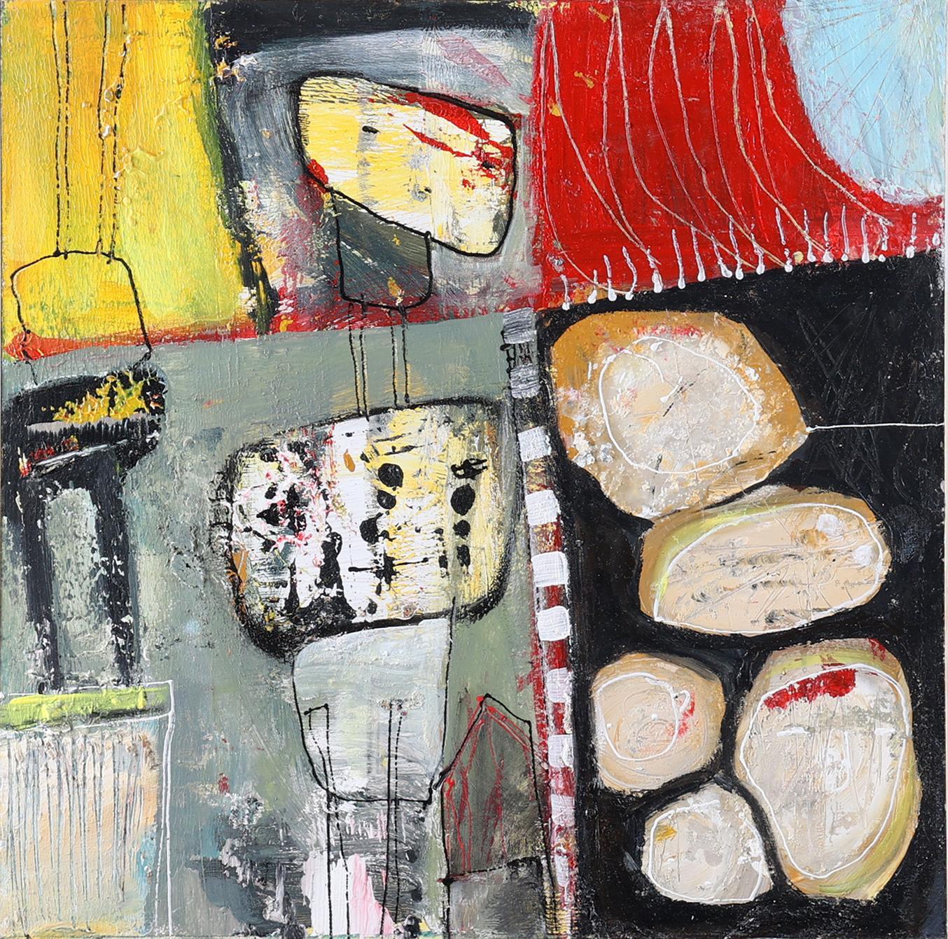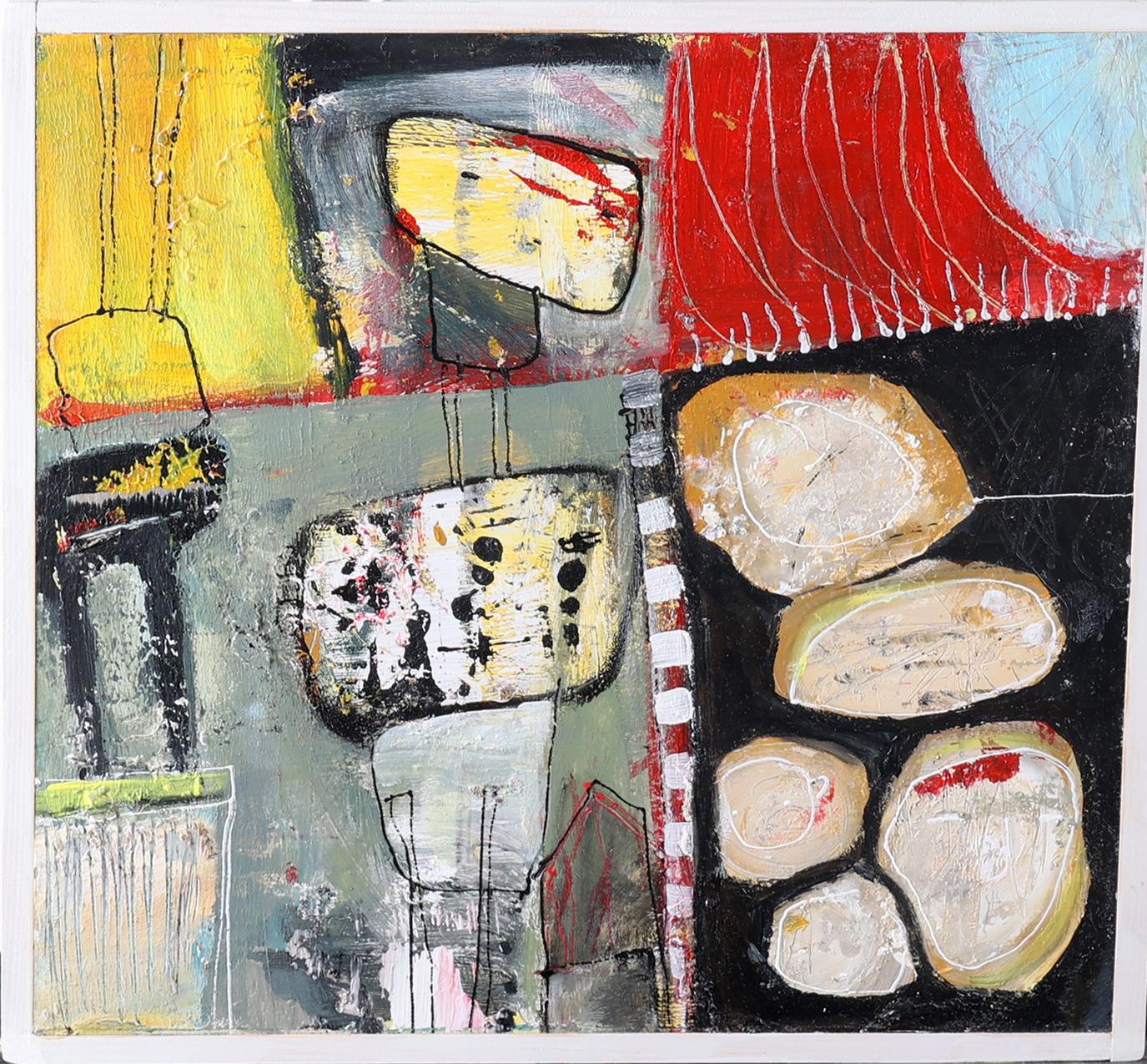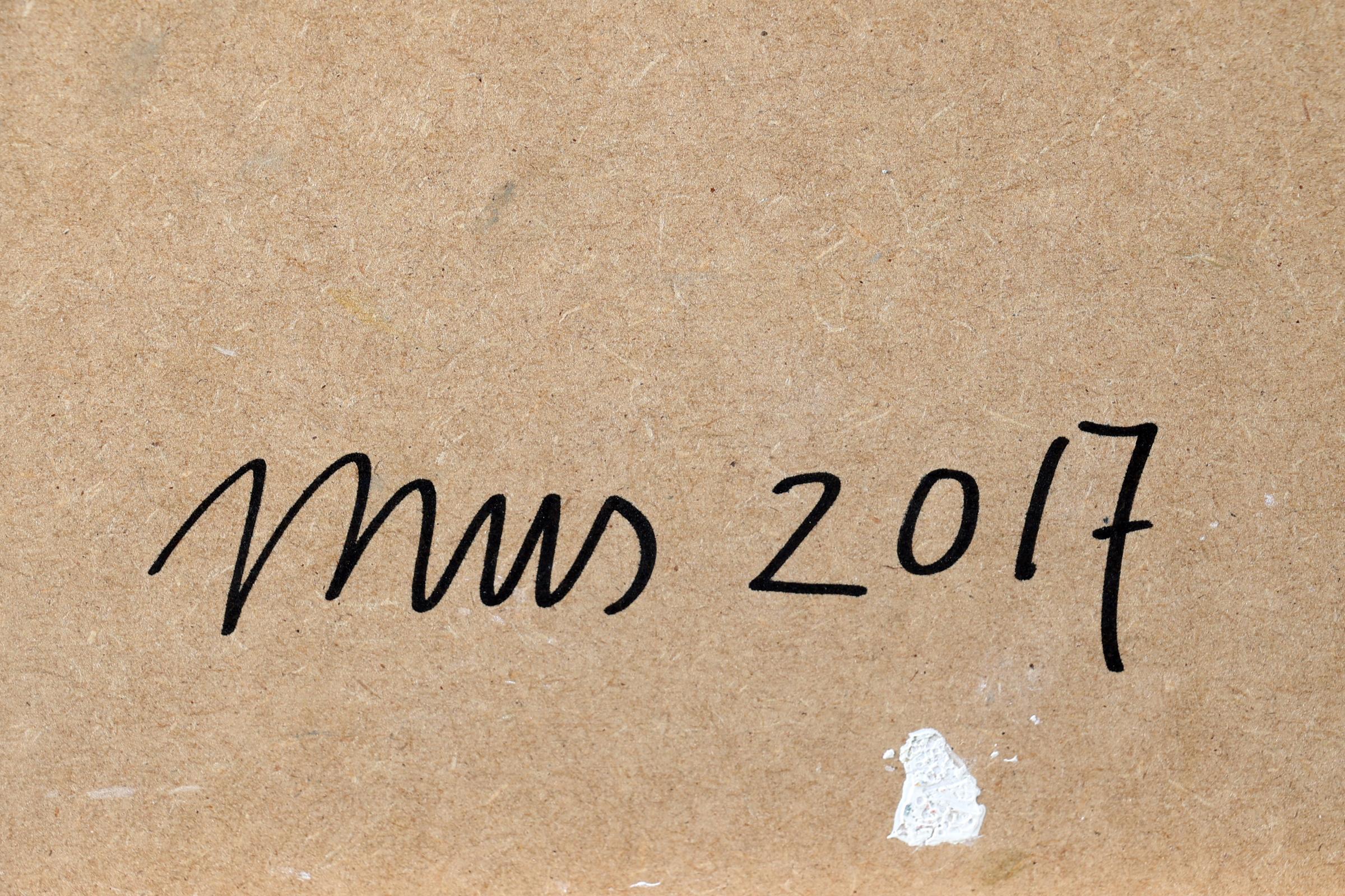 Mus Richter, Abstract, acryl op paneel, gedateerd 2017, 30 x 30 cm.