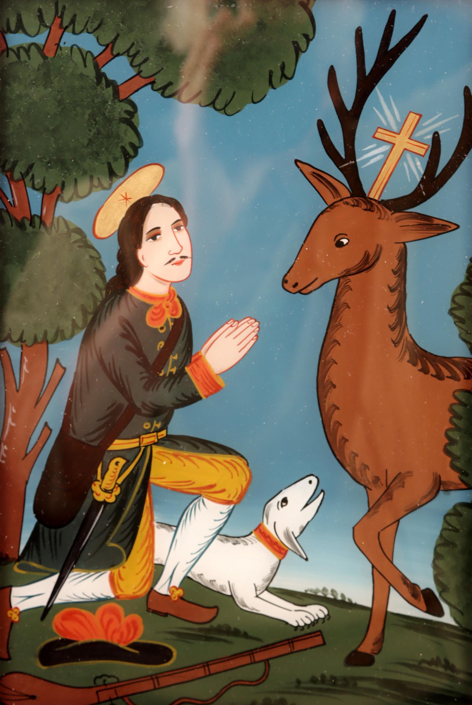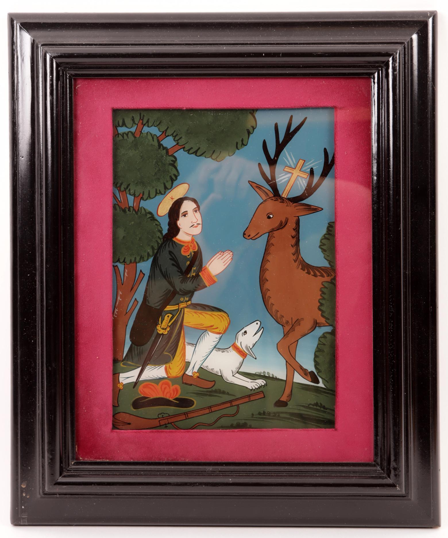 Religieuze achtersglasschildering, 44 x 36 cm.