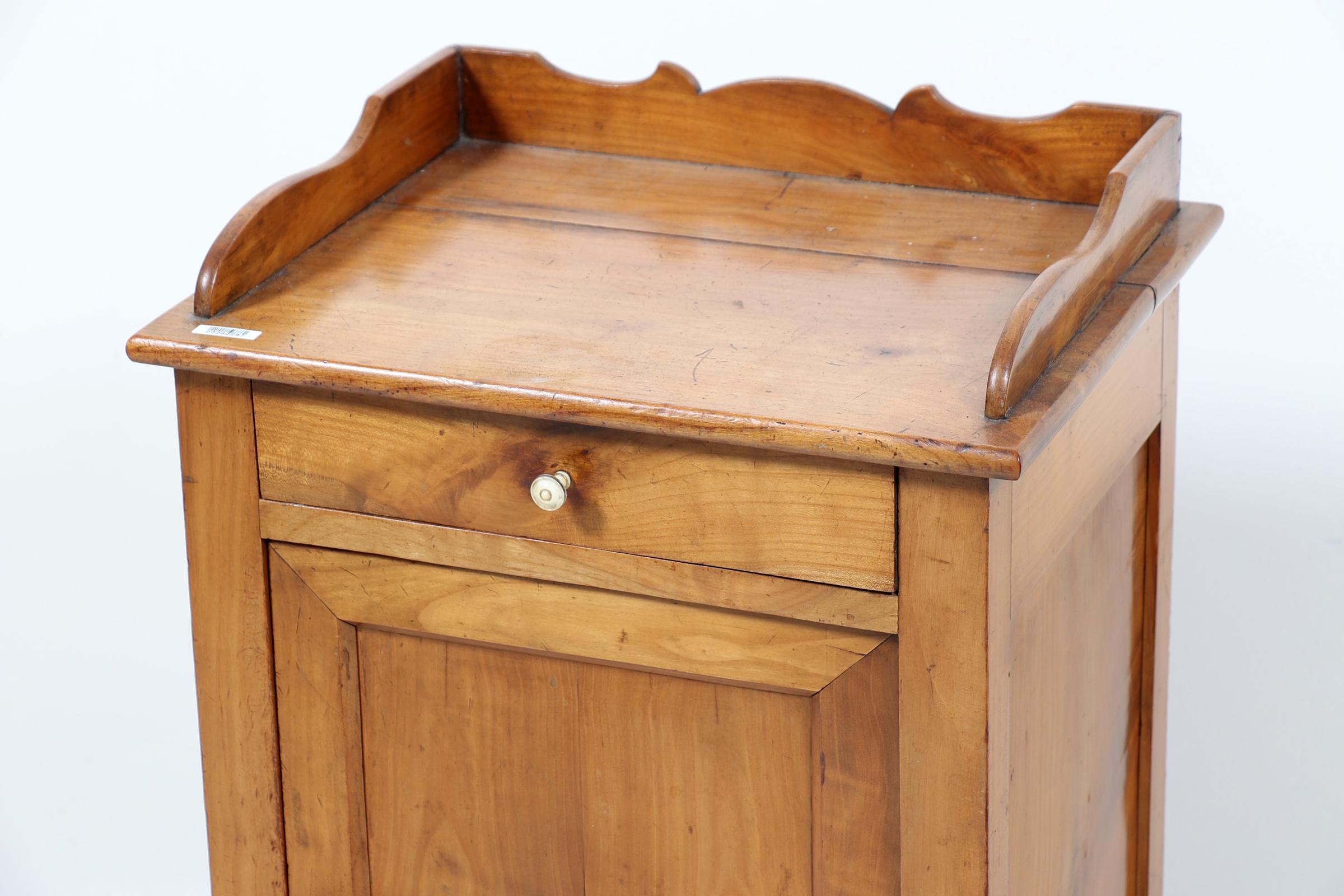 Antiek mahoniehouten 1-deurs kast met lade, h.87 x b.44 x d.34 cm.