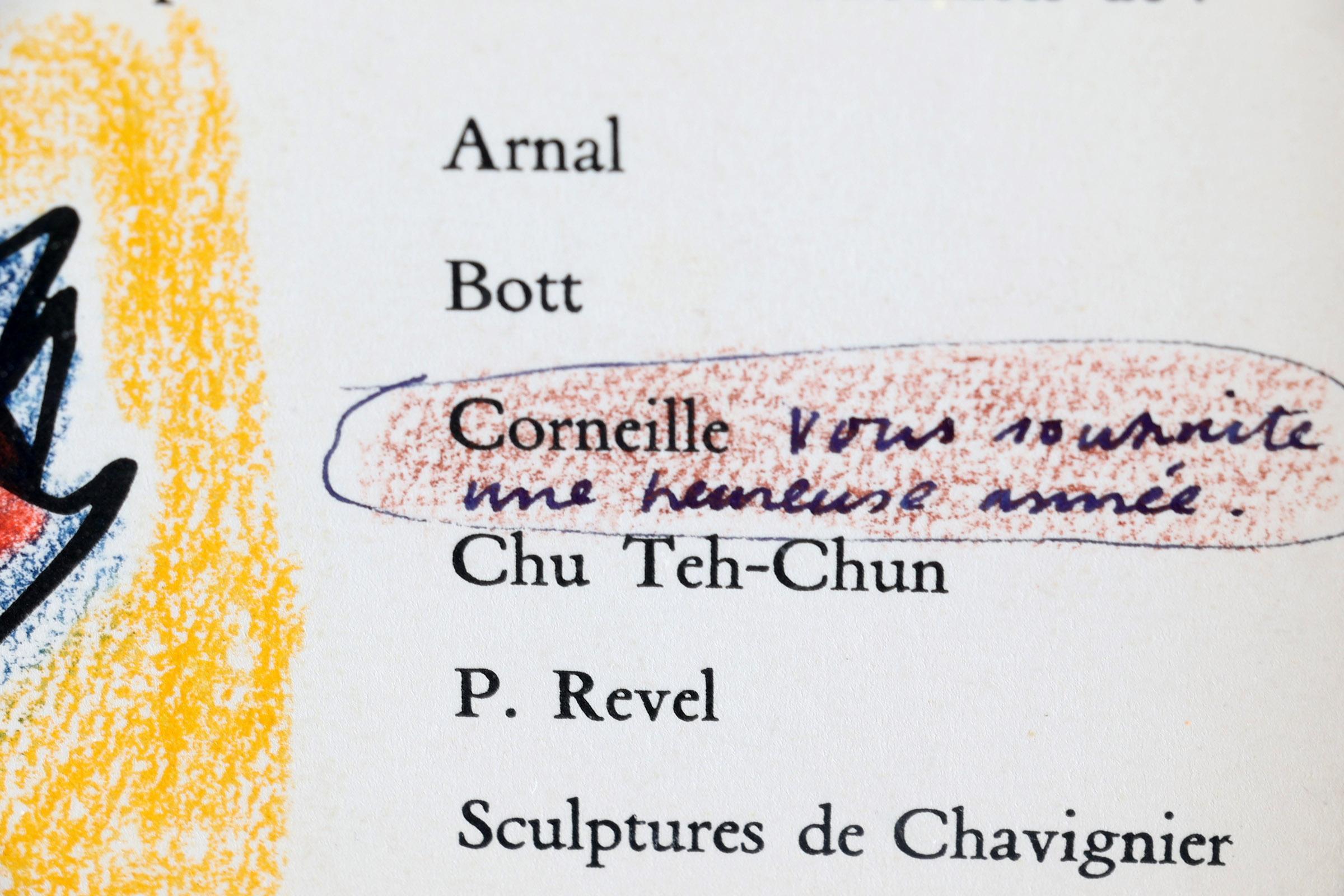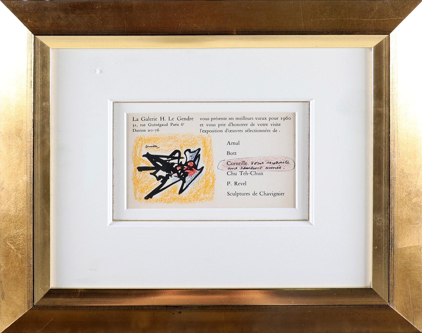 La Galerie H. Le Grande ingekleurde invitatie door Corneille met handgeschreven tekst, 13 x 18 cm., inclusief echtheidsverklaring Nico Koster