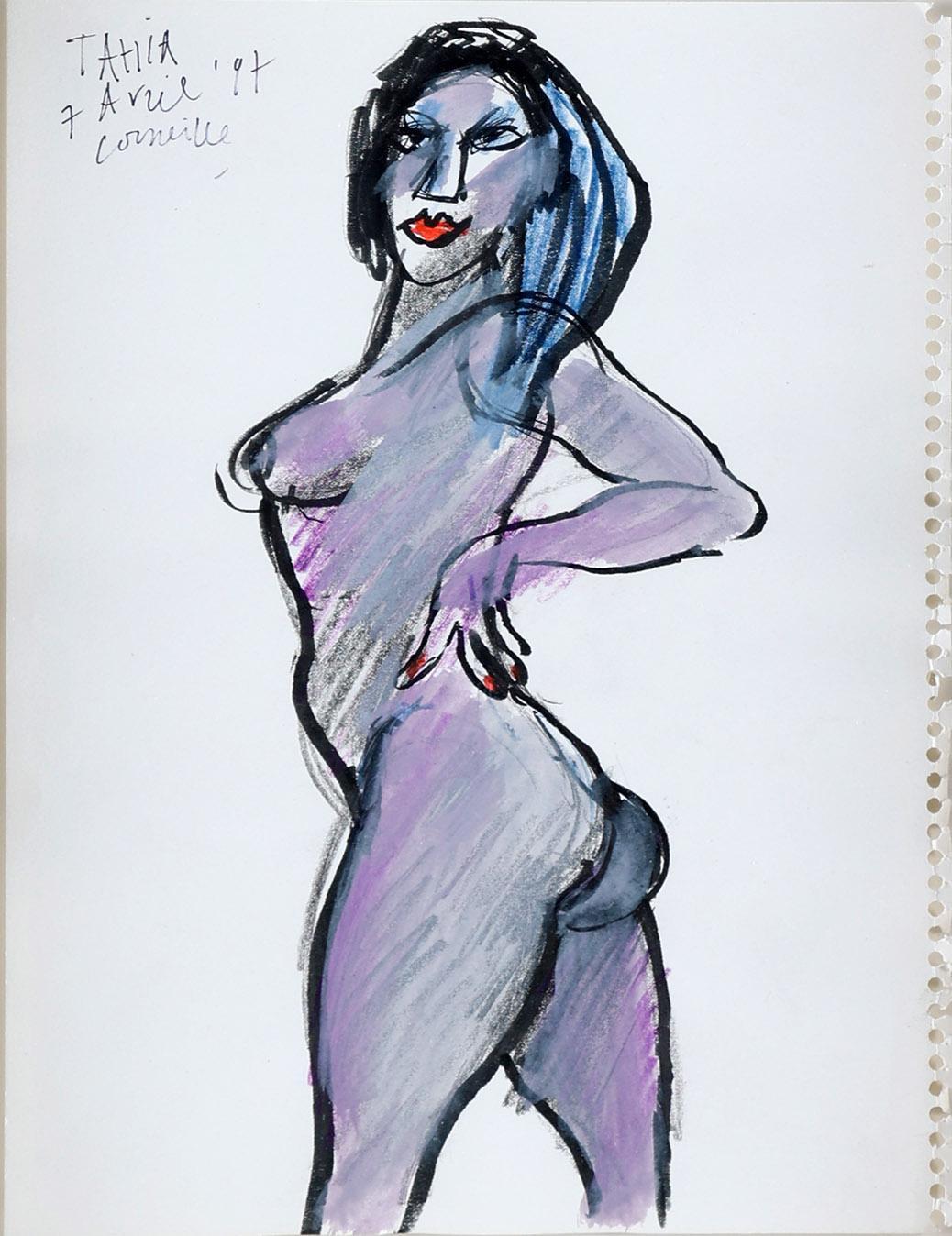 'Corneille', alias van Cornelis Guillaume van Beverloo (1922- 2010), Tahia, gemengde techniek op papier, gedateerd 7 april '97, 31 x 22,5 cm., inclusief echtheidscertificaat BernArt Gallery