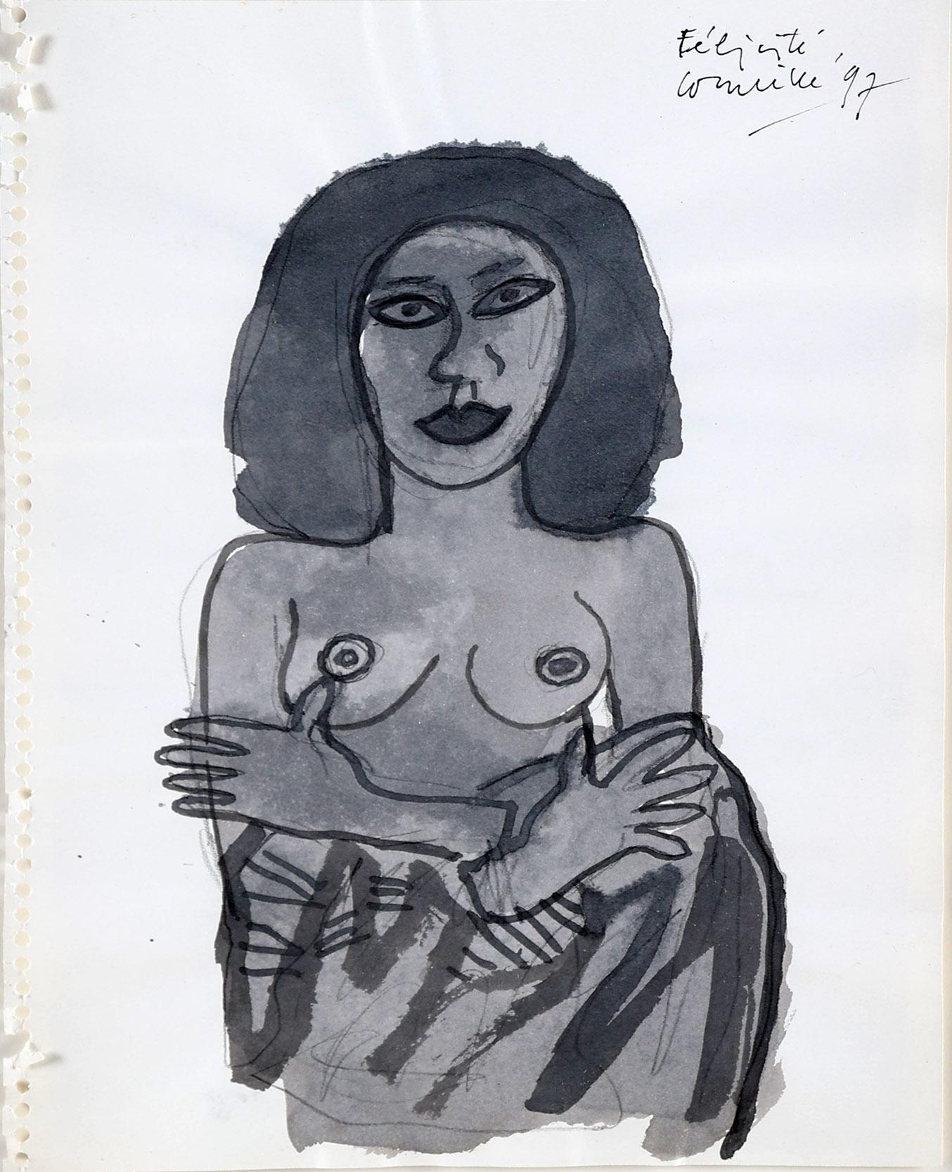 'Corneille', alias van Cornelis Guillaume van Beverloo (1922- 2010), Félicité, gemengde techniek op papier, gedateerd '97, 30,5 x 22,5 cm., inclusief echtheidscertificaat BernArt Gallery