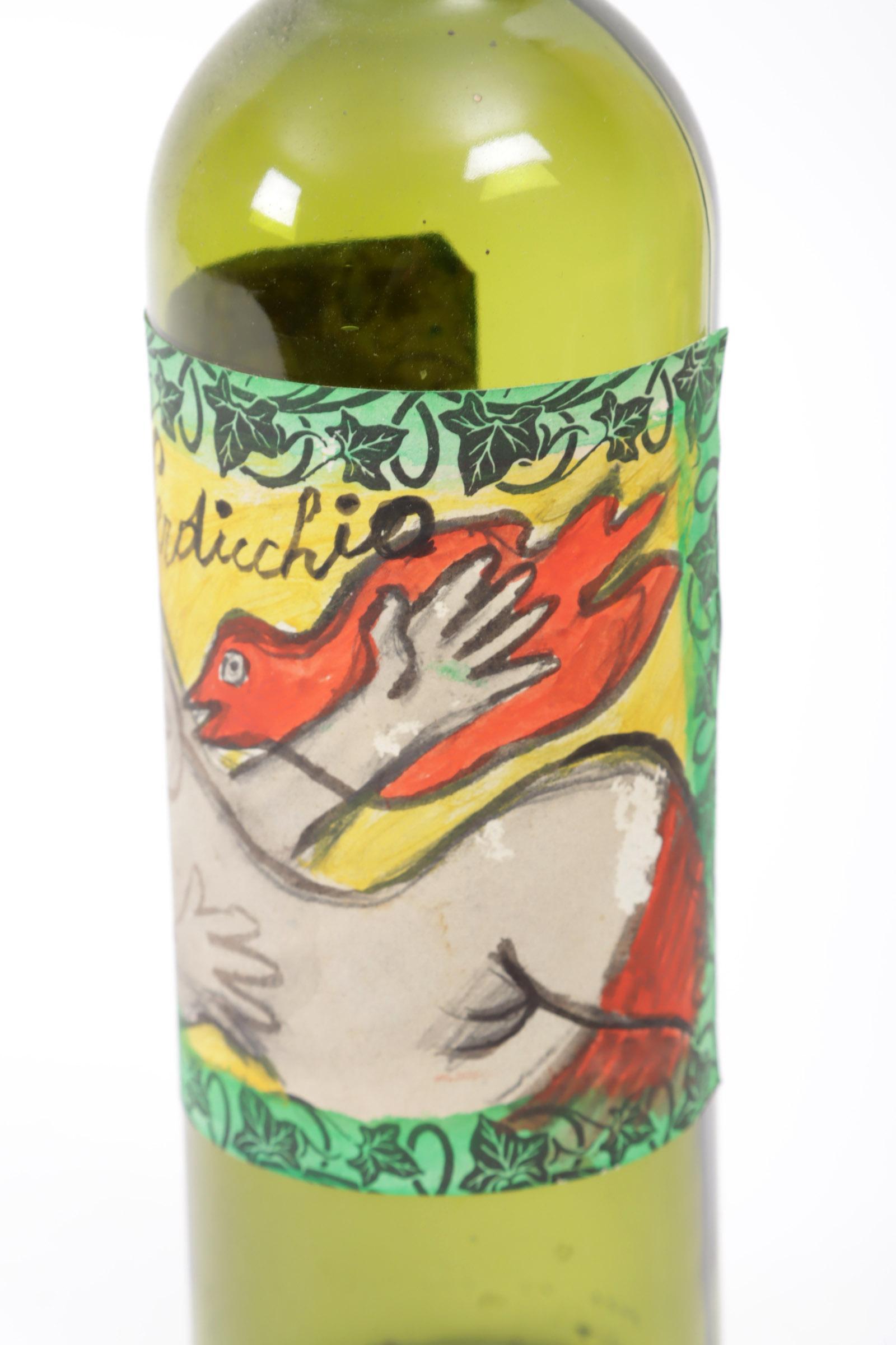 'Corneille', alias van Cornelis Guillaume van Beverloo (1922- 2010), Verdicchio, geschilderd wijnetiket op een fles wijn