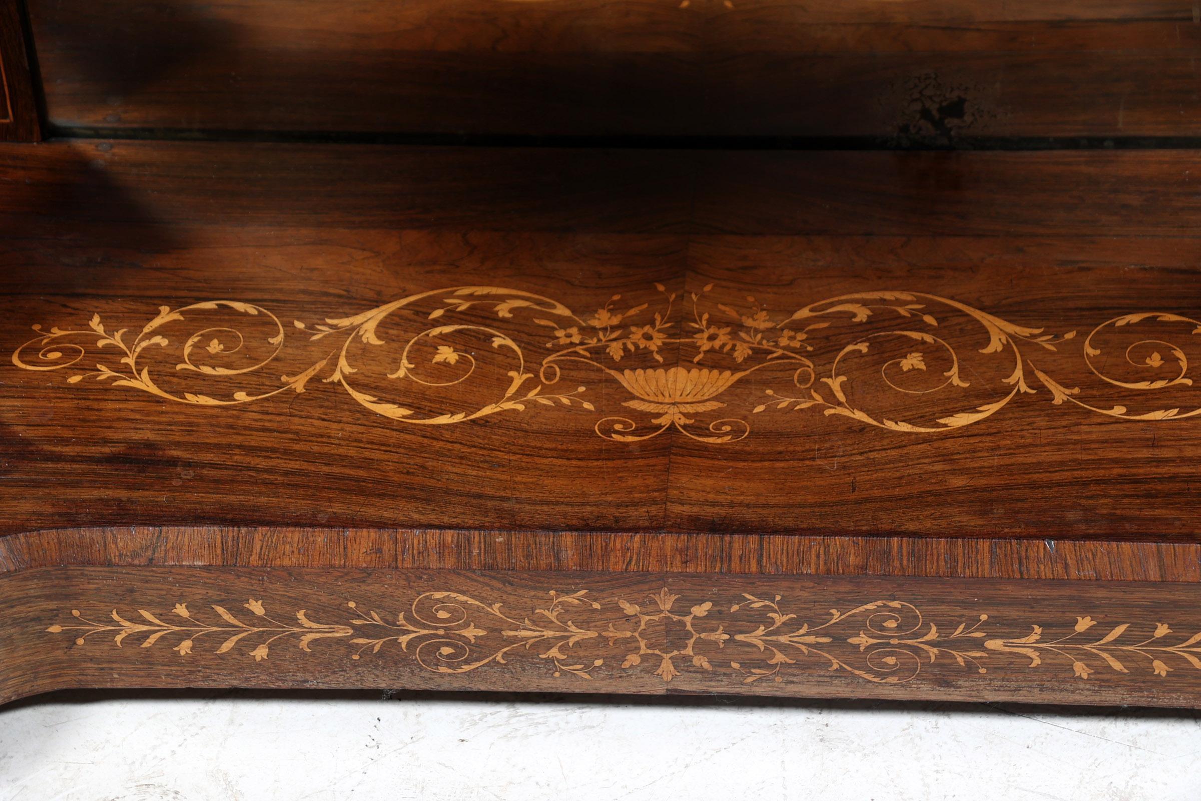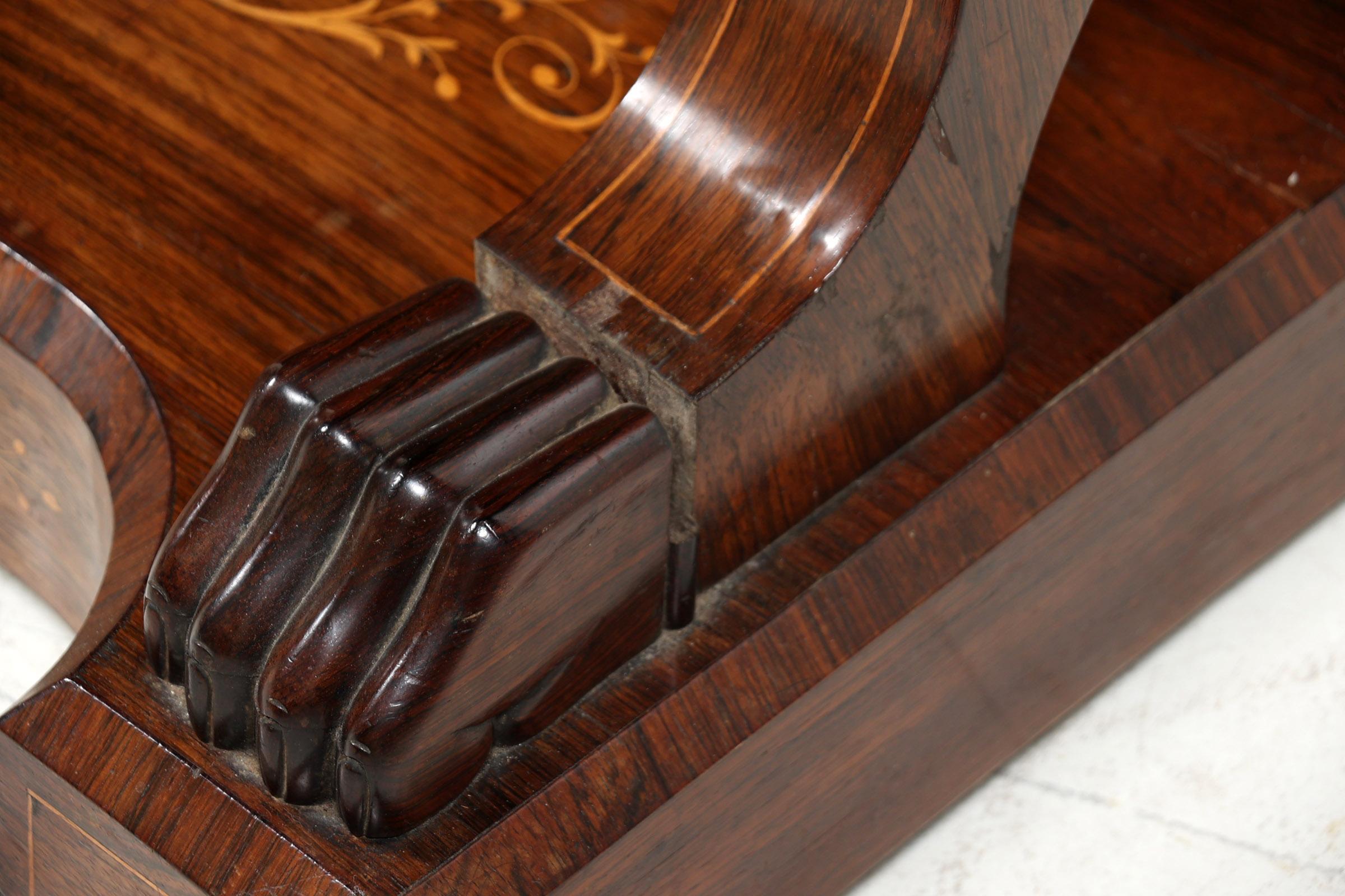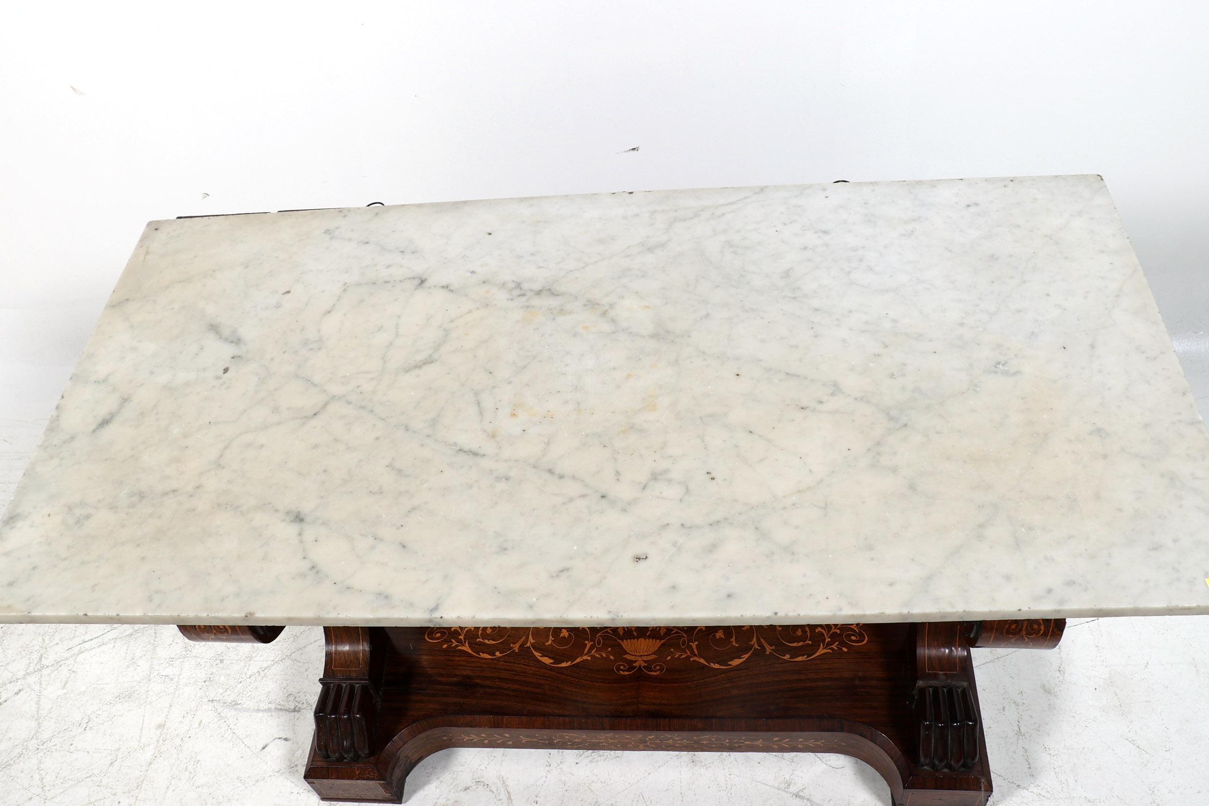 Antieke ingelegde palissanderhouten empire trumeau met buffet opstand en wit marmeren blad, rustend op klauwpoten, h.82 x b.119 x d.60 cm.