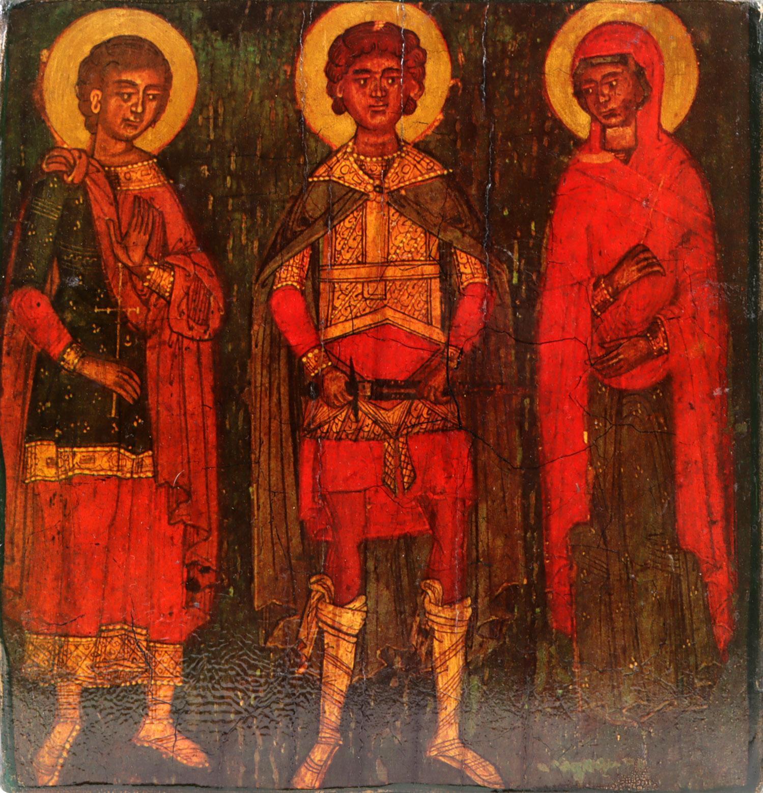 Oude Ikoon, Drie heiligen, Cyros, 28 x 28 cm.