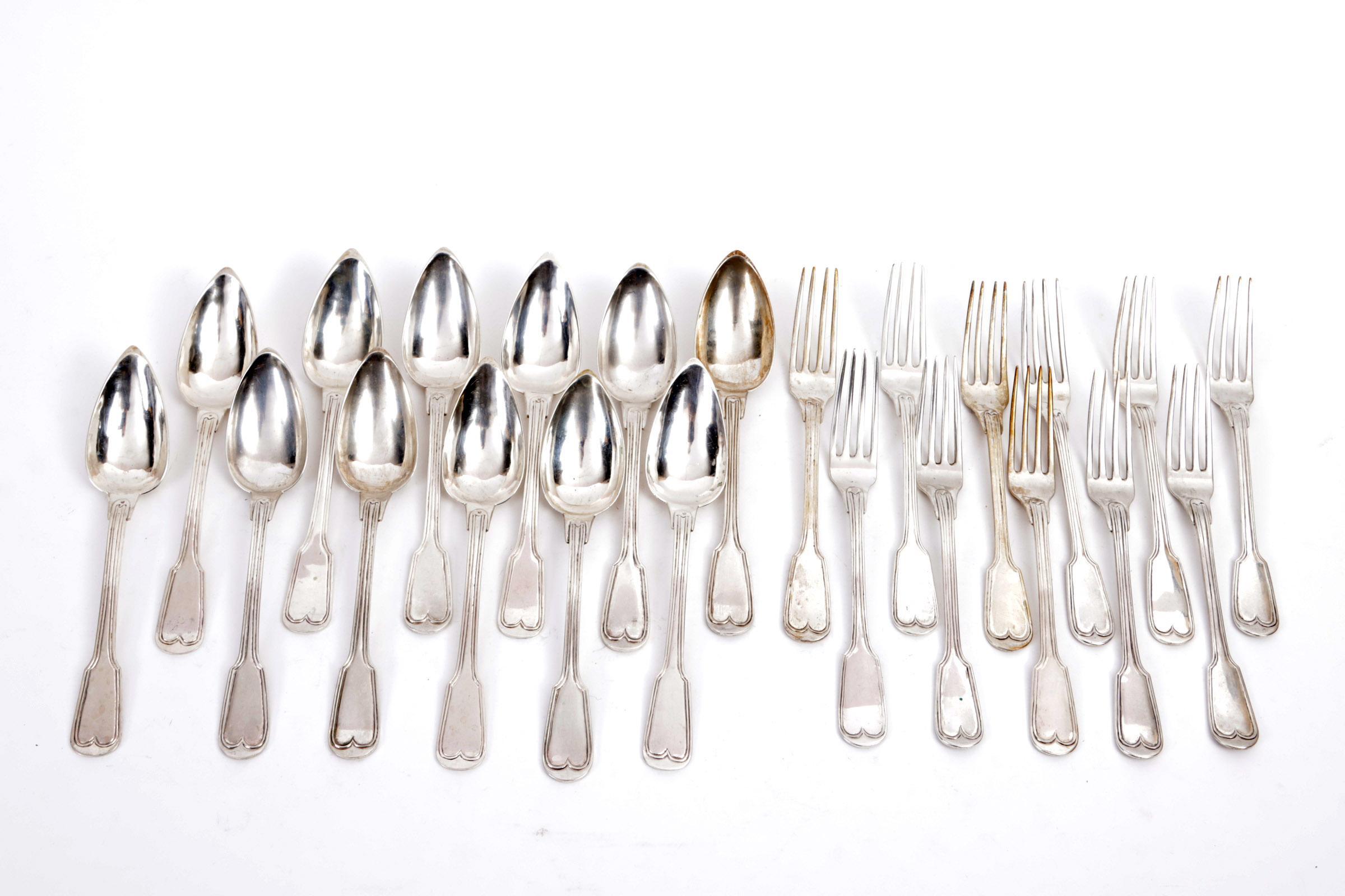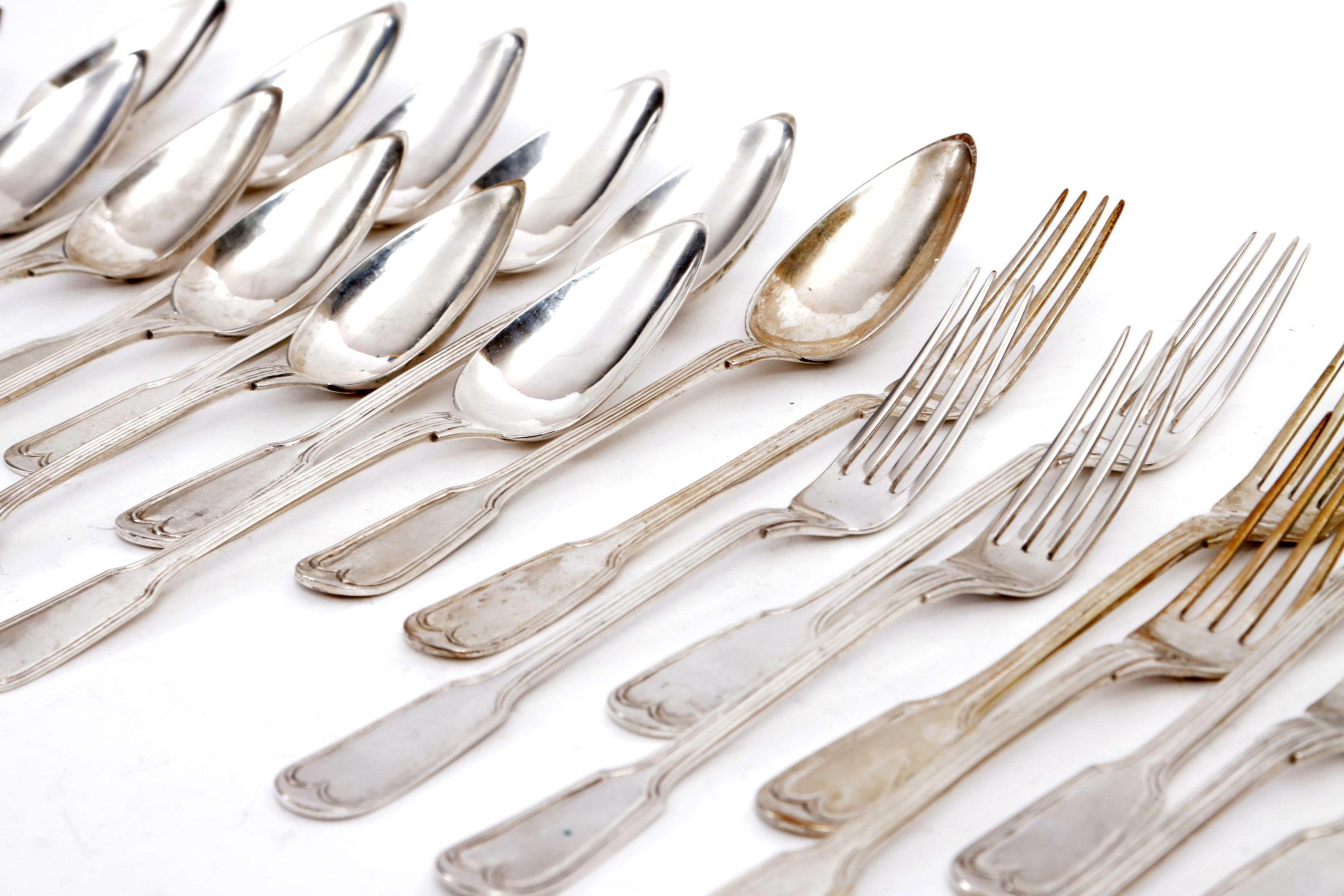 12 verzilverde lepels en 11 vorken