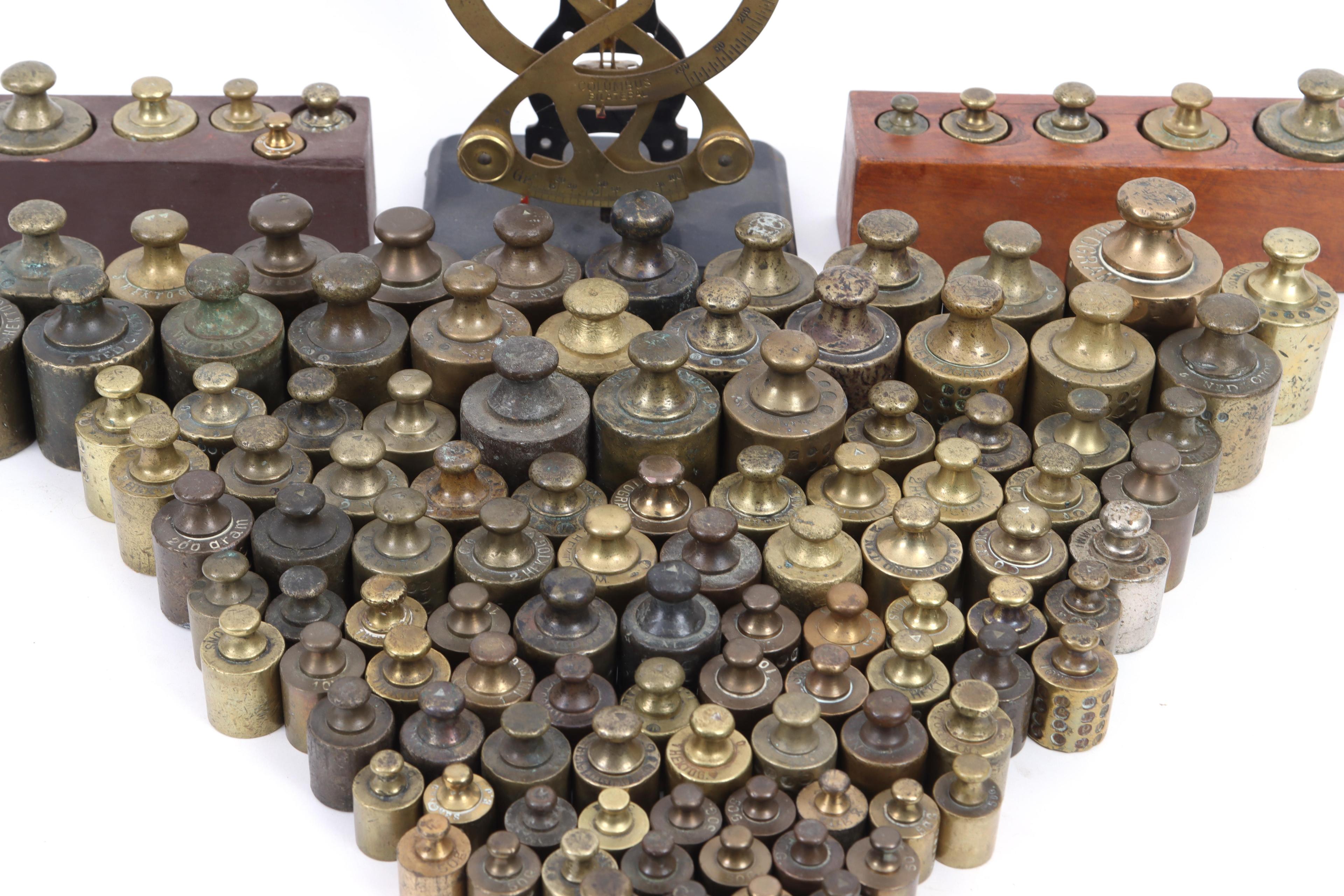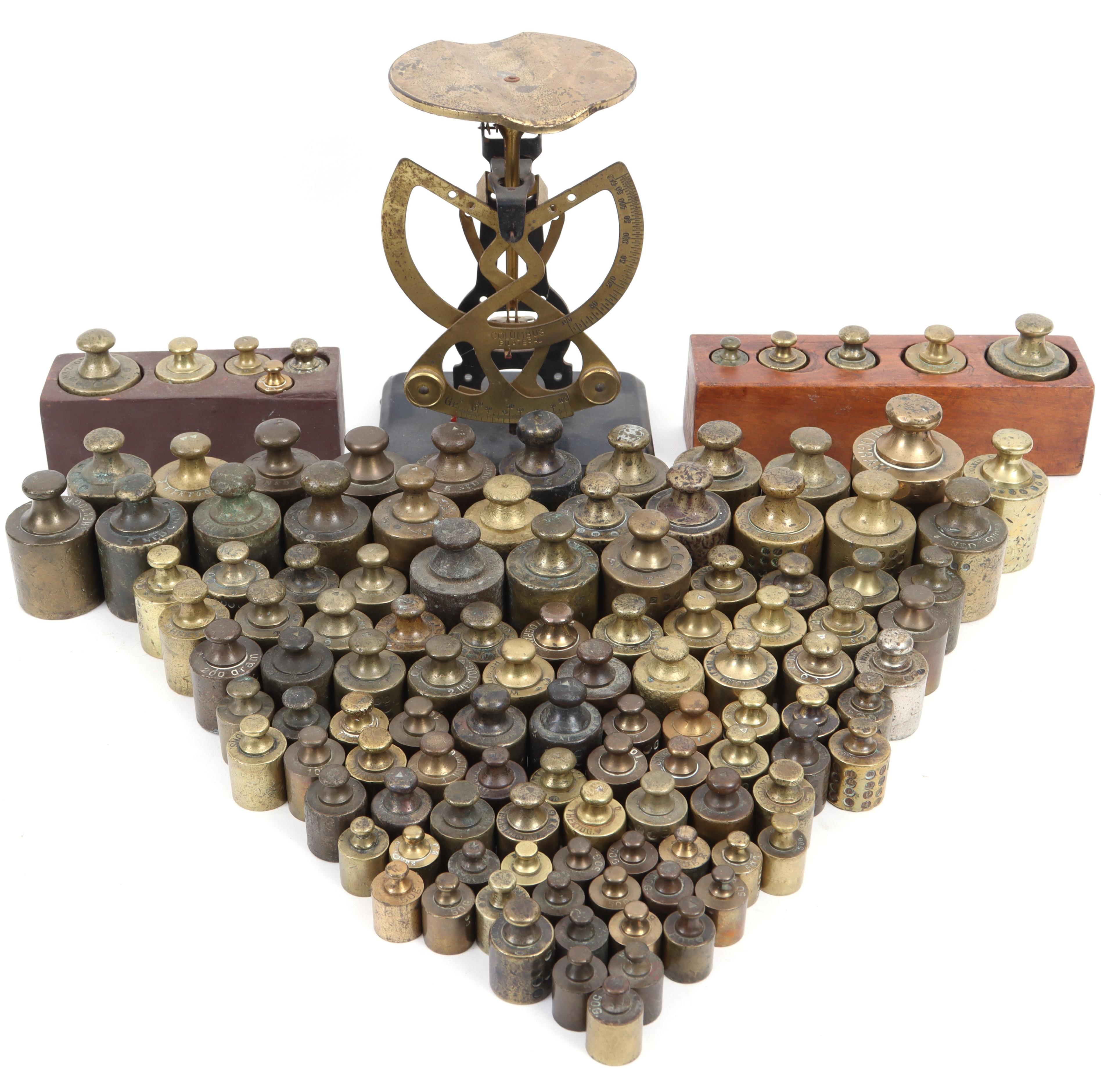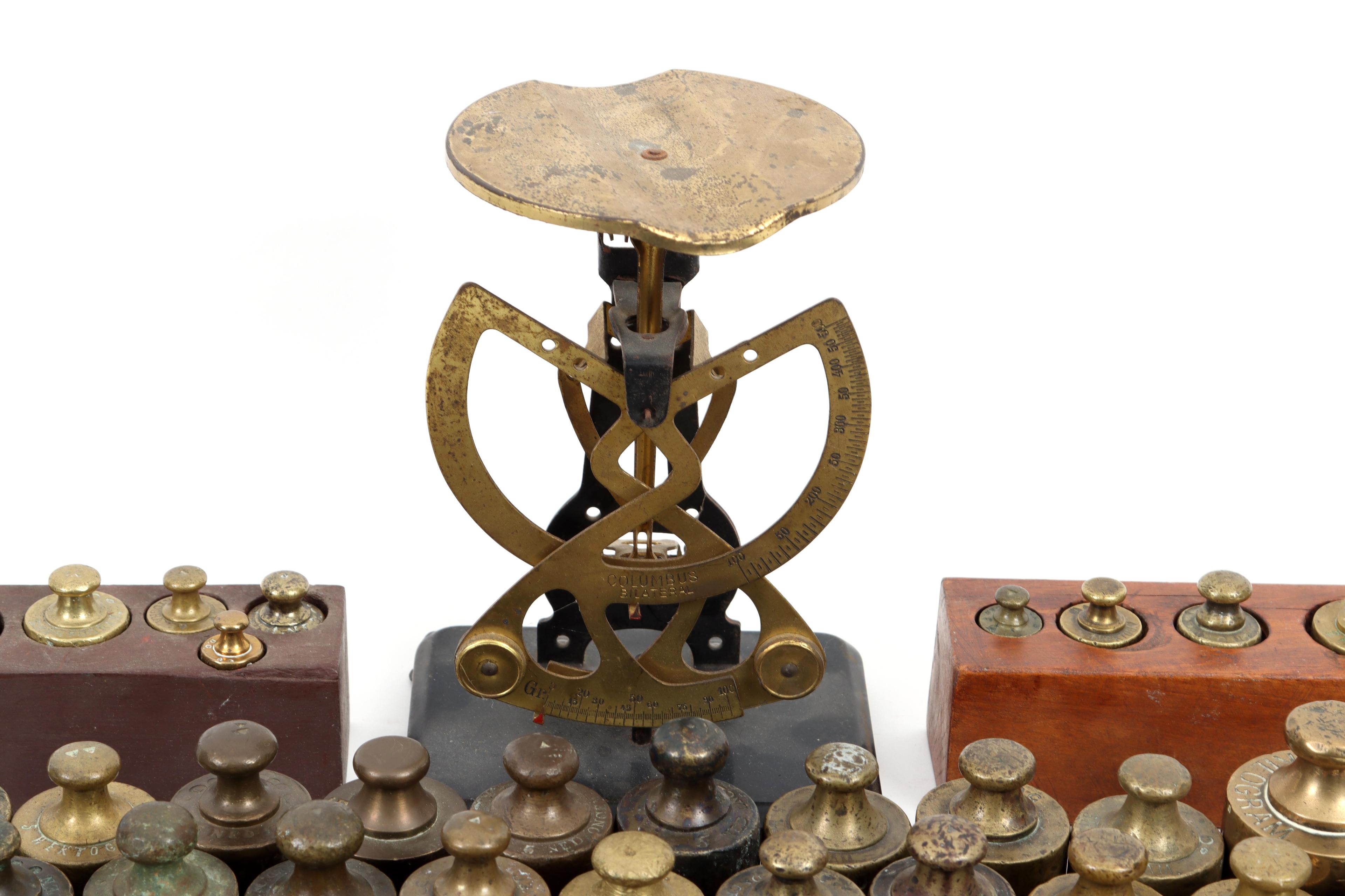Grote koop diverse oude en antieke gewichten en een weegschaal