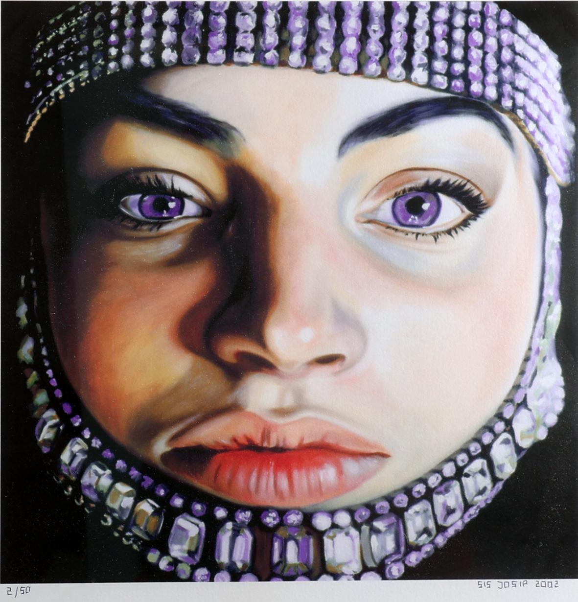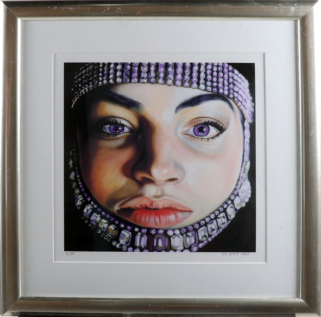 Sis Josip, Gezicht met edelstenen, handgesigneerde litho, nr.2/50, 44 x 44 cm., gedateerd 2002