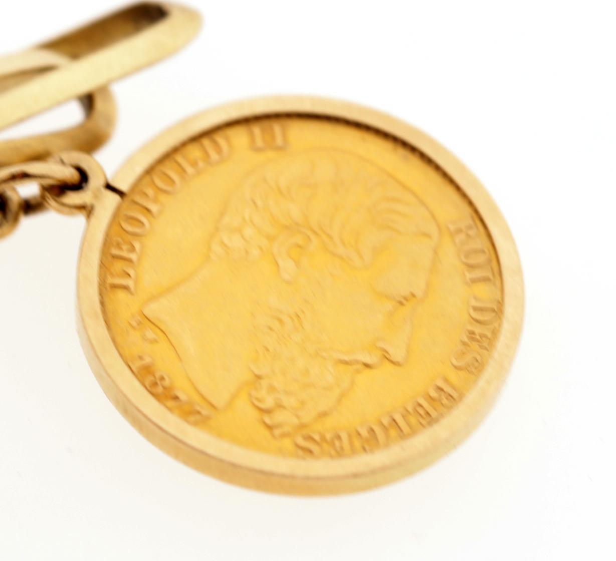 14 Kt. gouden schakelarmband met diverse fijngouden munten, etc., totaal 71,2 gram