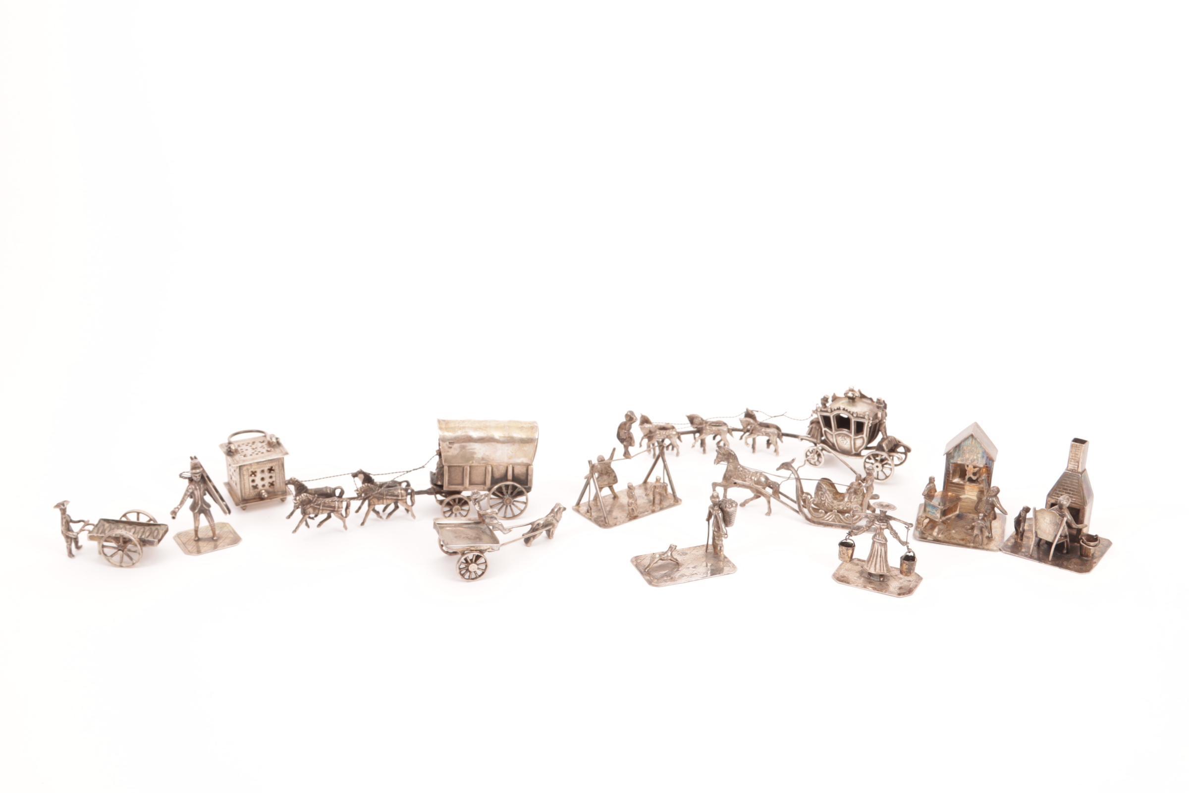 Koop van 12 diverse zilveren miniaturen, 390 gram