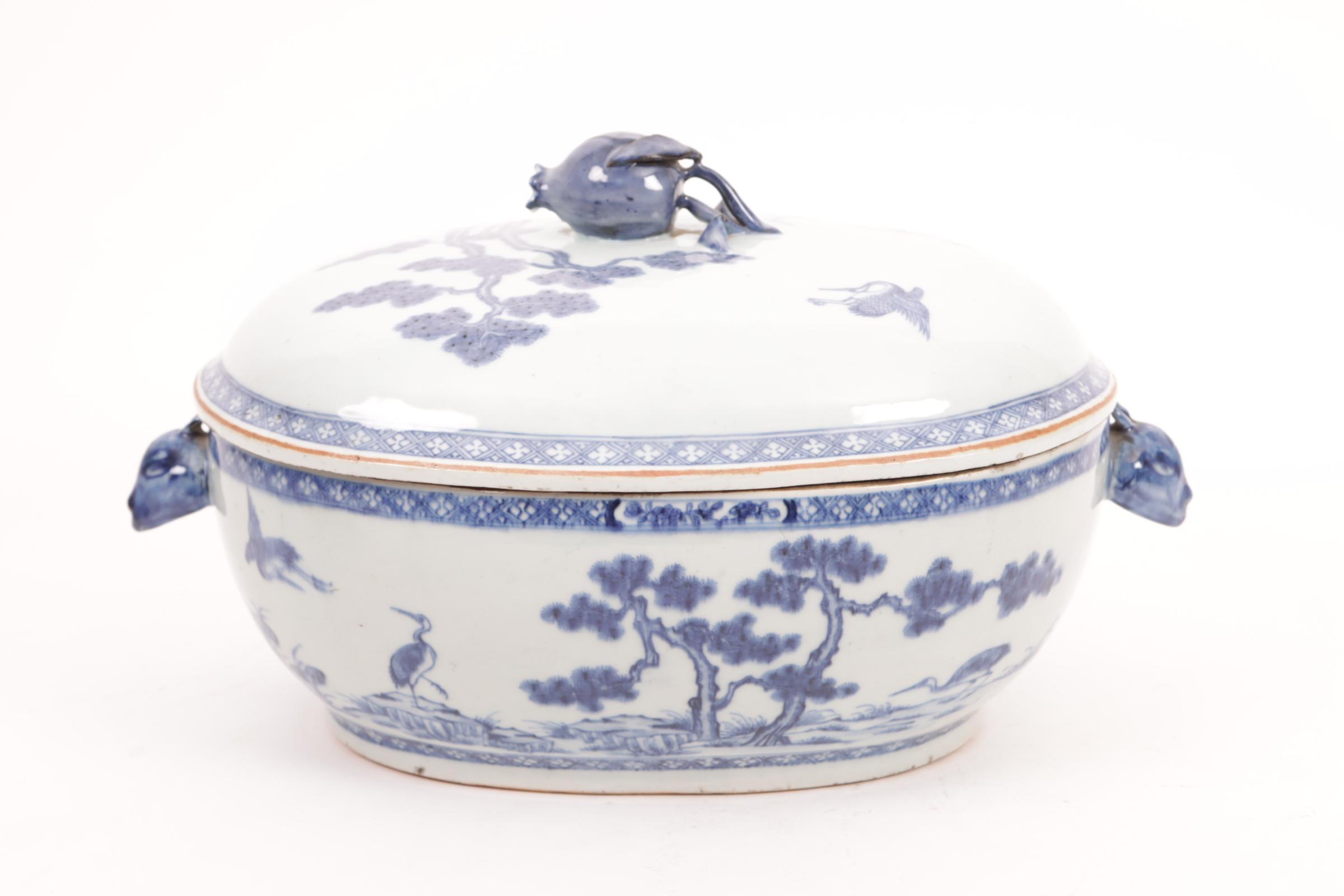 Blauw/wit gedecoreerde Chinese ovale dekselterrine