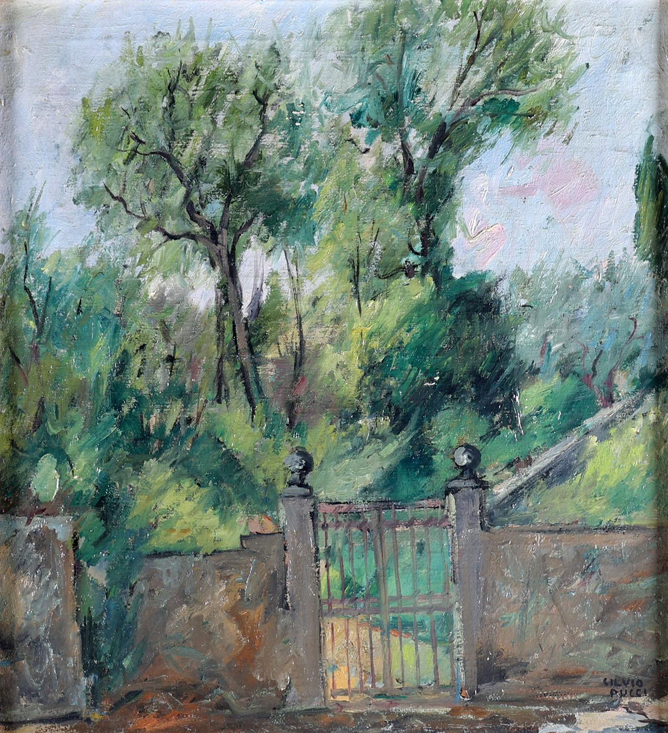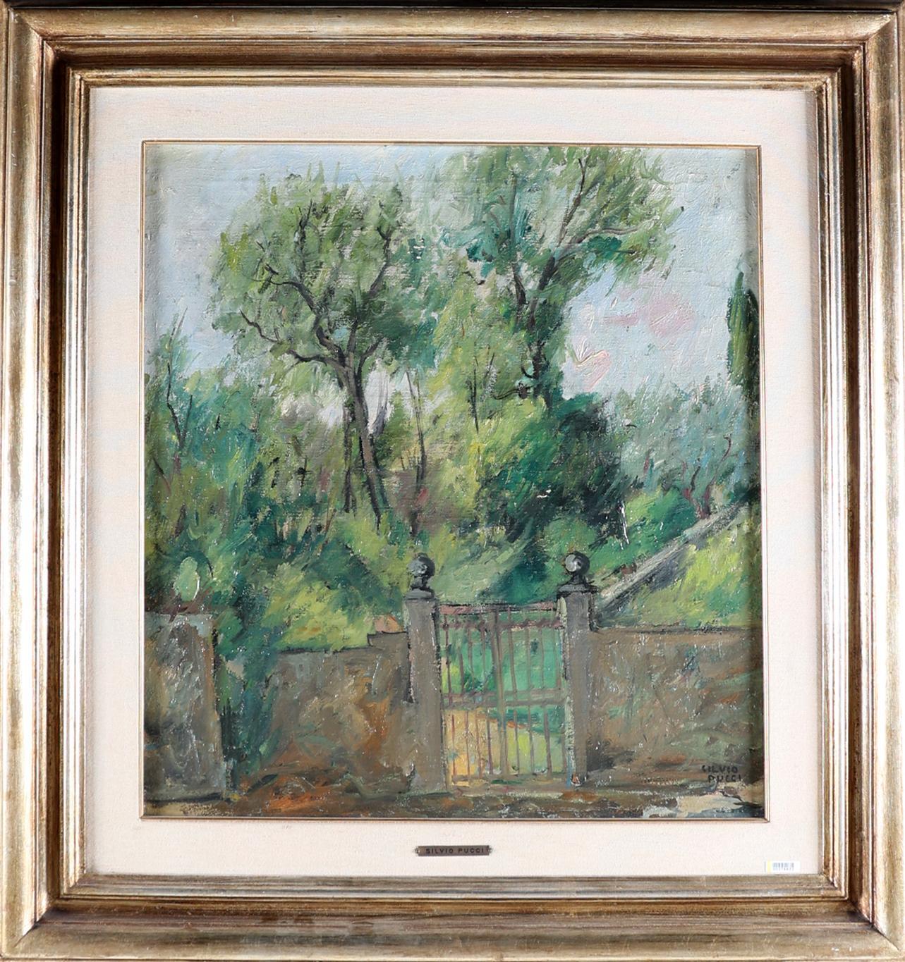 Silvio Pucci, Gezicht op tuinhek met tuin, olieverf op doek, 65 x 60 cm. of 96 x 90 cm.