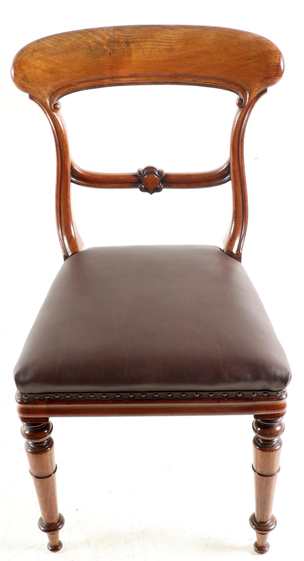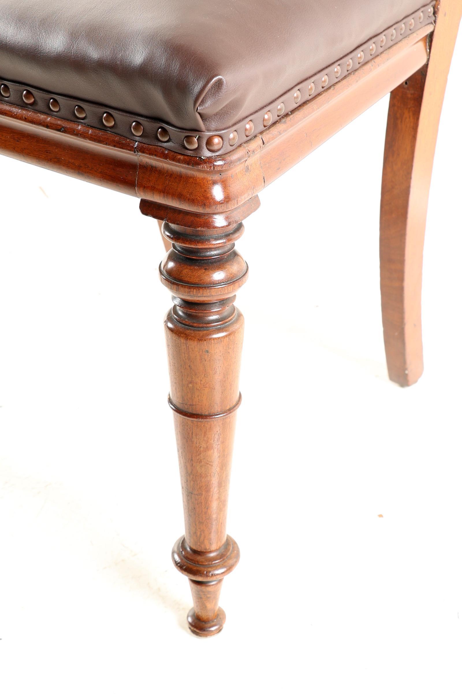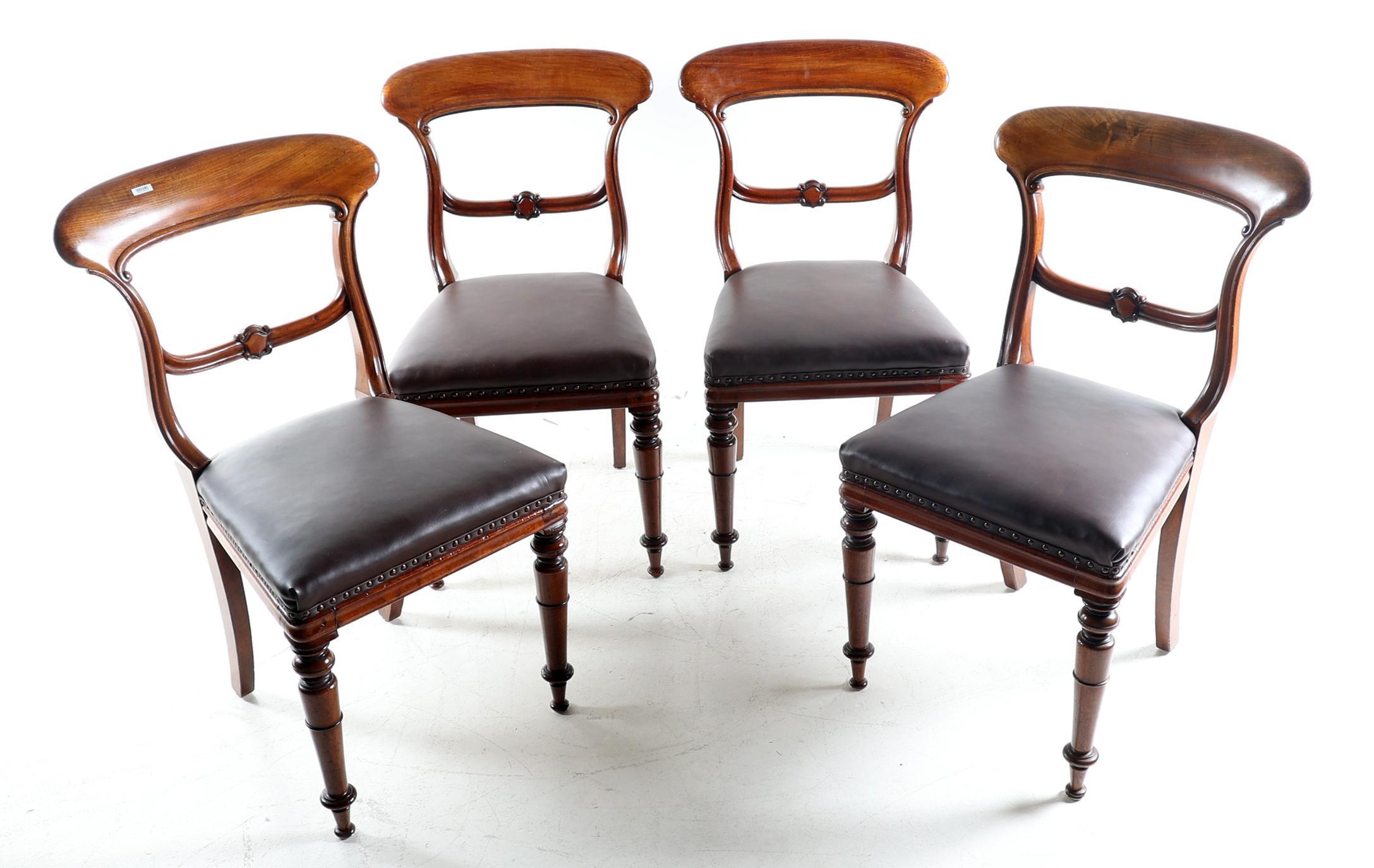 4 Antieke mahoniehouten oorstoelen met bruin leder bekleed