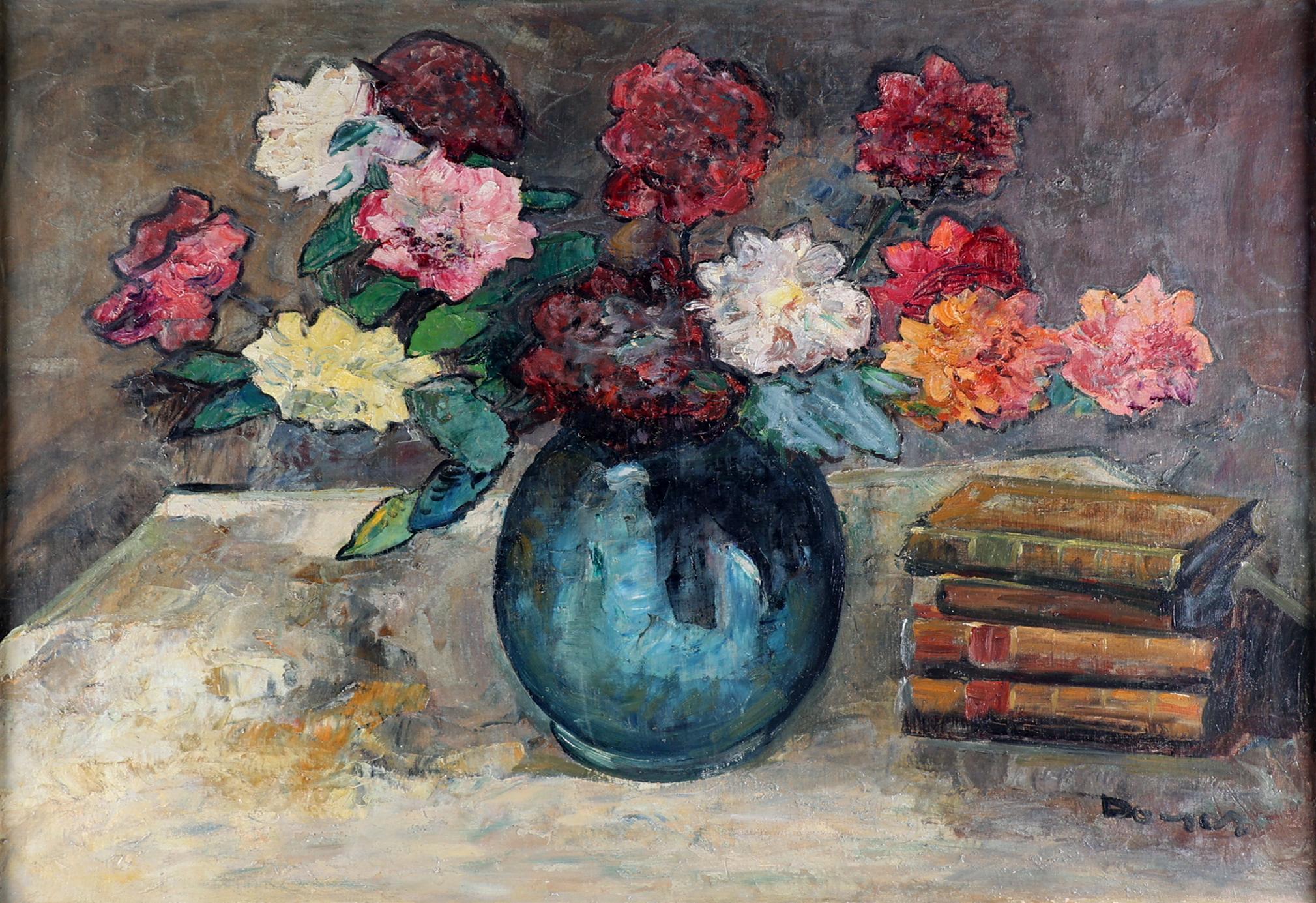 Jacobus Johannes (Jacobus) Doeser ( 1884-1970), Bloemstilleven, olieverf op doek, 100 x 80 cm., provenance particuliere collectie
