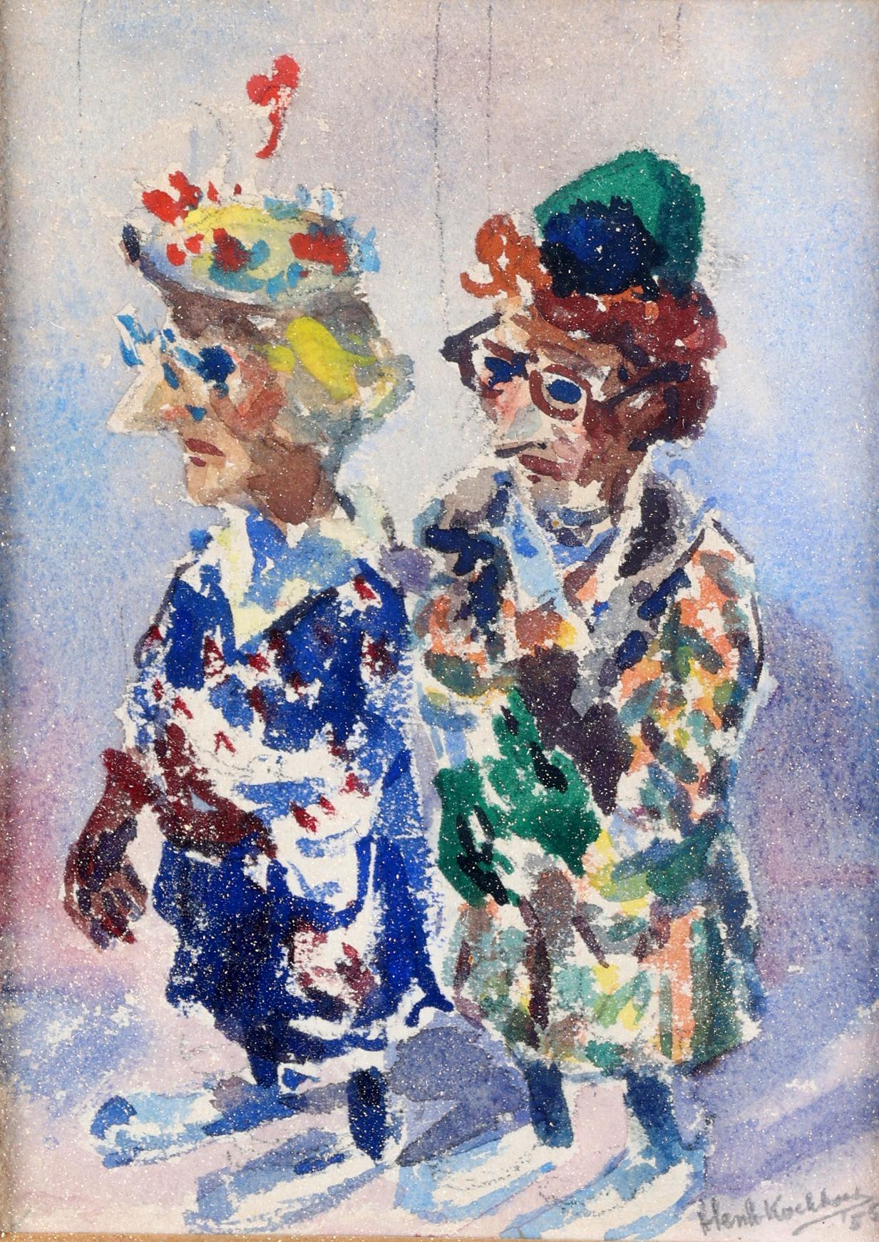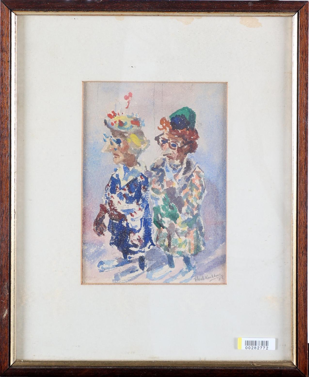 Henk Koekkoek, Portret van een man en vrouw, gemengde techniek, 17 x 12 cm.