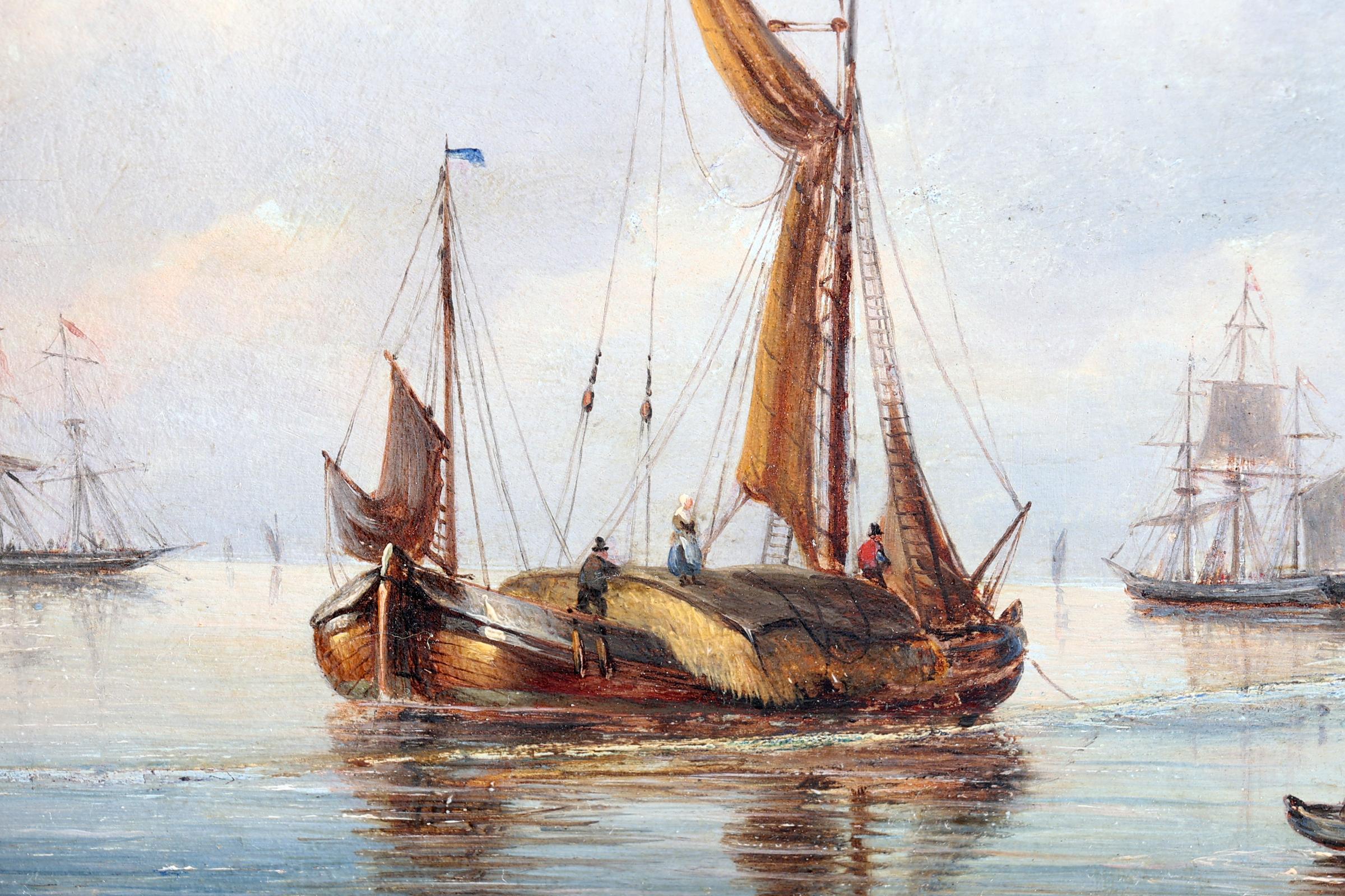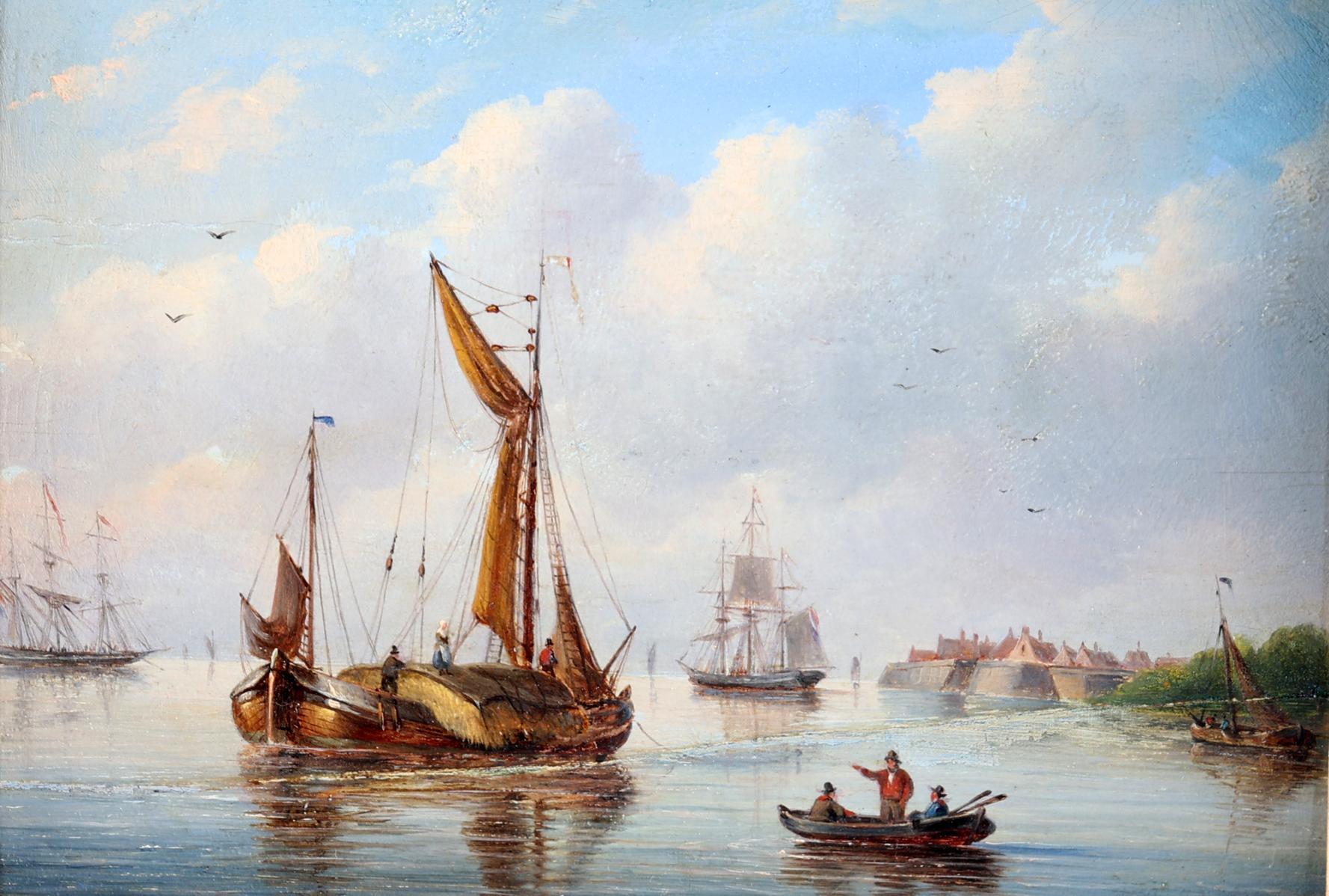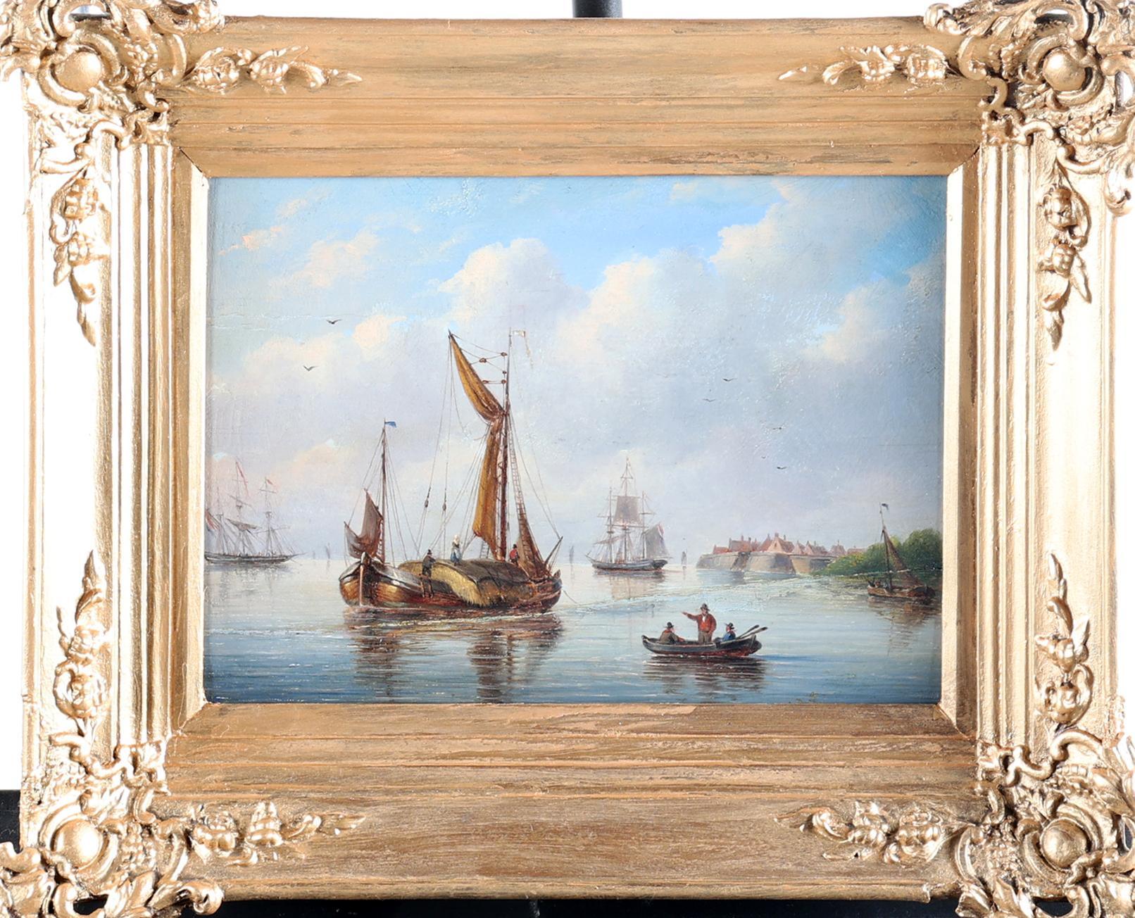 Toegeschreven aan A. Waldorp (1833-1866), Schepen voor de kust, olieverf op paneel, 22 x 29 cm.