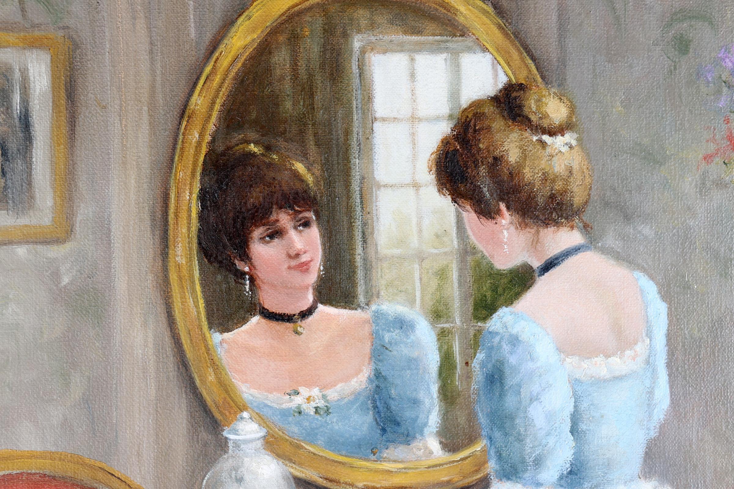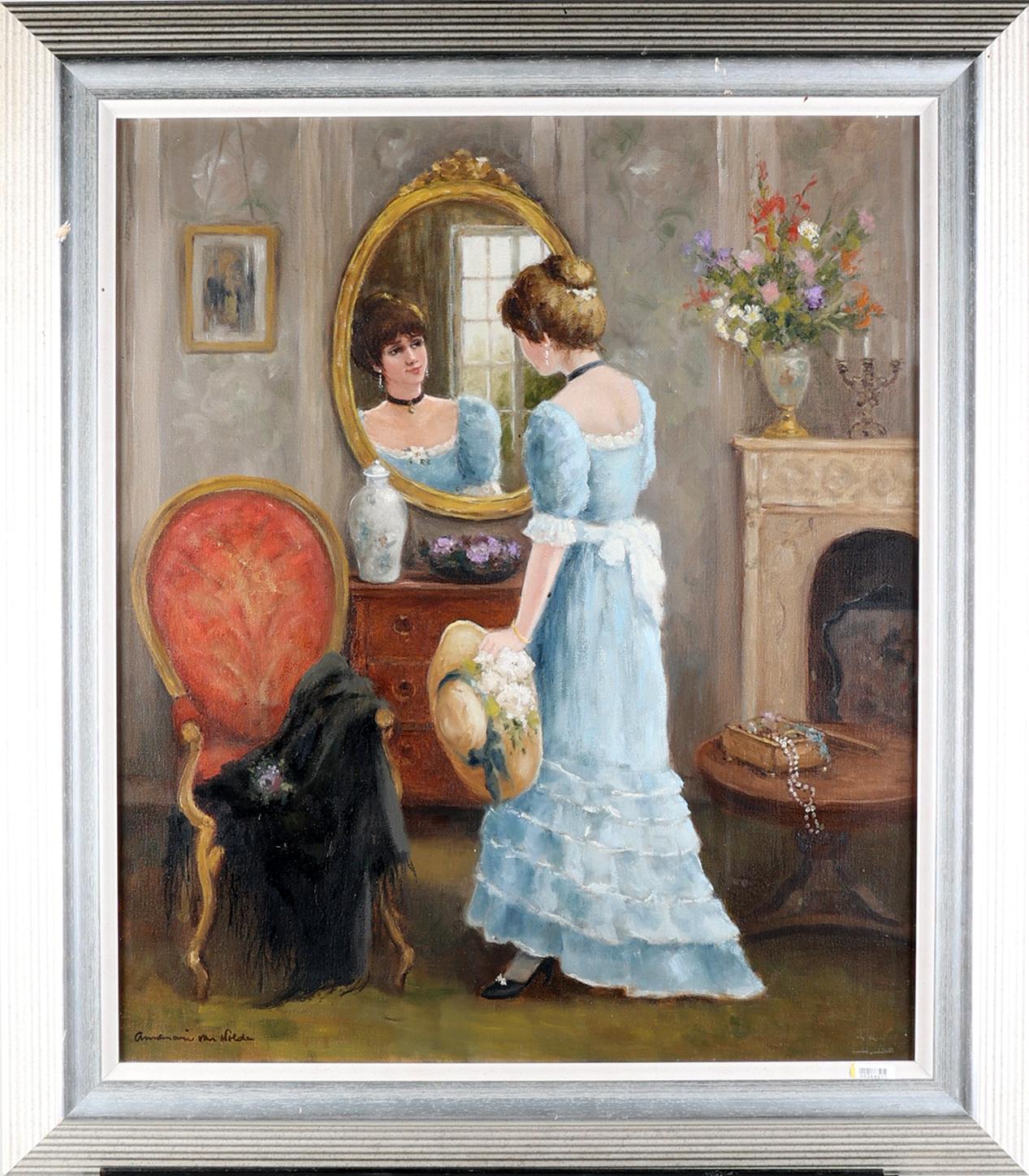 Annemarie van Wolde (1921-2018), Een vrouw voor de spiegel, olieverf op doek, 60 x 70 cm.