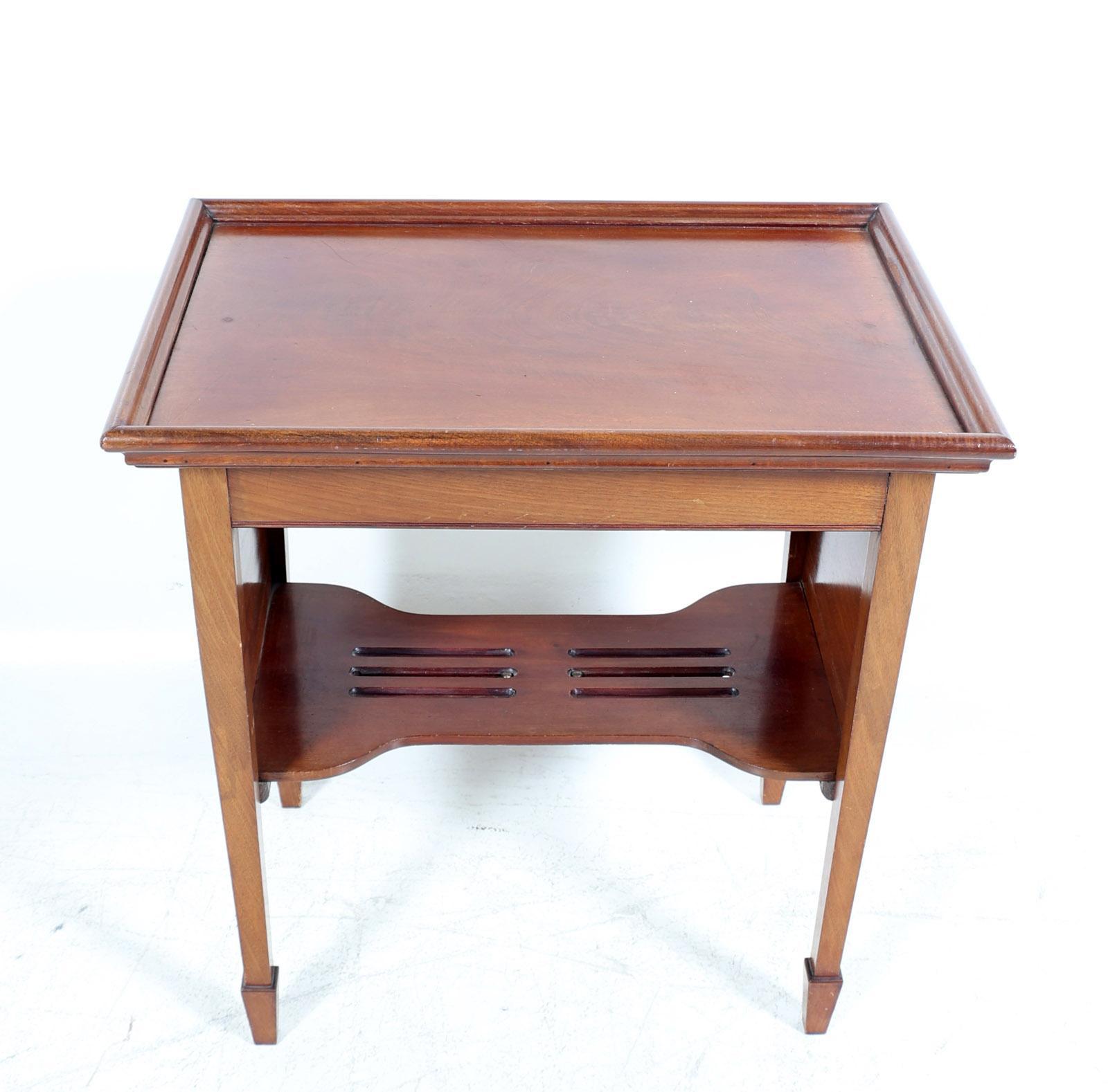 Oude mahoniehouten Arts & Crafts theetafel met uitklapbare zijkanten, h.76 x b.72 x b.49 cm.