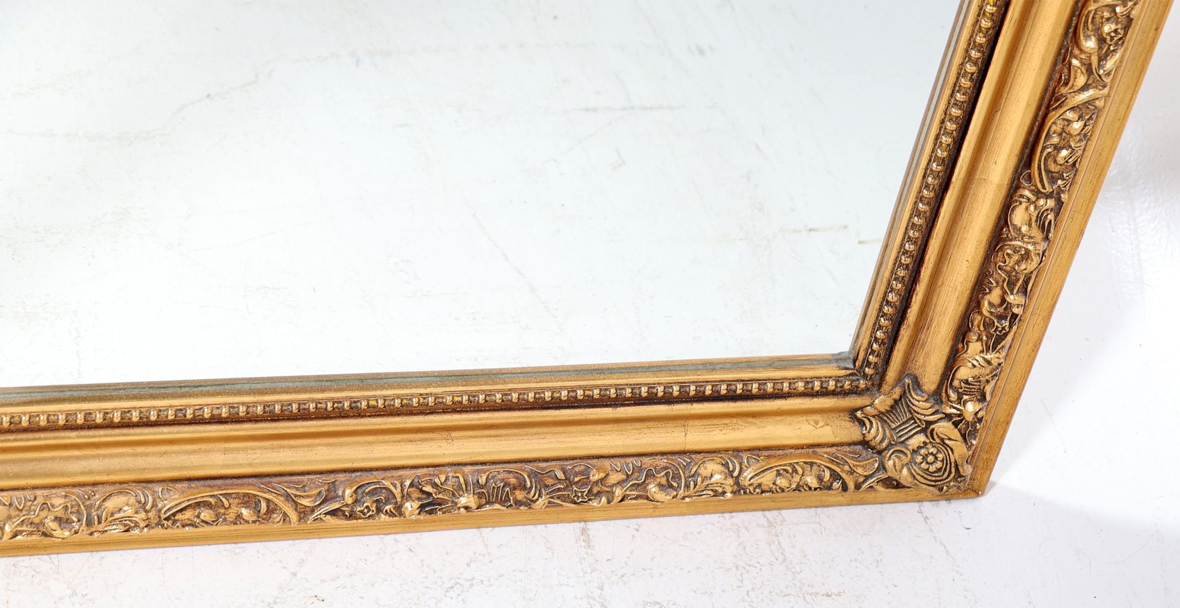 Geslepen spiegel in goudkleurige lijst, 140 x 79 cm.