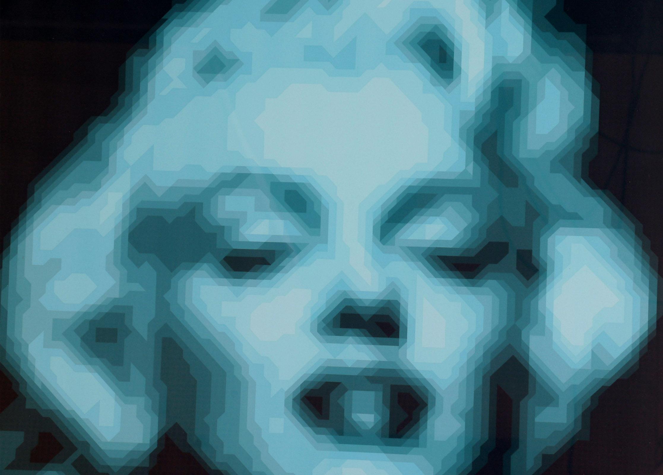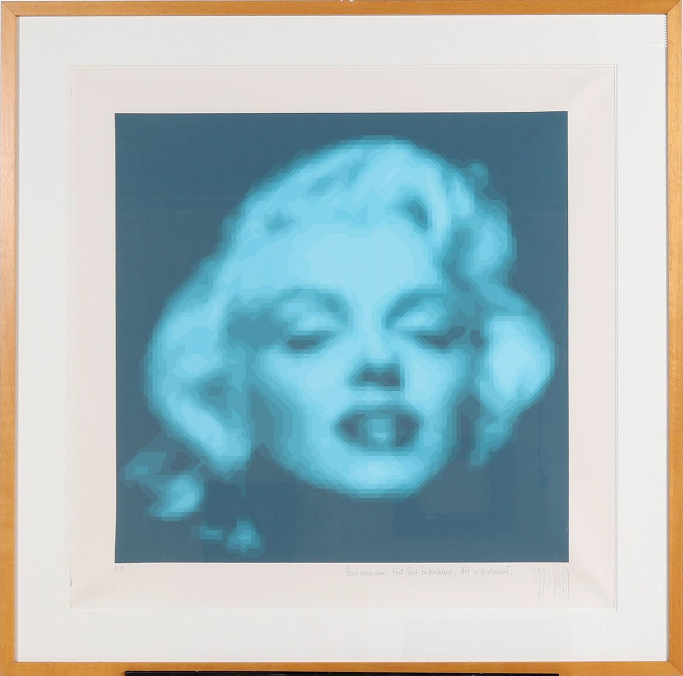Yvaral (Jean Pierre Vasarely (1934-2002)), Marylin, handgesigneerde zeefdruk, Epreuve d'artiste met persoonlijke boodschap Gert Jan Bekenkamp, 74 x 74 cm., provenance : rechtstreeks verkregen van kunstenaar