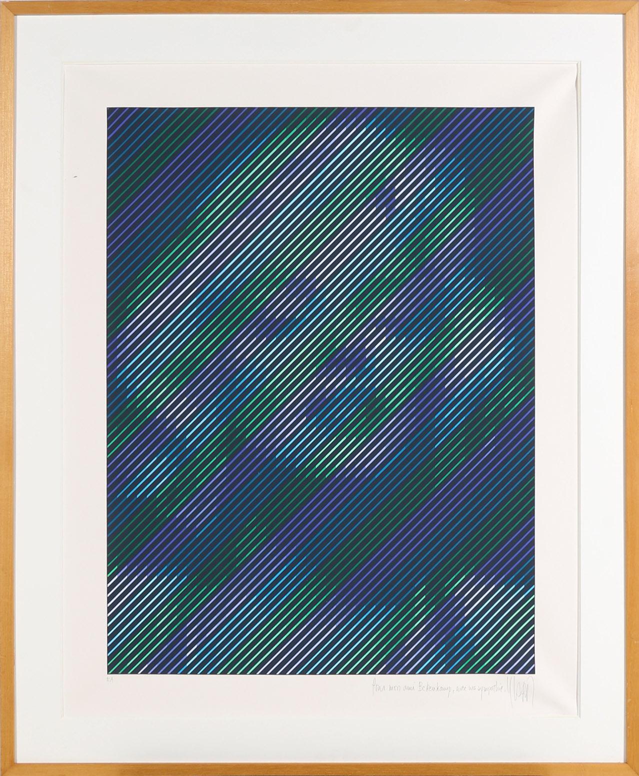 Yvaral (Jean Pierre Vasarely (1934-2002)), Marylin in zwart/wit, handgesigneerde zeefdruk, Epreuve d'artiste met persoonlijke boodschap aan Gert Jan Bekenkamp, 93 x 74 cm., provenance : rechtstreeks verkregen van kunstenaar