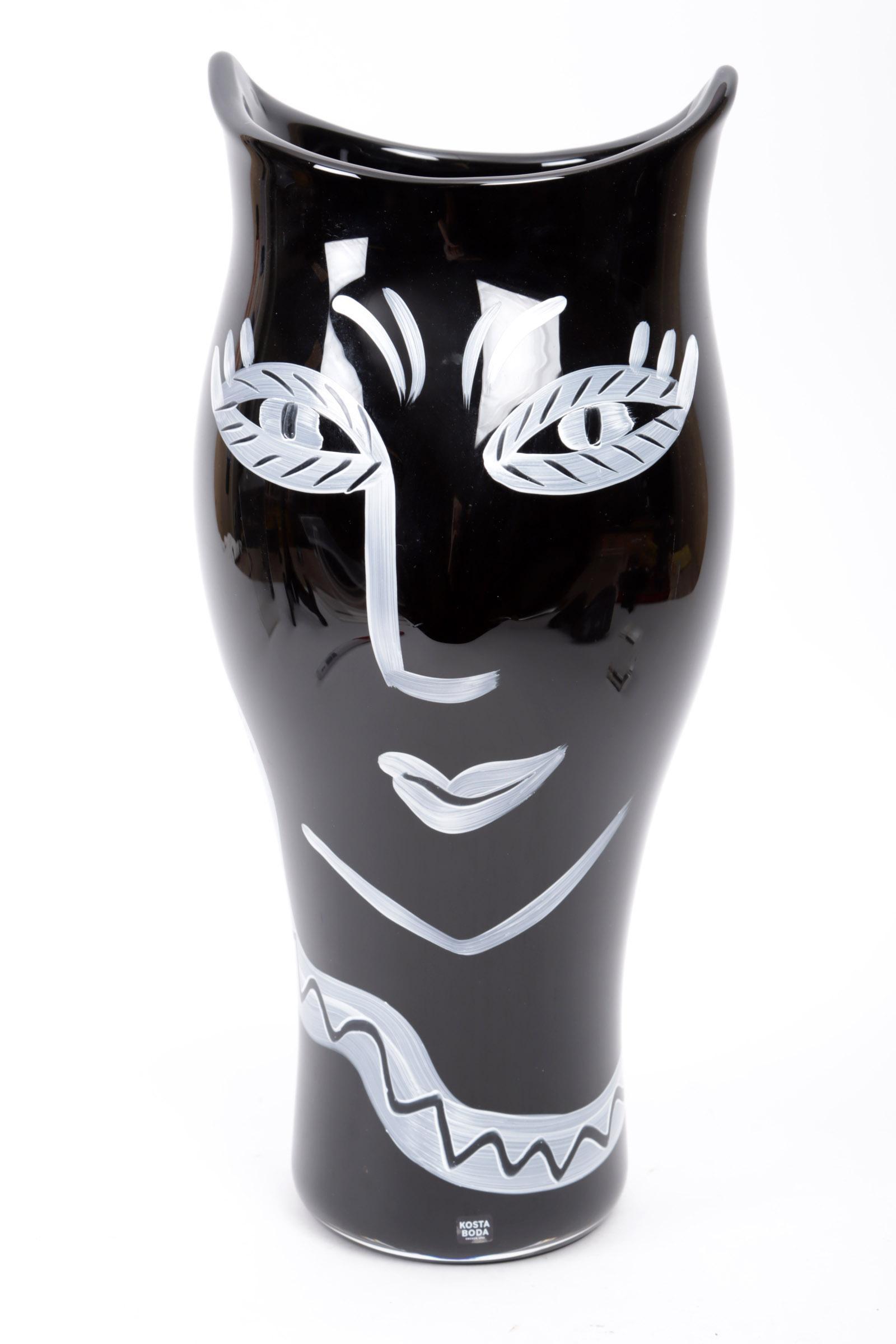 Ulrica Hydman Vallien (1938), voor Kosta Boda, handbeschilderde glazen siervaas, h.37 cm.