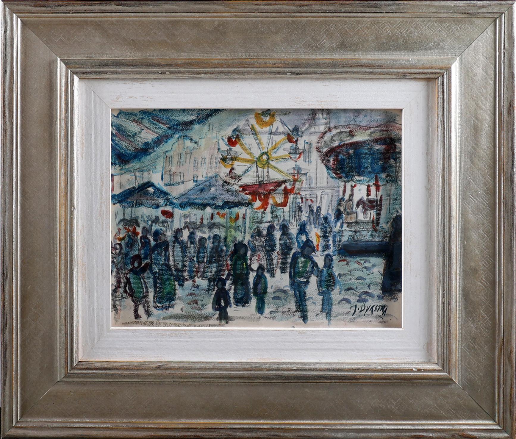Onb.meester, draagt signatuur Dijkstra, Kermis met personen, aquarel, 31 x 25 cm.
