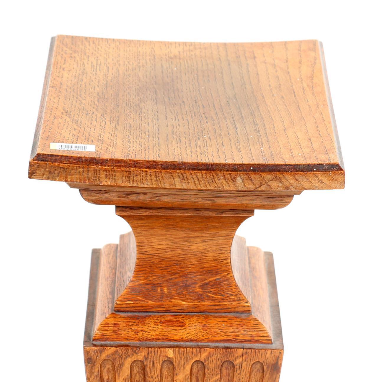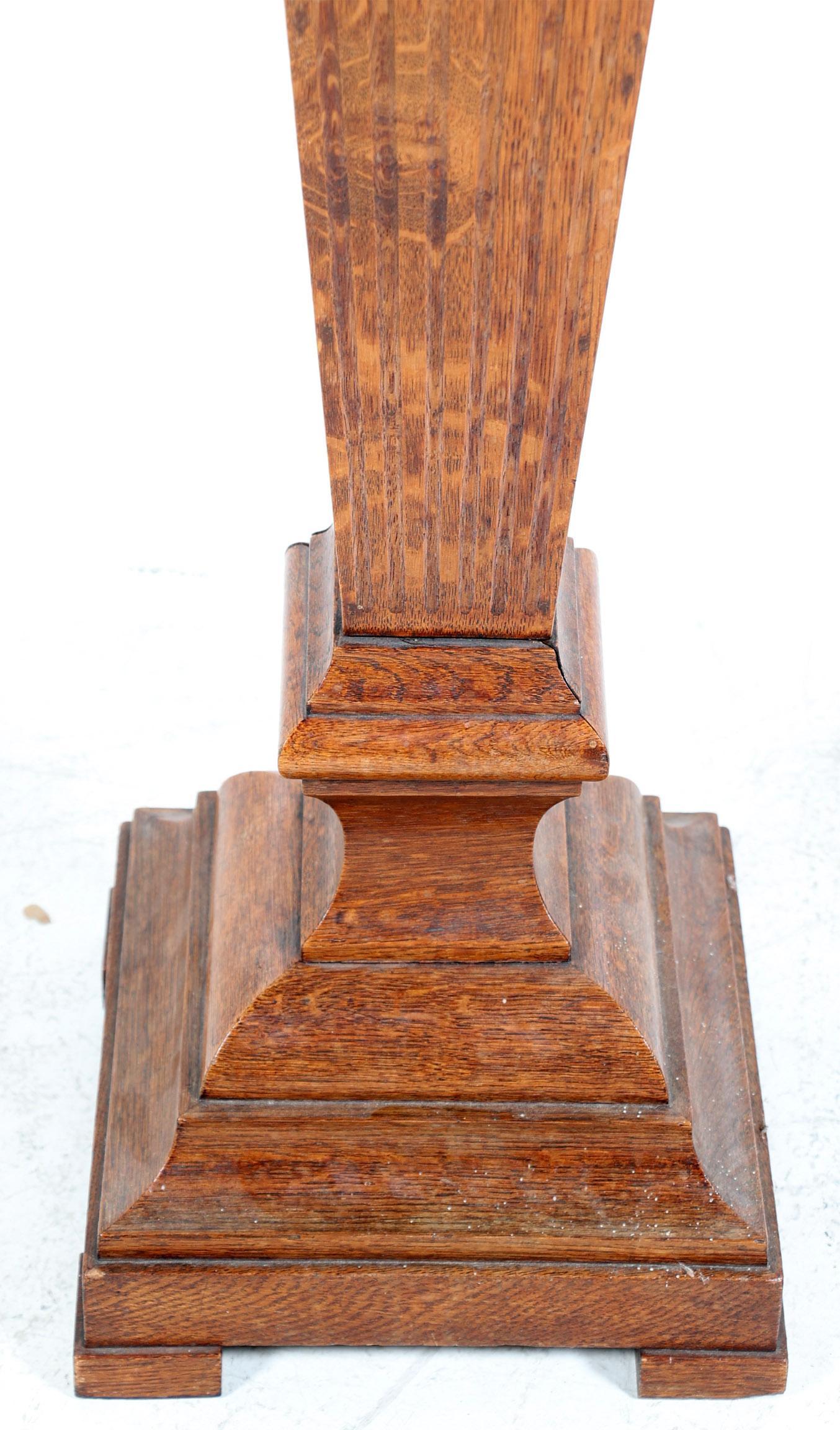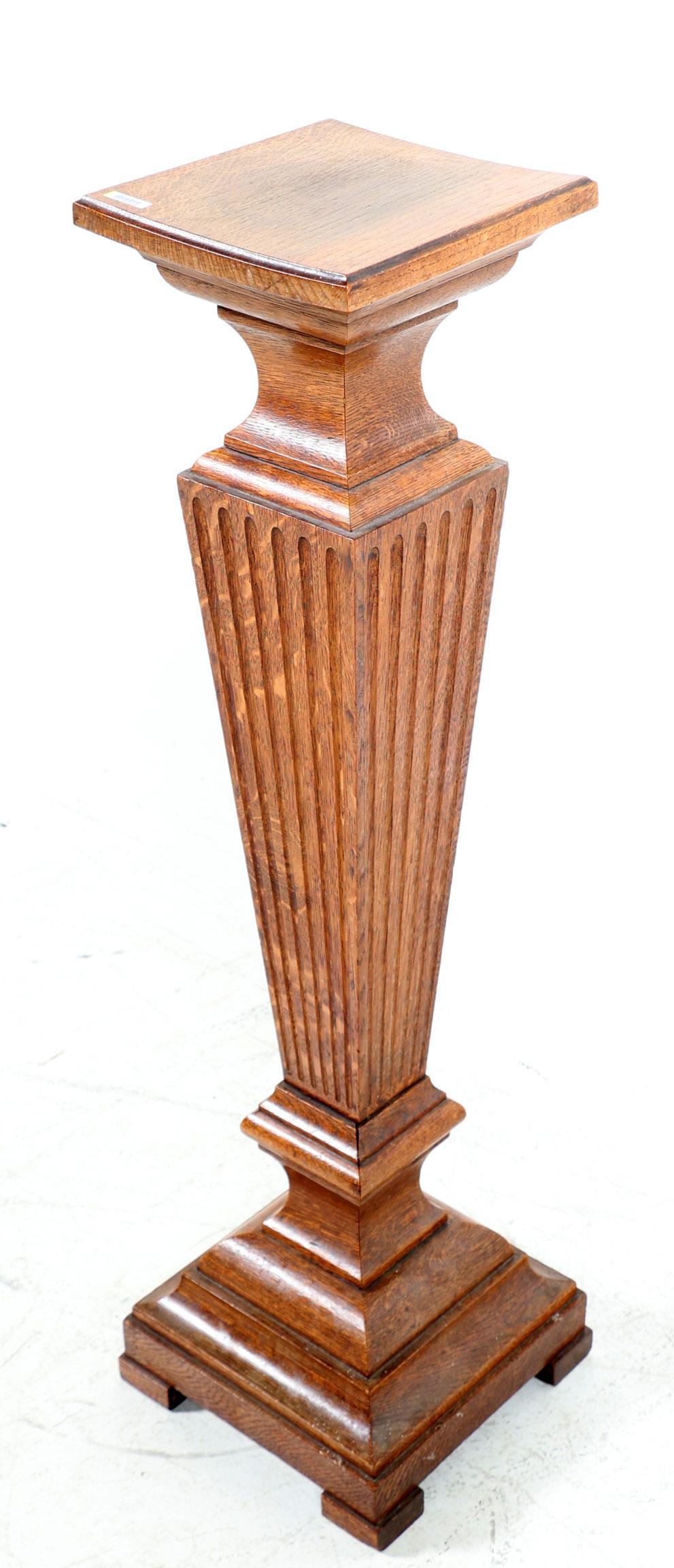 Oude eikenhouten taps toelopende zuil, h.100 x b.23 x d.23 cm.