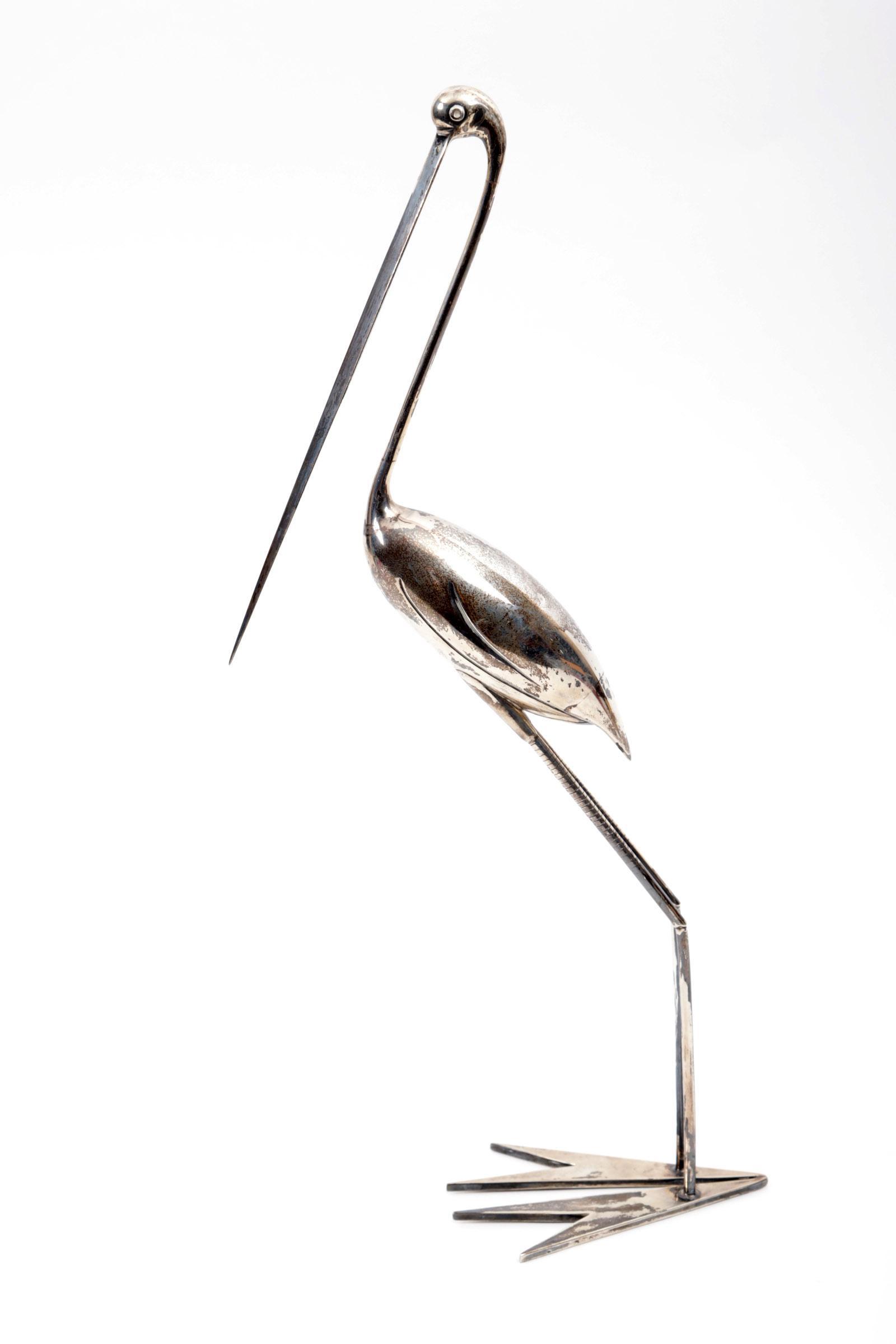 Spaanse zilveren sculptuur van een vogel, h.34 cm., 186 gram