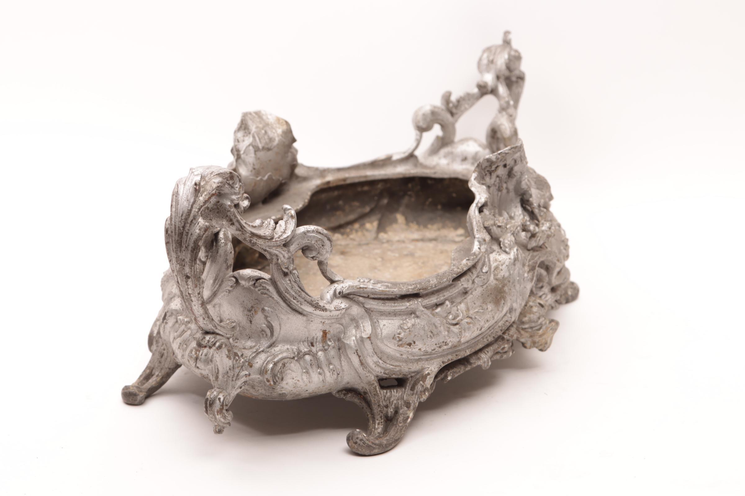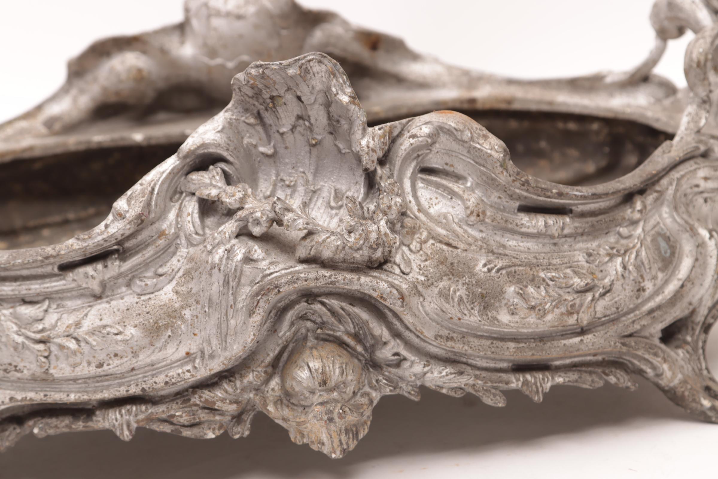 Metalen zilverekleurig Jugendstil jardinière, h.18 x b.52 x d.23 cm.
