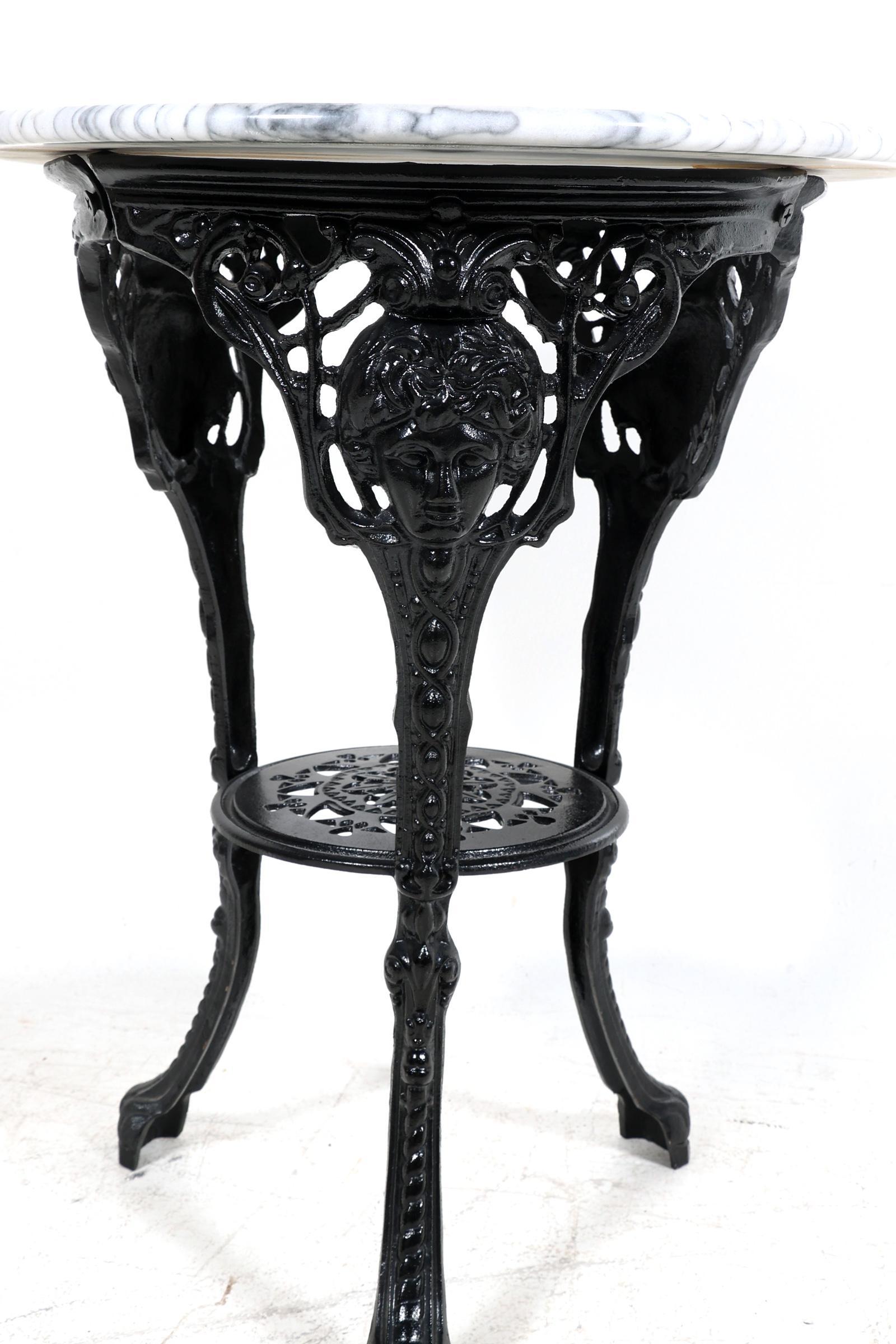 IJzeren bijzettafel met wit marmeren blad, h.77 x diam.60 cm.