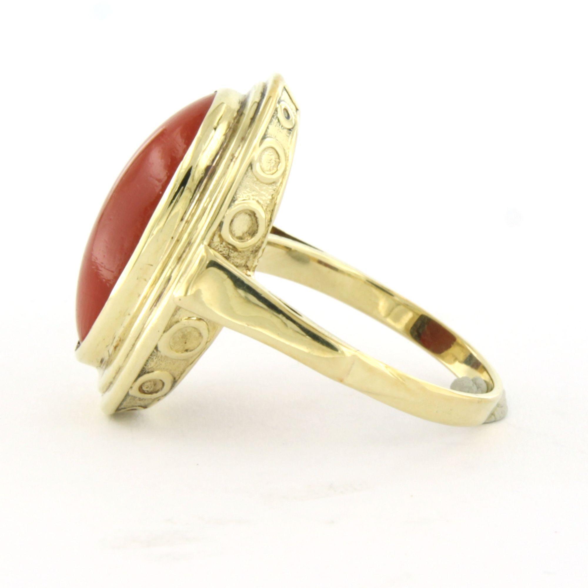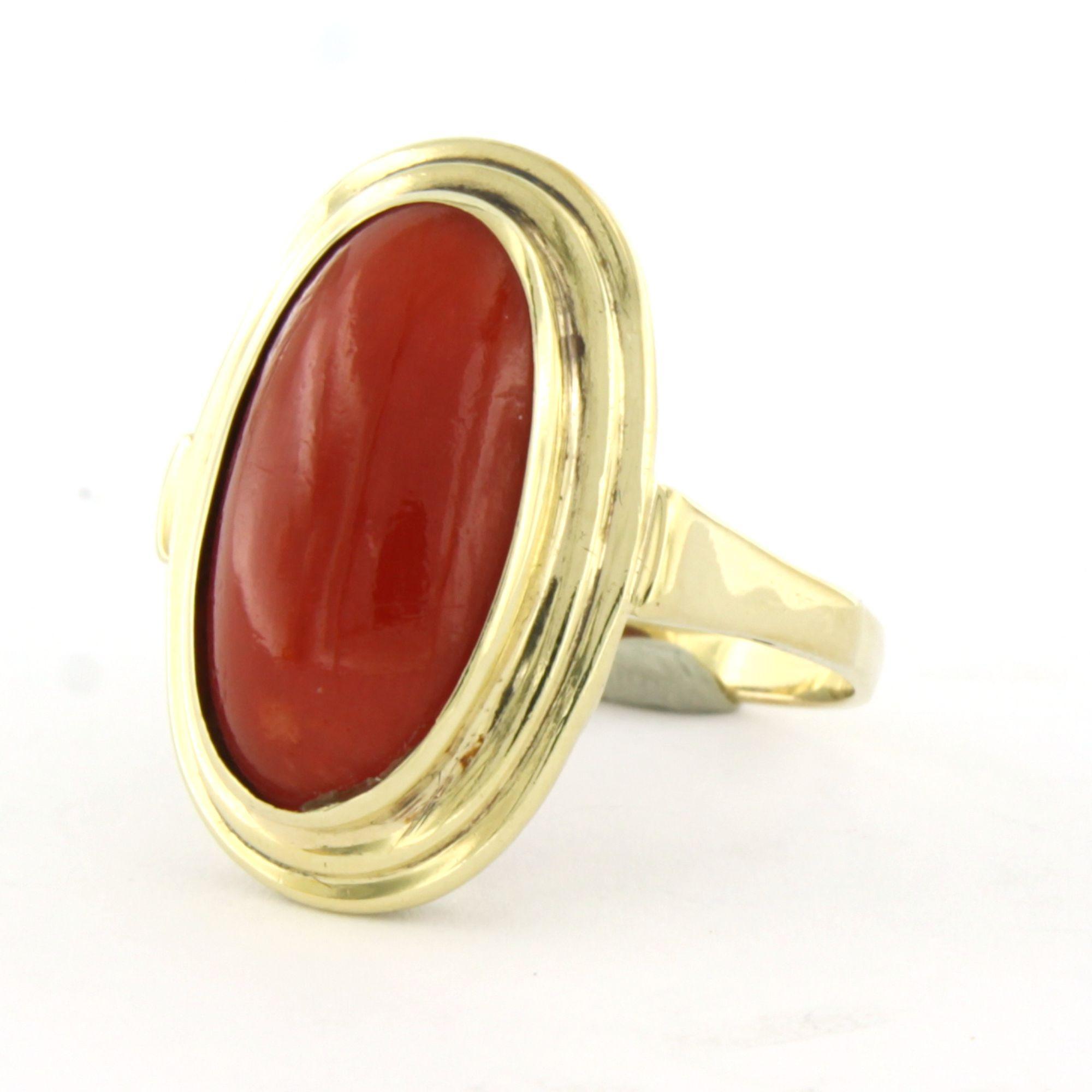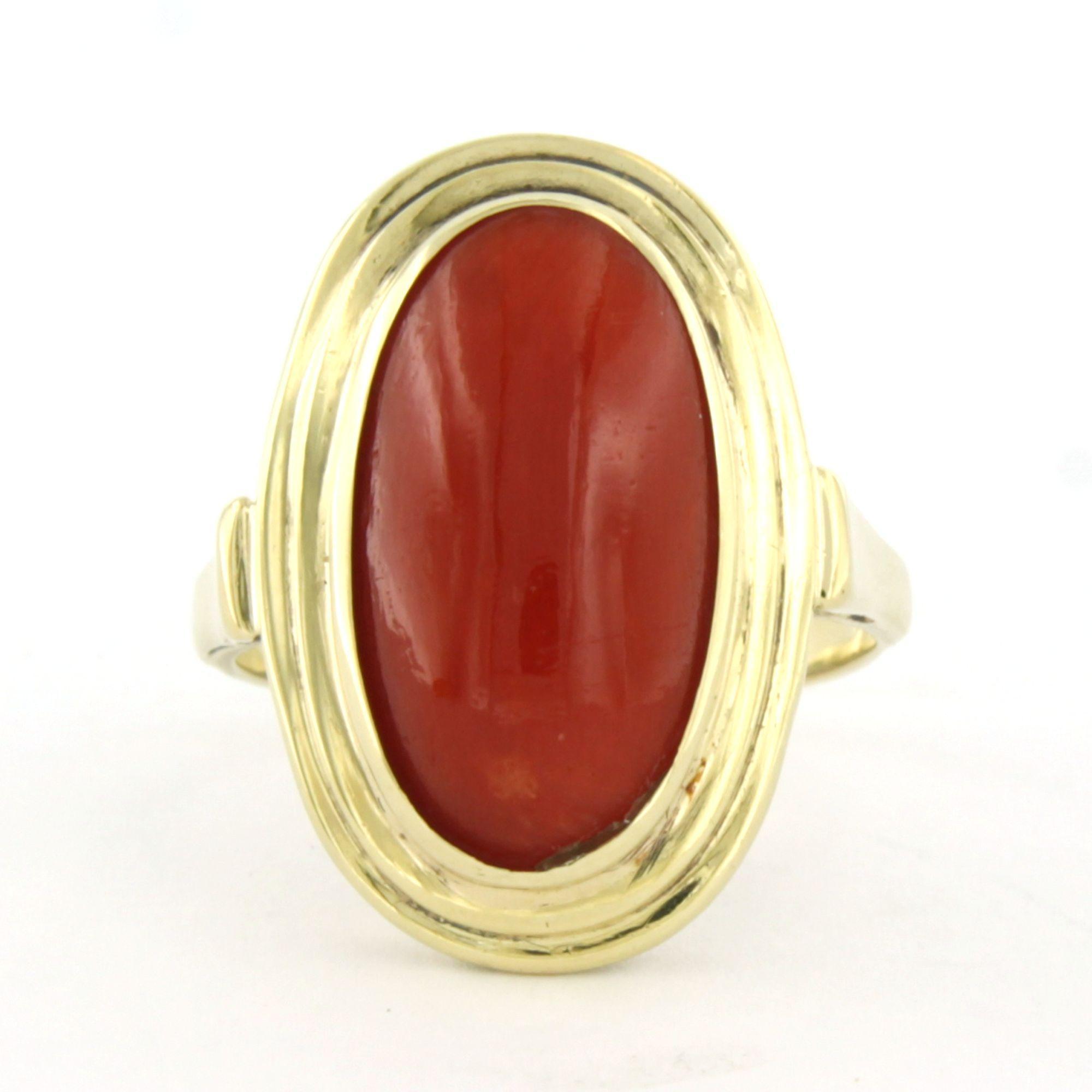 14 Kt. geelgouden ring met cabochon geslepen koraal - ringmaat 17 (53)