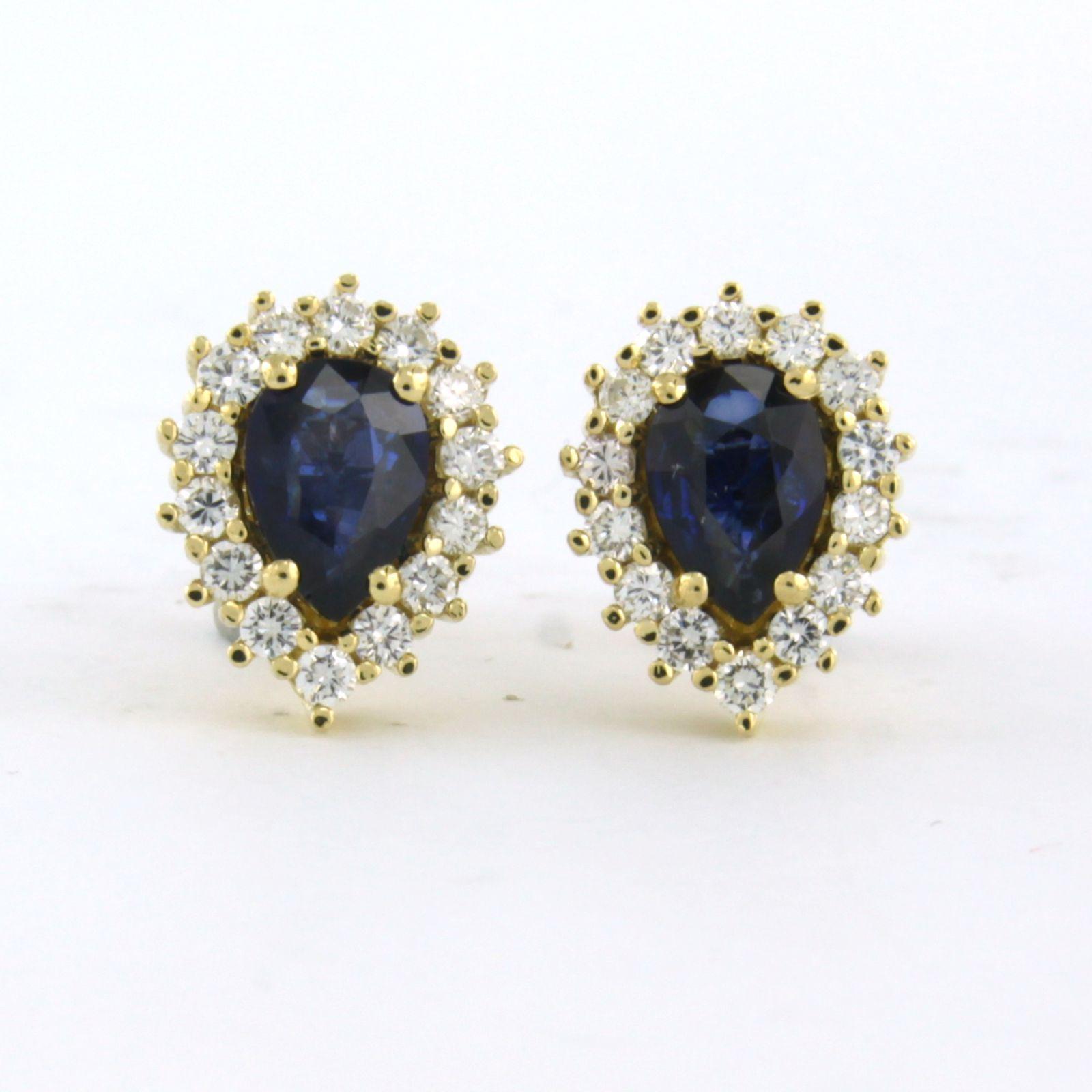18 Kt. geelgouden entourage oorknoppen bezet met saffier en briljant geslepen diamanten tot. 0,54ct - F/G - VS/SI