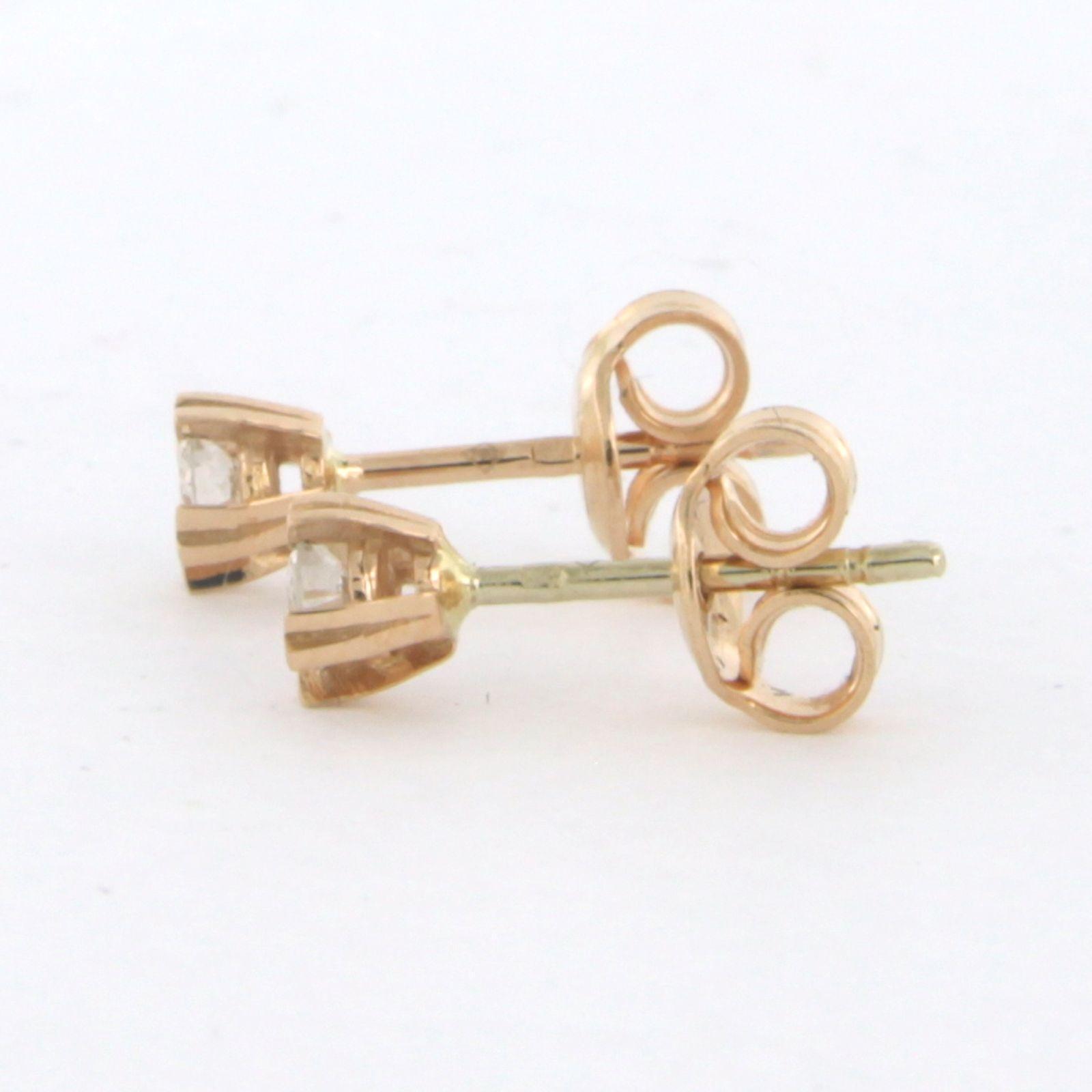 18 Kt. roségouden solitair oorknoppen bezet met briljant geslepen diamanten tot. 0.18 ct G/H SI/P