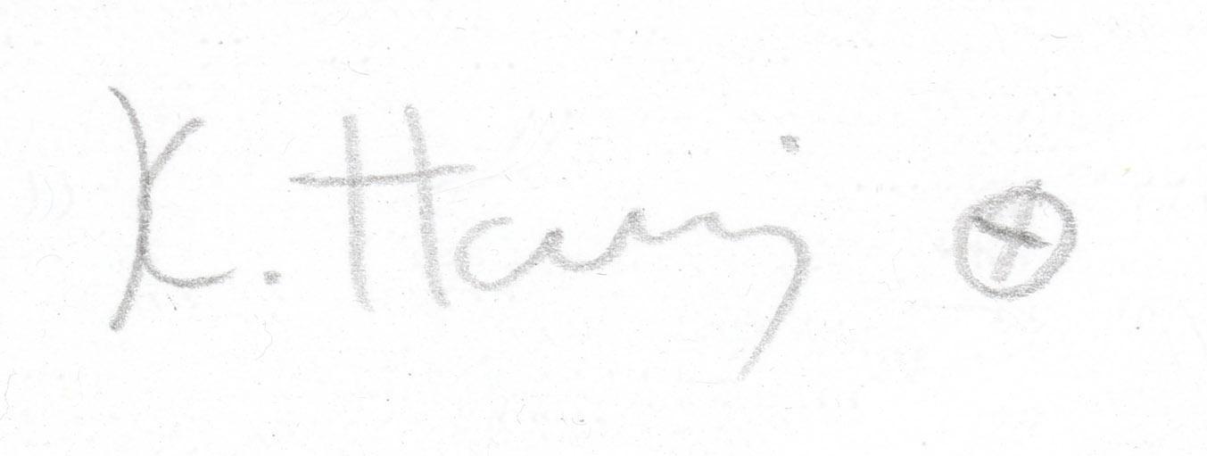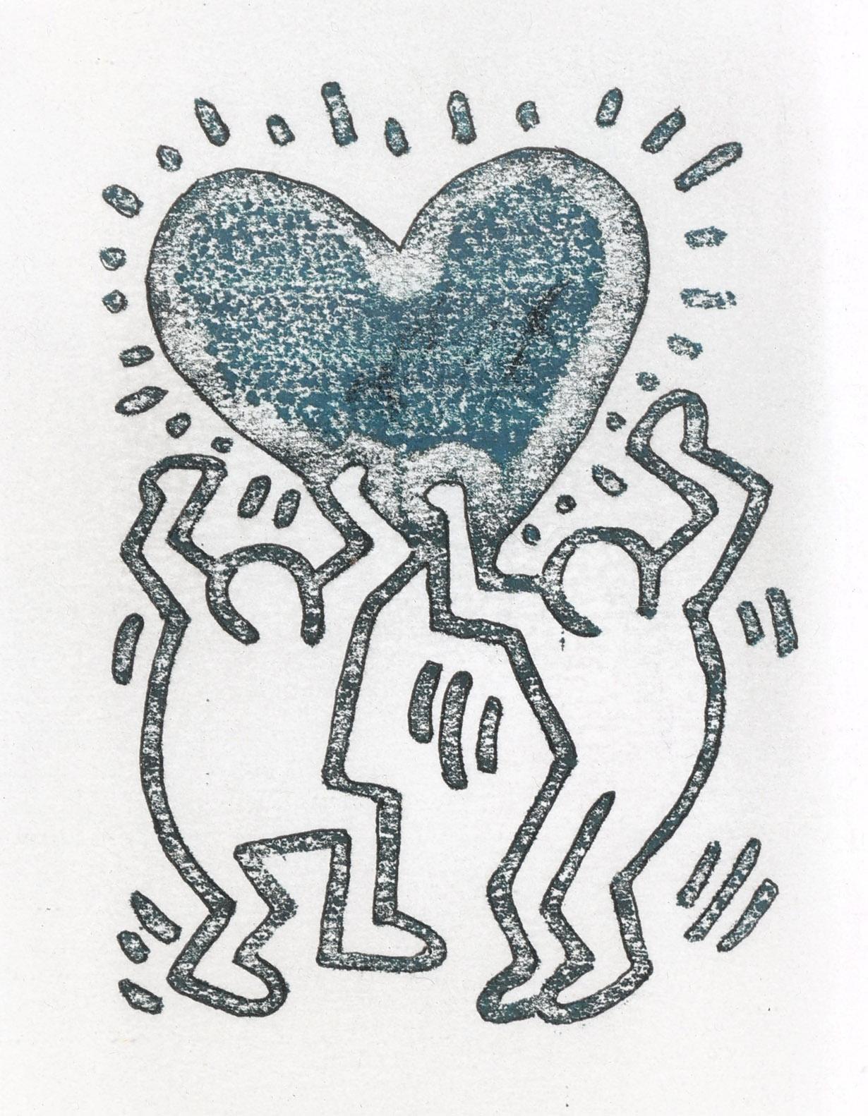 Keith Haring (1958 - 1990), Heart of men, handgesigneerde zeefdruk, genummerd 7/30, 28 x 24 cm.