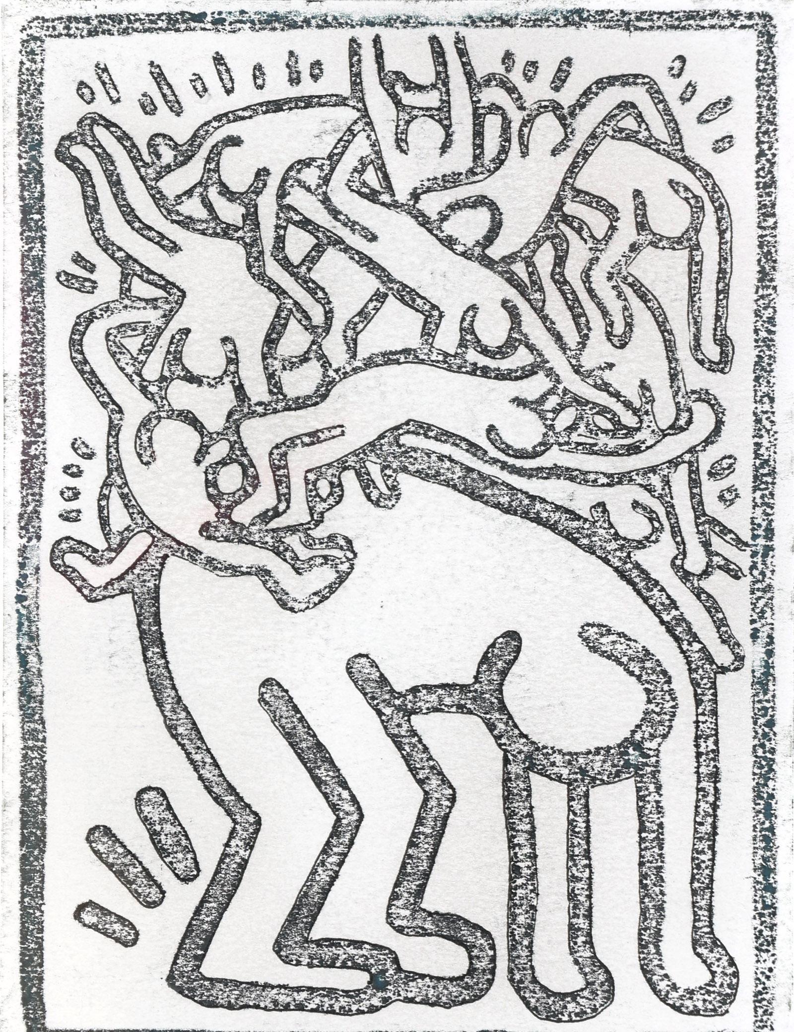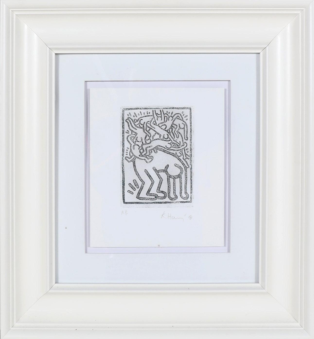 Keith Haring (1958 - 1990), Fight Aids, handgesigneerde zeefruk, AP, 28,3 x 23,5 cm.