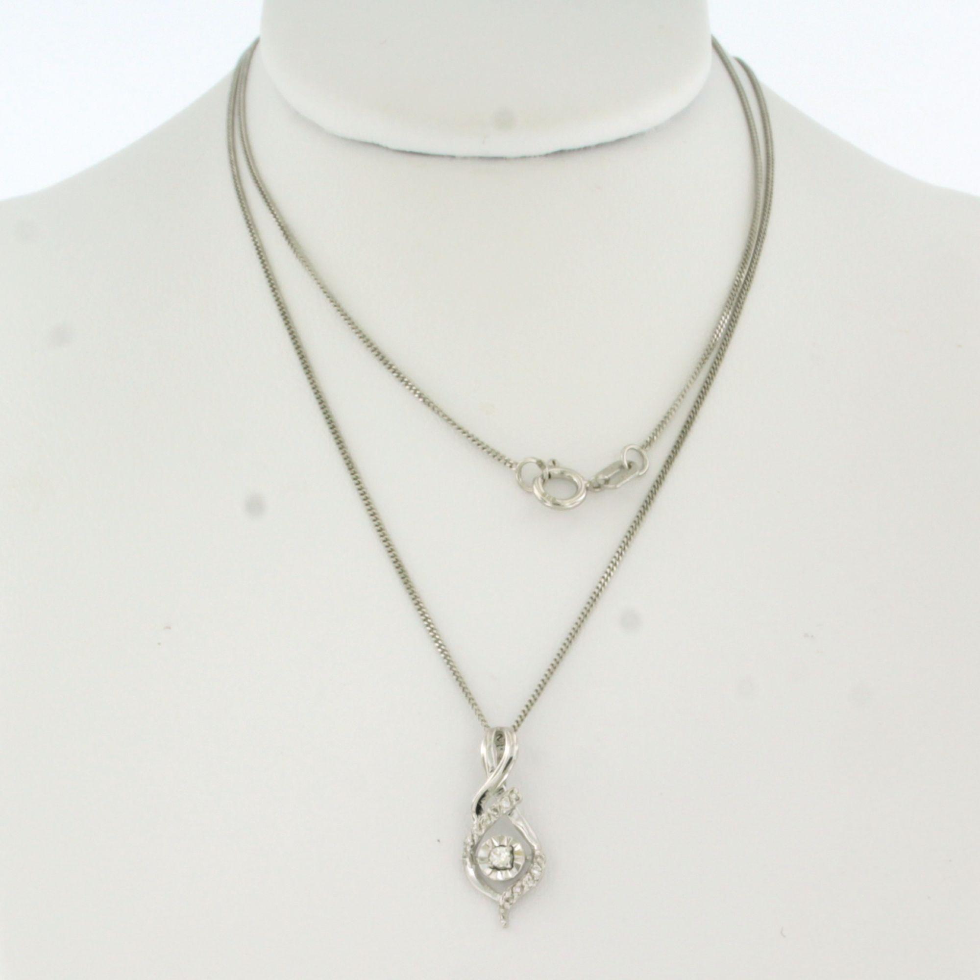 14 Kt. witgouden collier met hanger bezet met briljant geslepen diamanten tot. 0.09ct