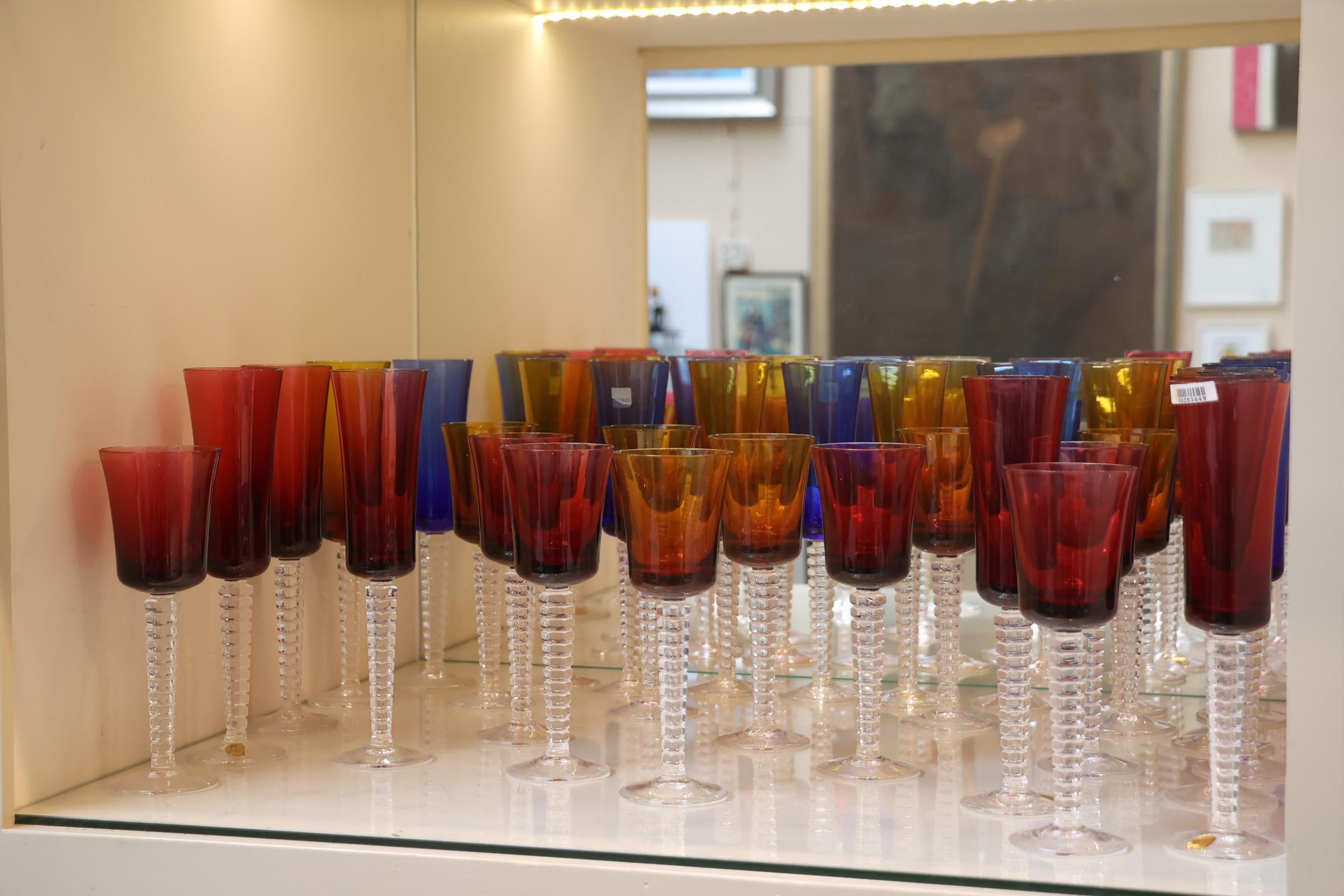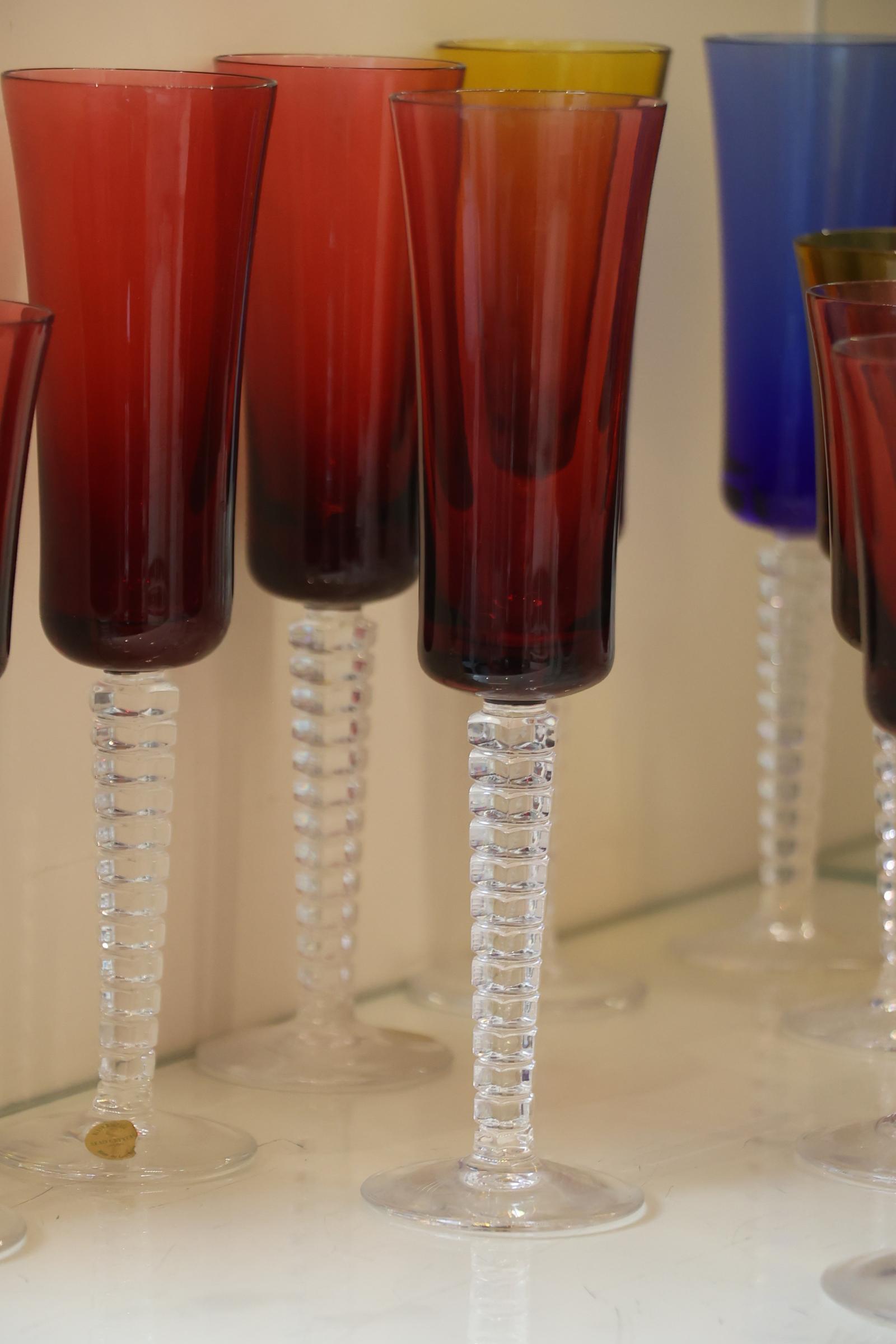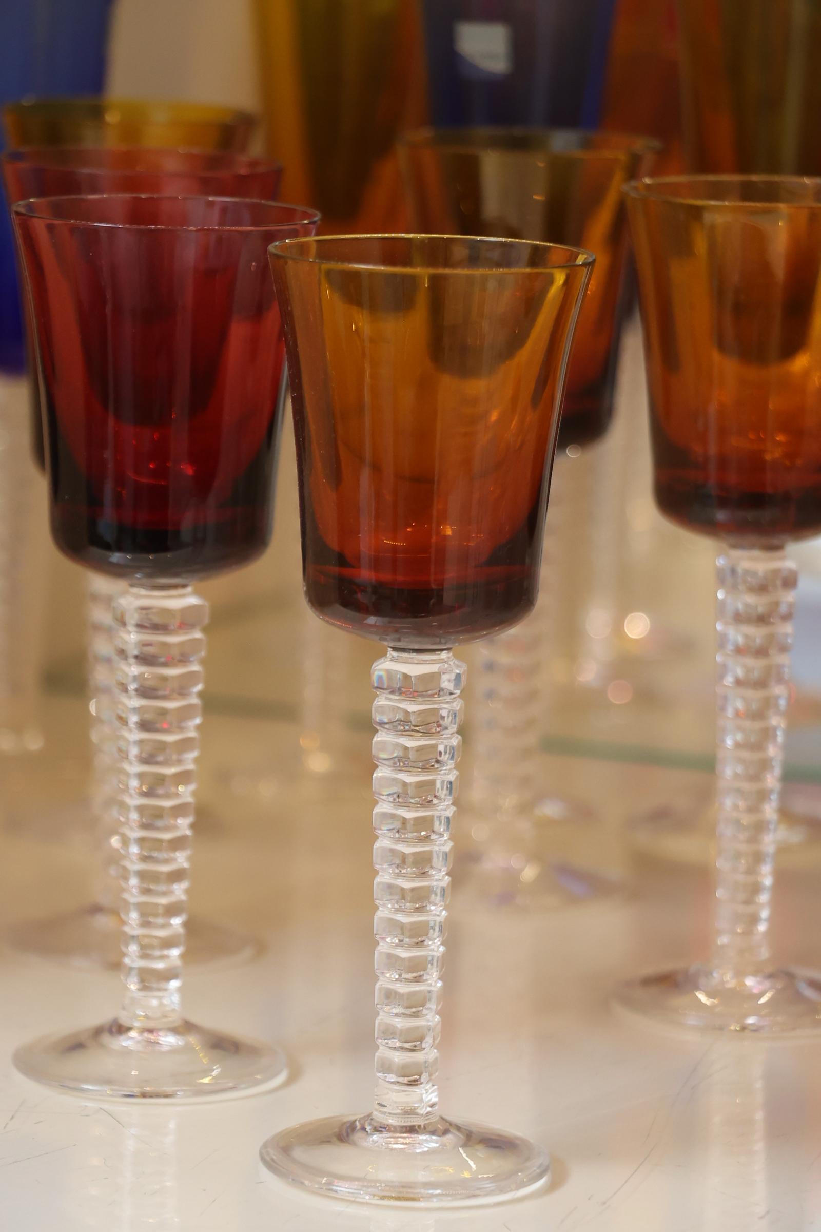 Zeer grote koop in diverse kleuren vervaardigde kristallen wijnglazen