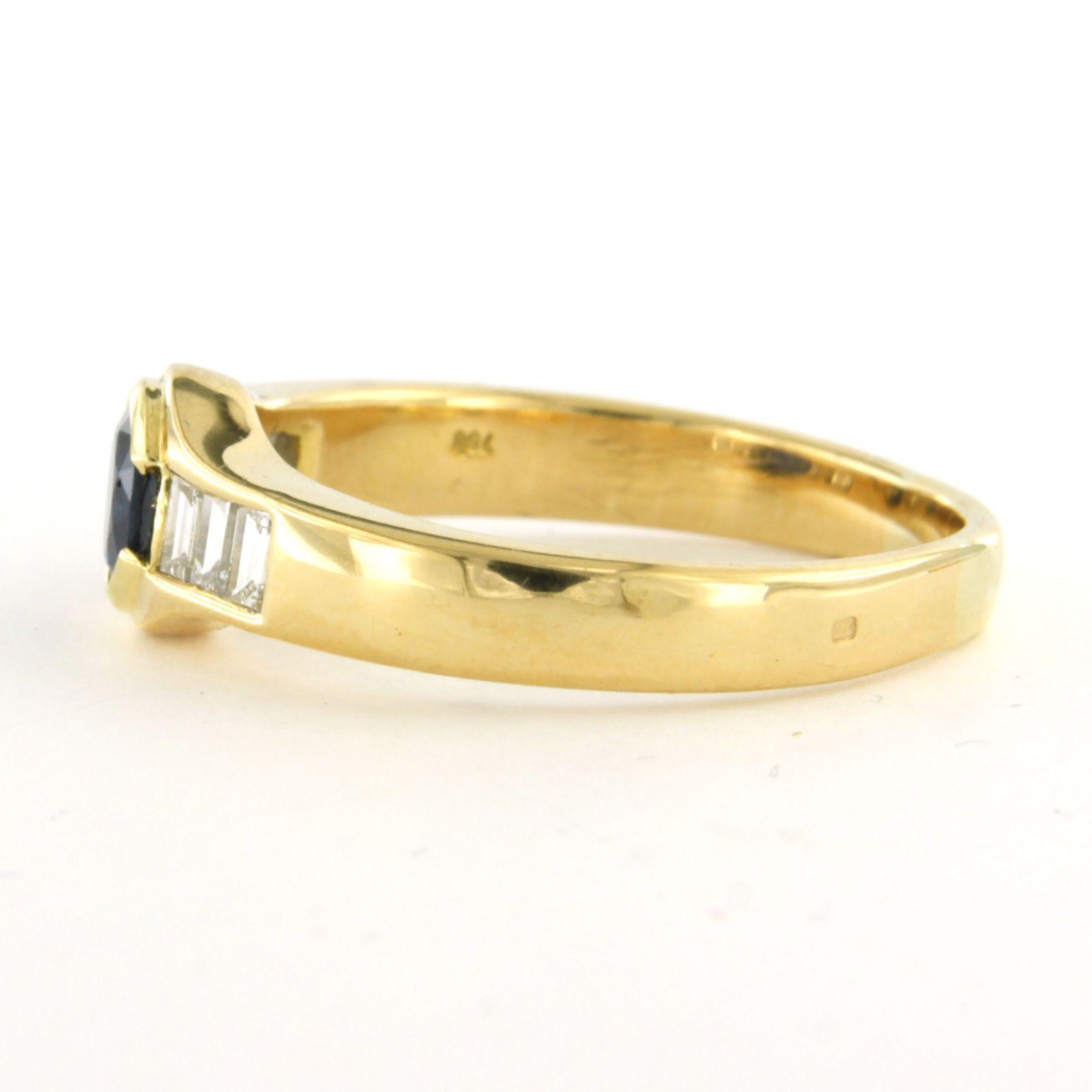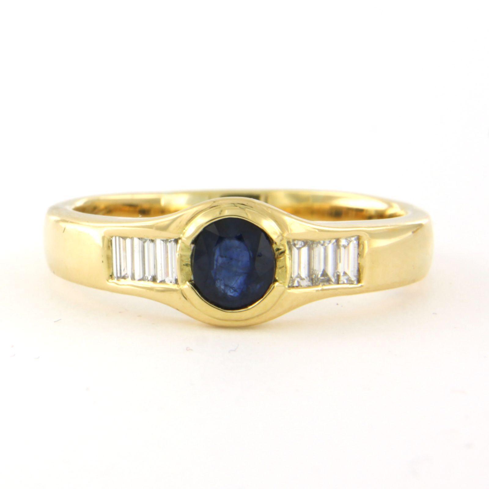 18 Kt. geelgouden ring bezet met saffier tot. 0,70ct en baquet geslepen diamanten tot. 0,50ct - F/G - VS/SI - ringmaat 21,25(67)