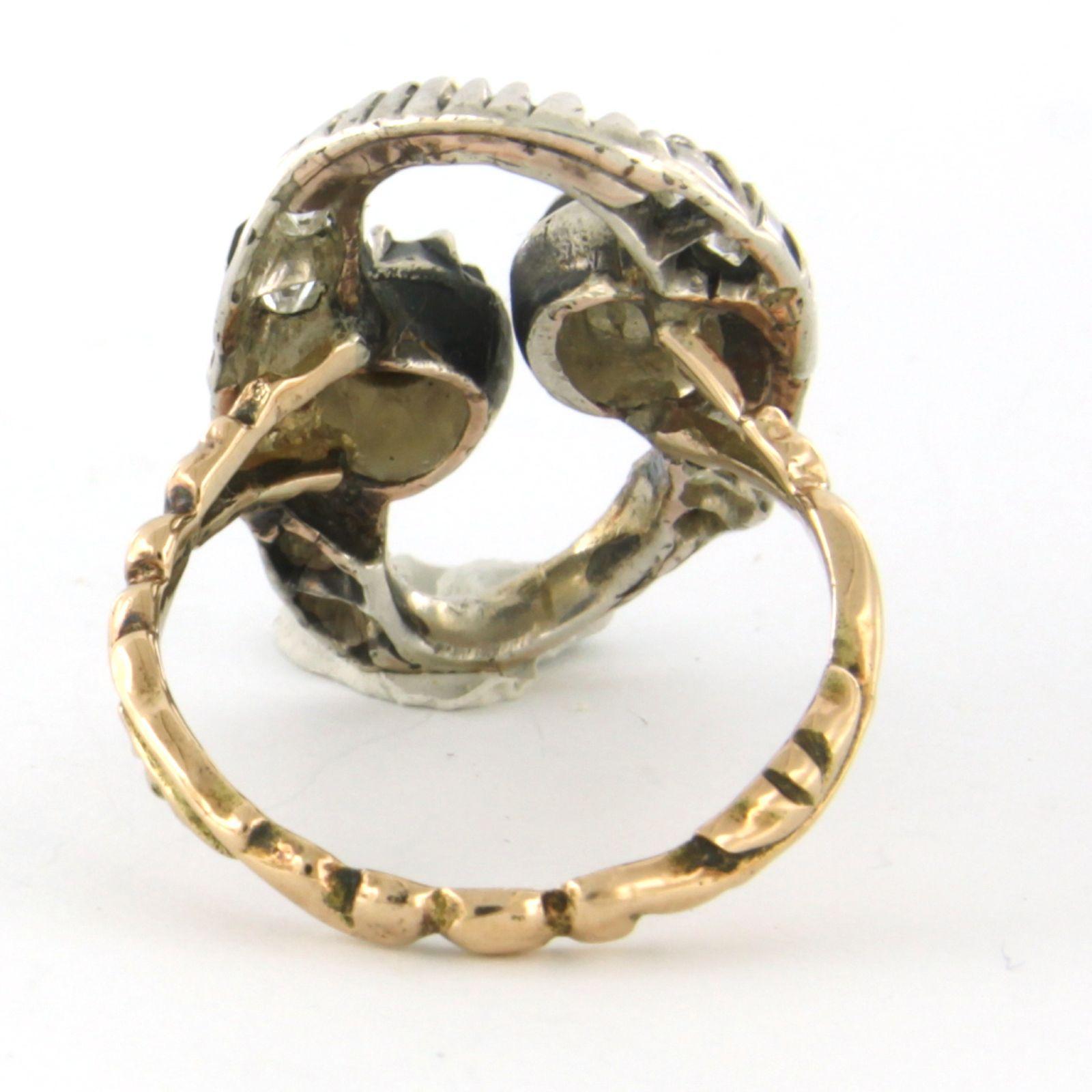 14 Kt. geelgouden ring met een Z2 zilveren kop bezet met Bolsjewiek diamanten tot. 0,25ct - G/H - SI - ringmaat 17,25(54)
