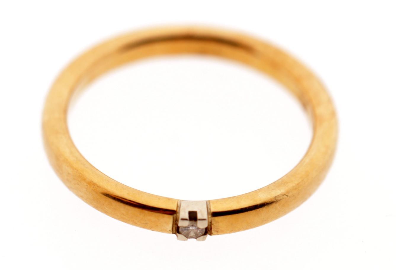 18 Kt. gouden fantasiering bezet met diamant, diam. 18 mm., 4.3 gram