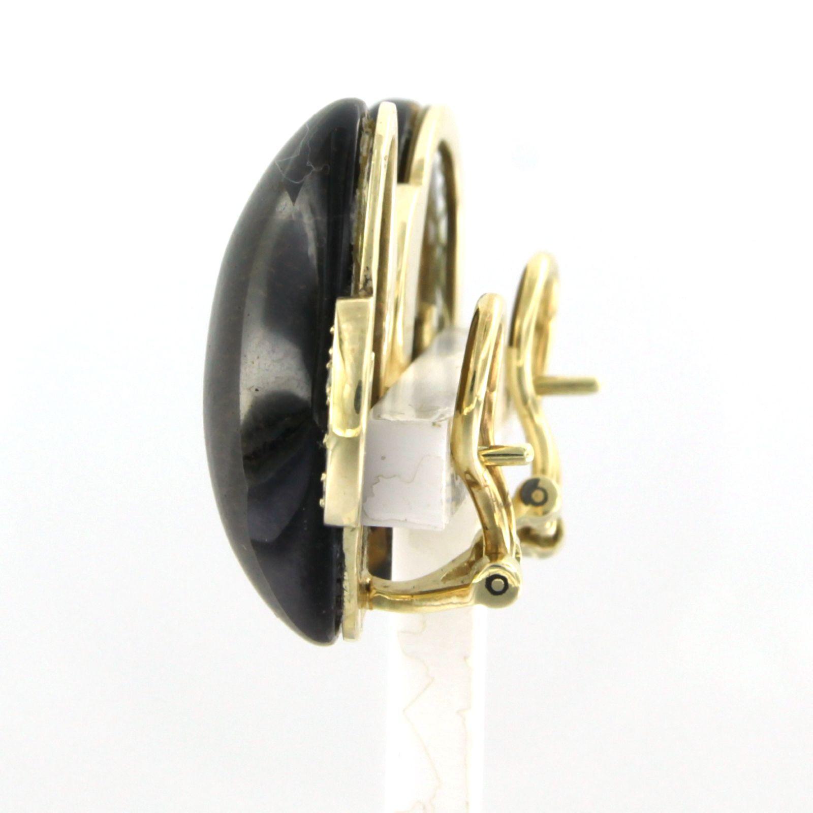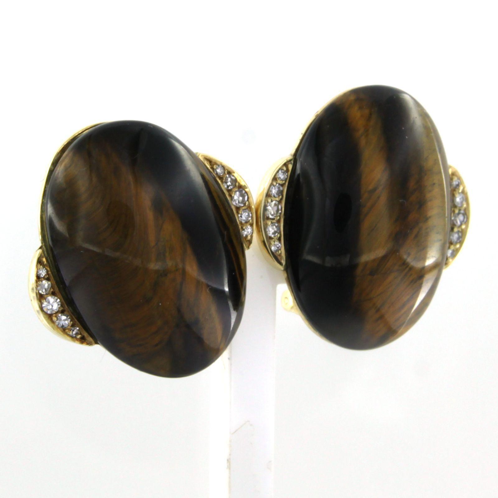14 Kt. geelgouden oorclips bezet met tijgeroog en single cut geslepen diamant tot. 0.20ct - F/G - VS/SI