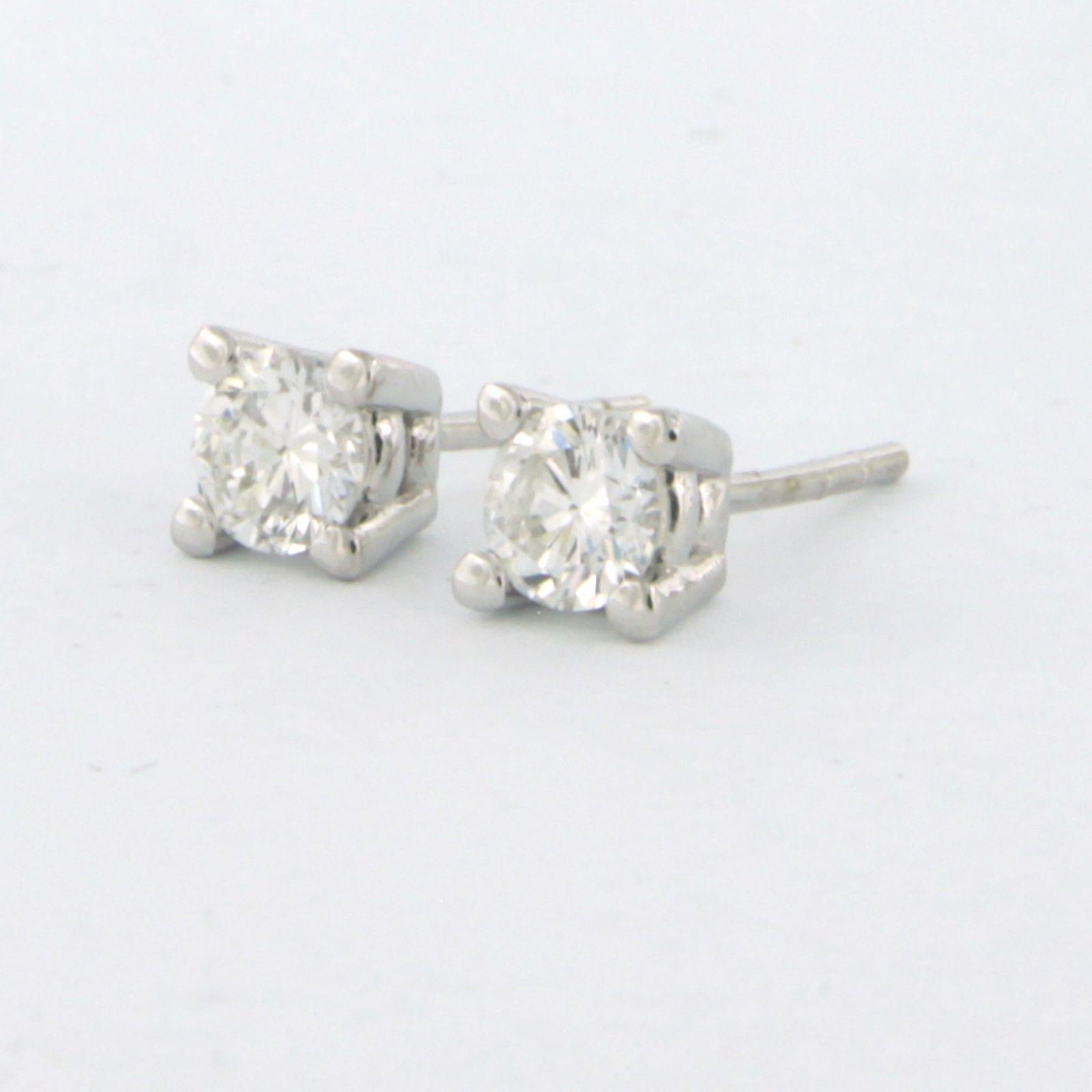 14 Kt. witgouden solitair oorknoppen bezet met briljant geslepen diamant 0.62 ct - F/G - VS/SI