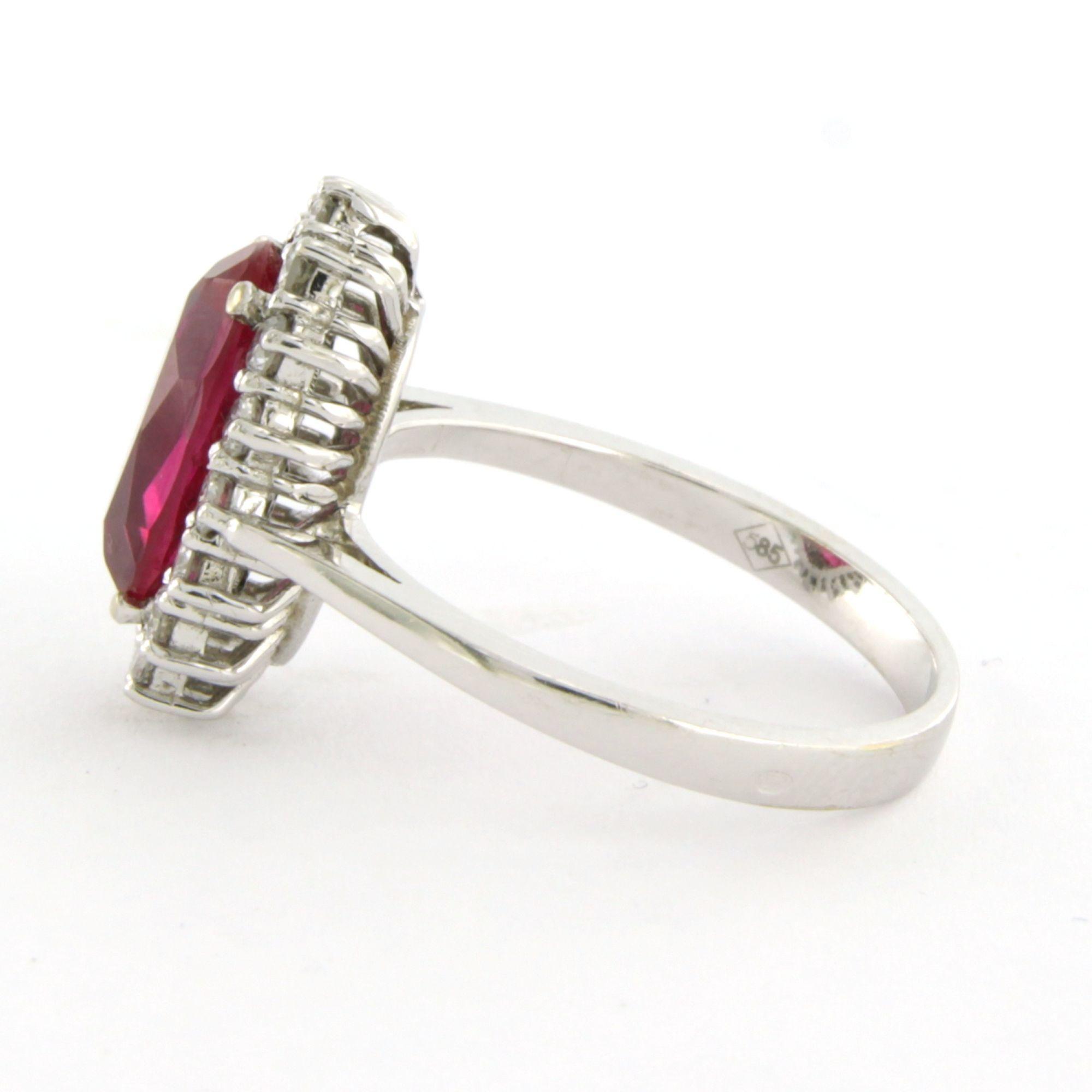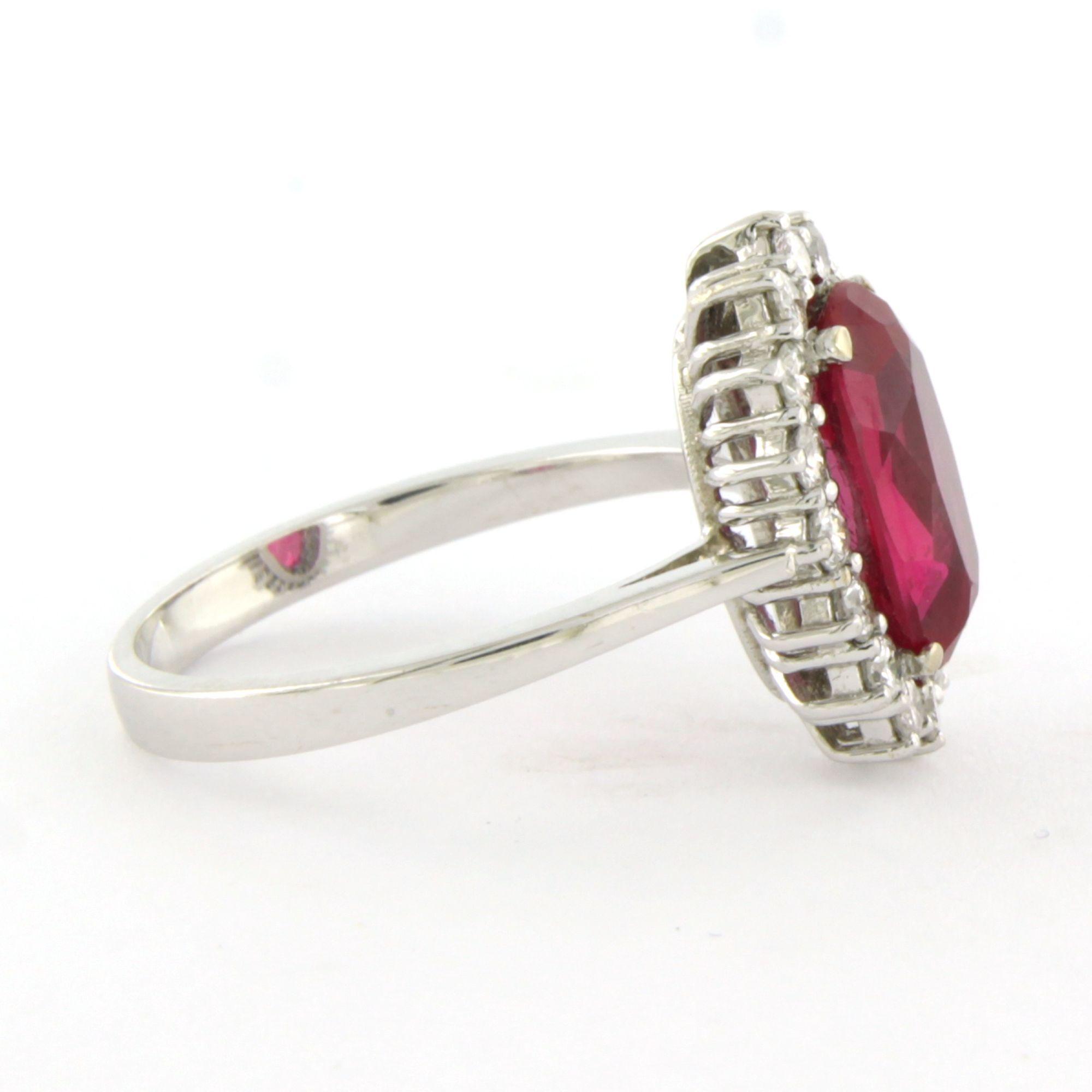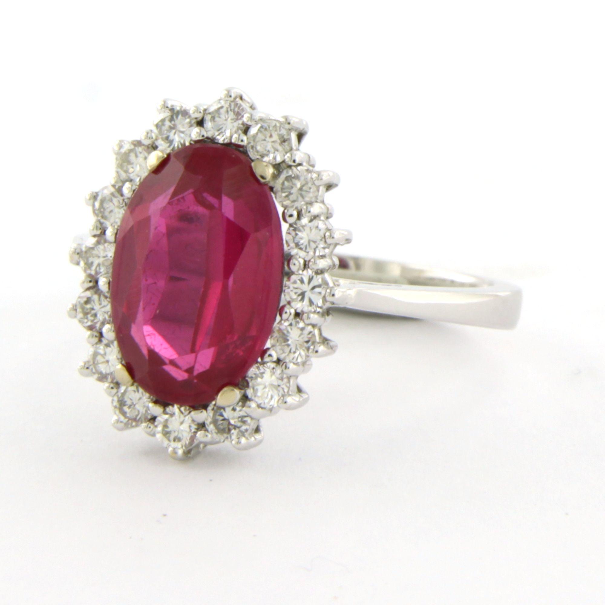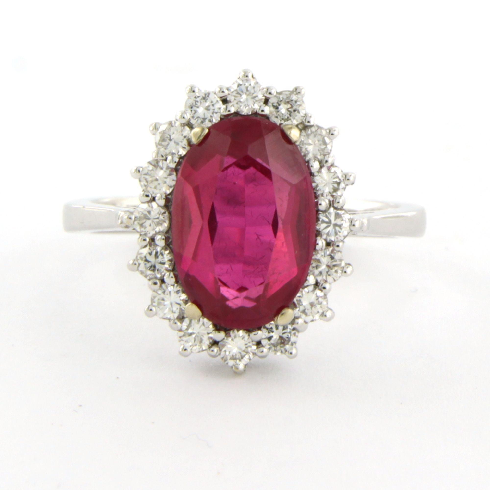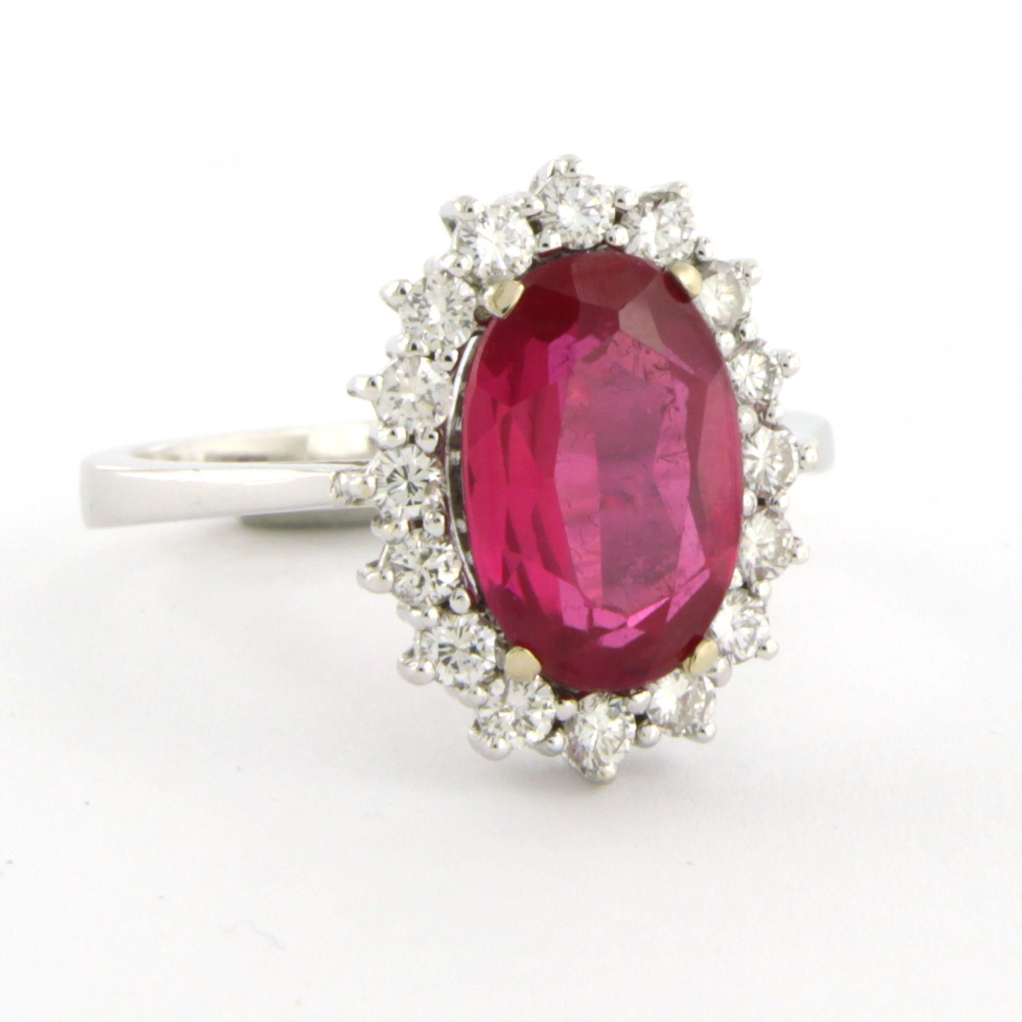 14 Kt. witgouden ring bezet met robijn en briljant geslepen diamanten tot. 0.56 ct F/G VS/SI - ringmaat 17.75 (56)