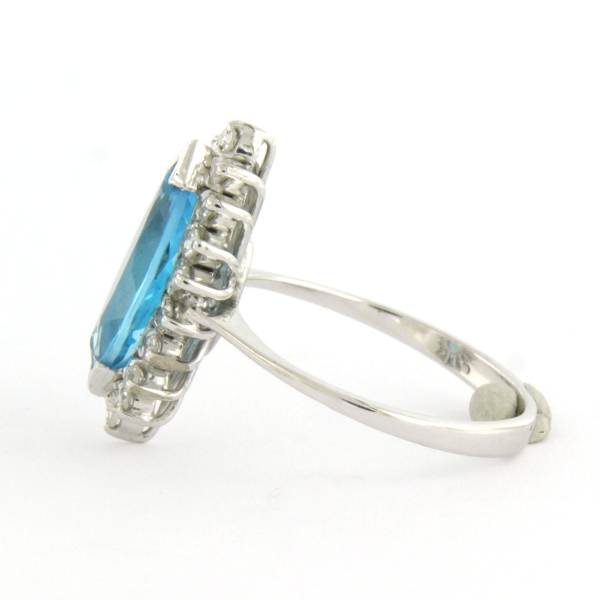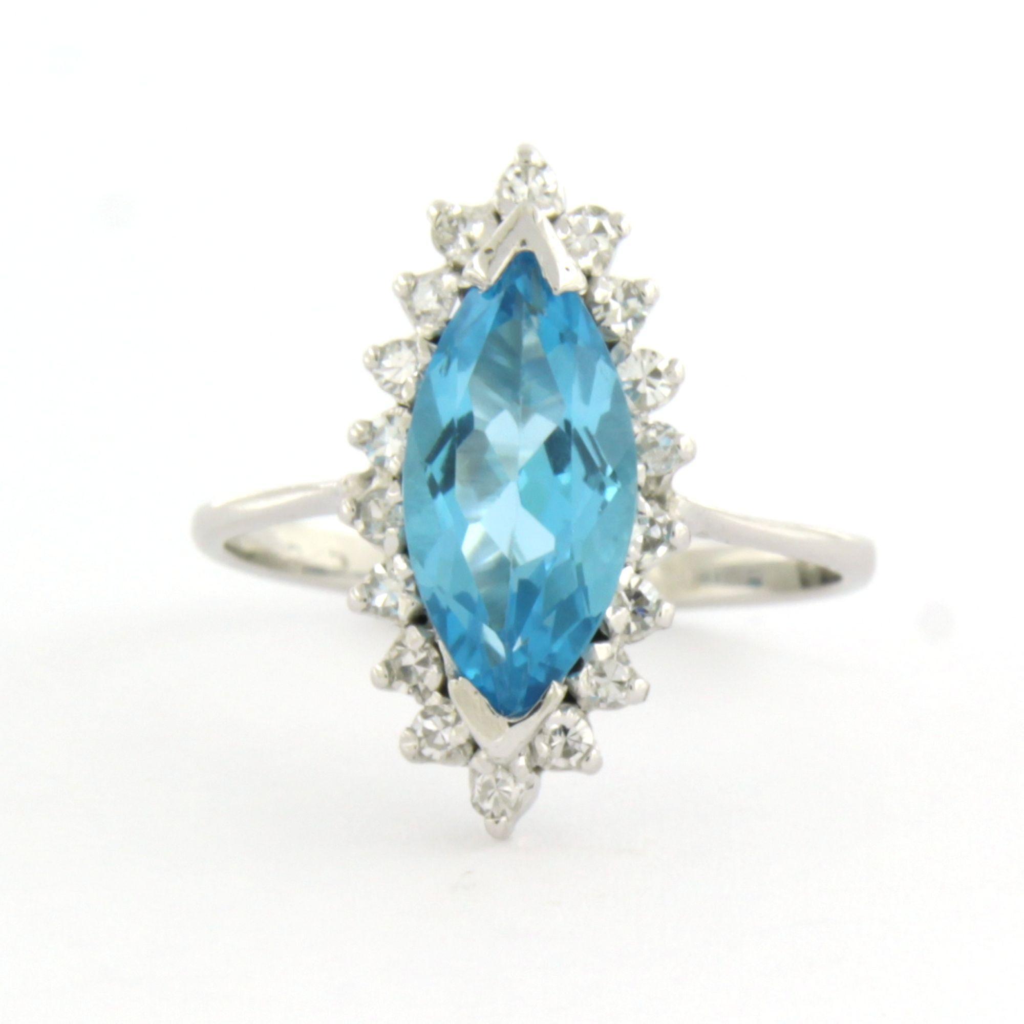 Witte (BWG) ring bezet met markies geslepen topaz 1.80 ct en single cut geslepen diamanten tot. 0.18 ct F/G VS/SI - ringmaat 15.5 (49)