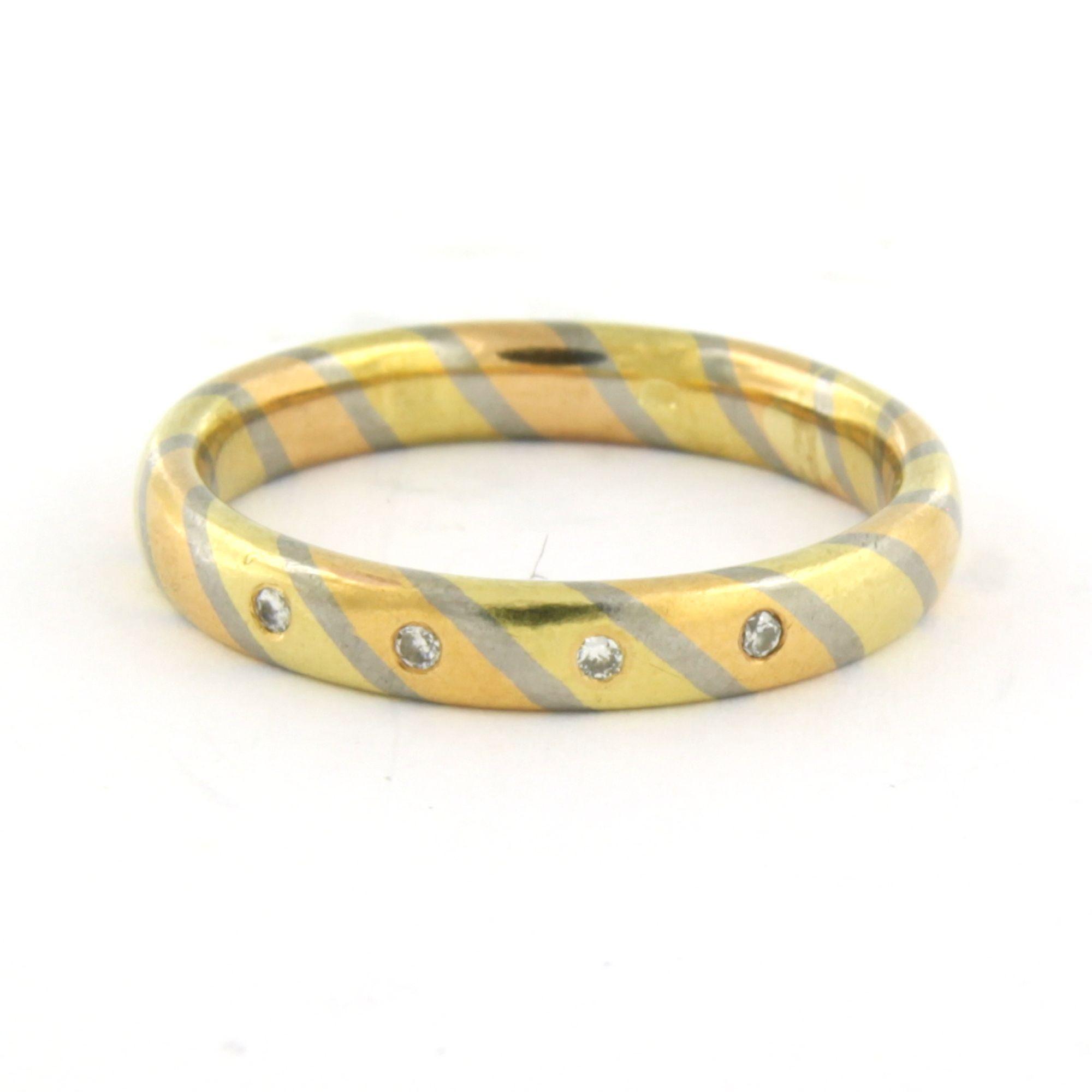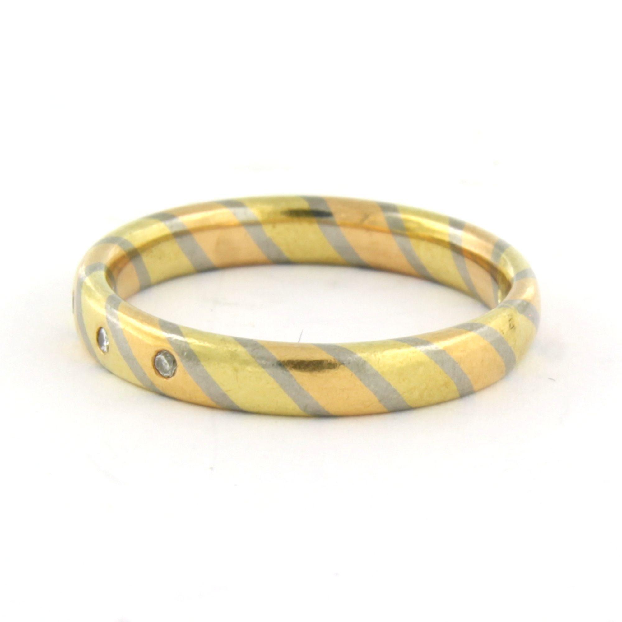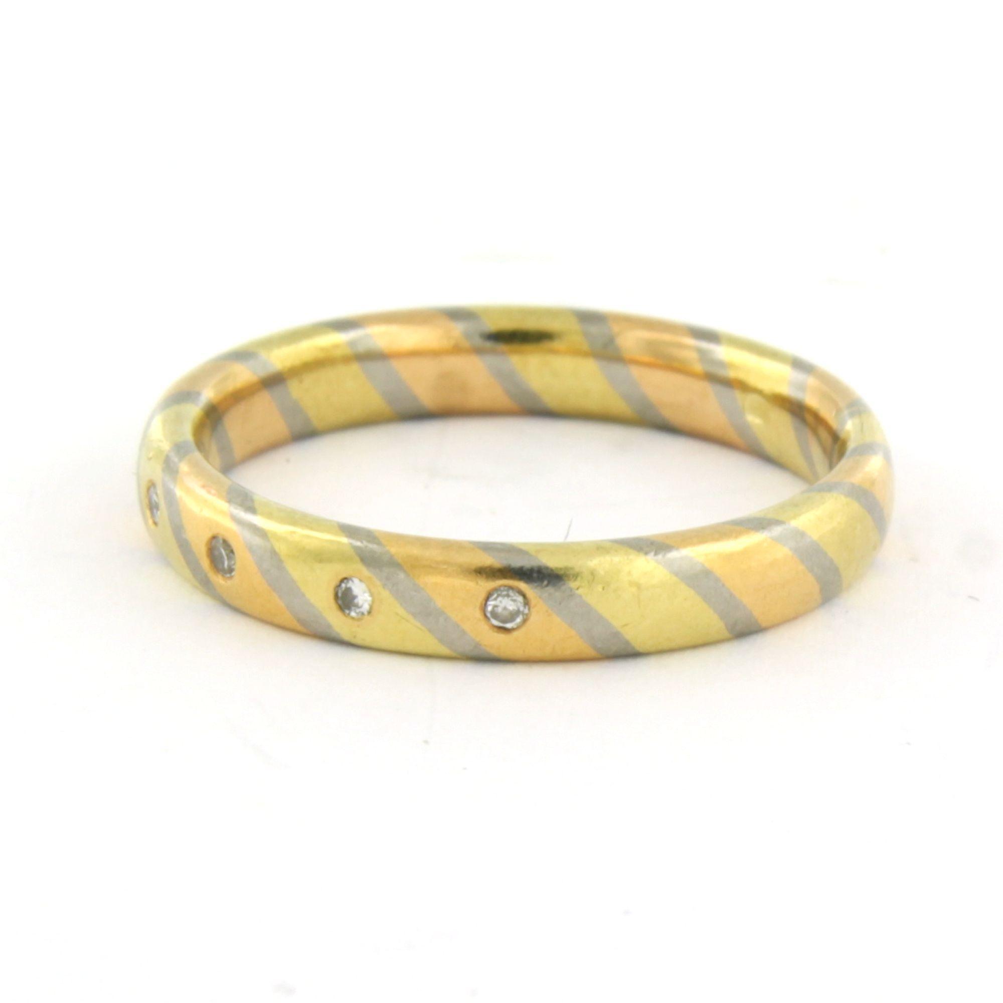 WEMPE – 18 Kt. drie kleuren gouden band ring bezet met briljant geslepen diamant tot. 0.02ct – F/G - VS/SI - ringmaat 17.25(54)