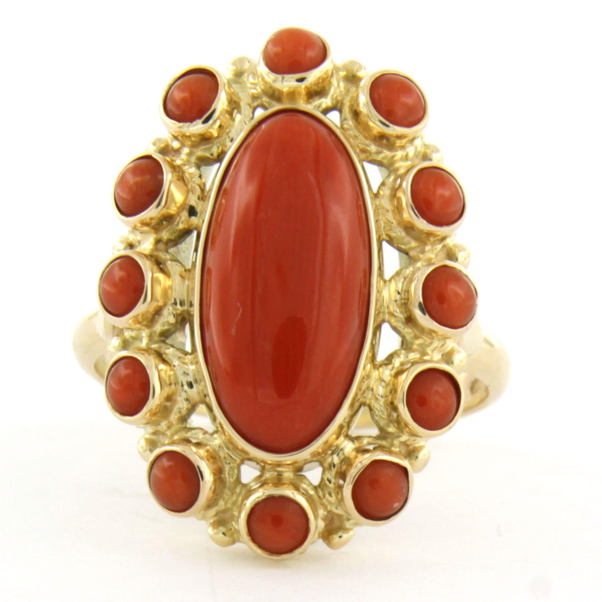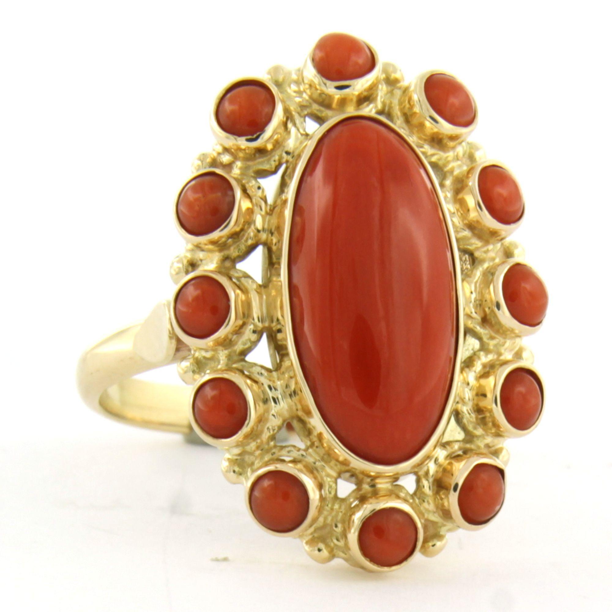 14 Kt. geelgouden ring bezet met koraal - 6.3 gram - ringmaat 18.5(58)