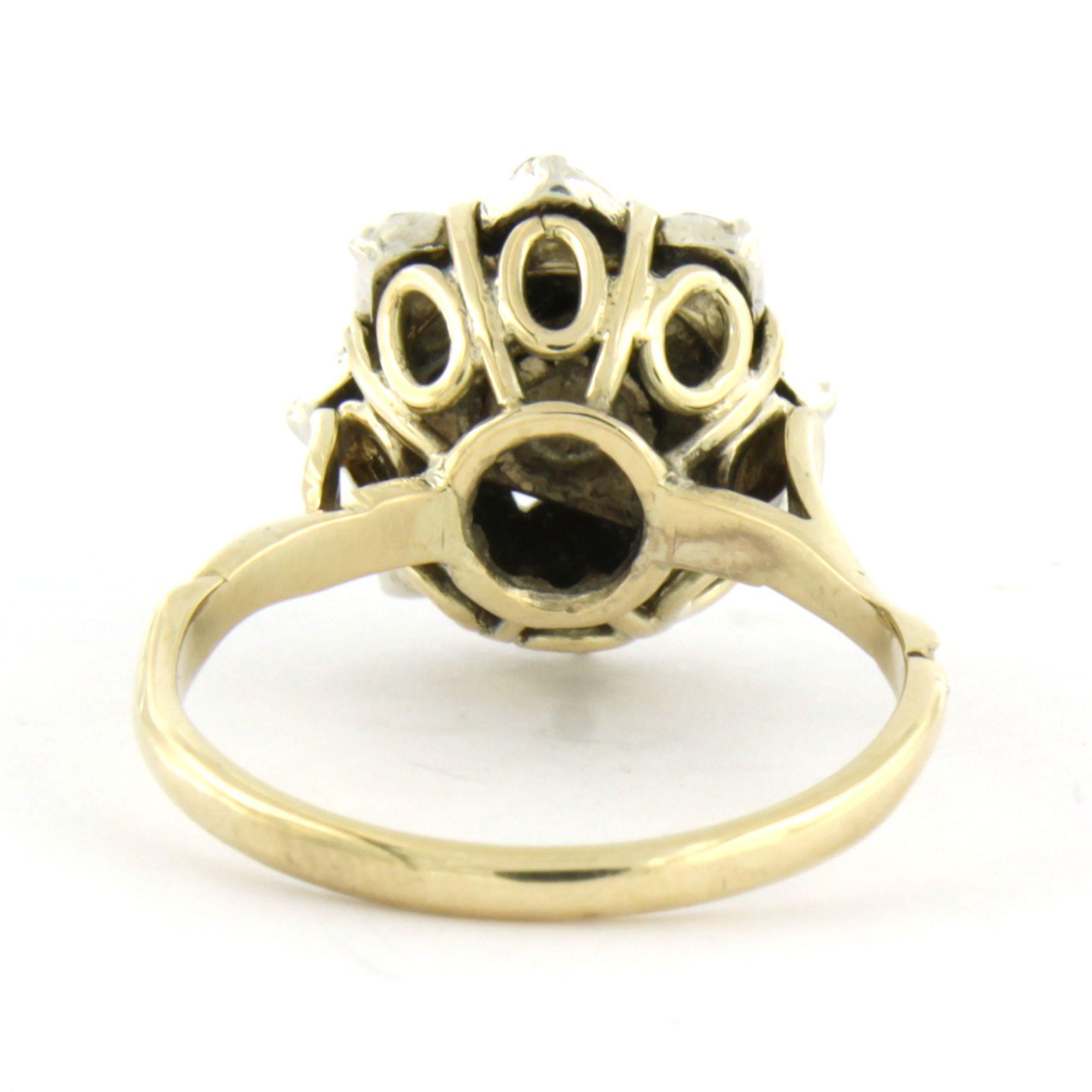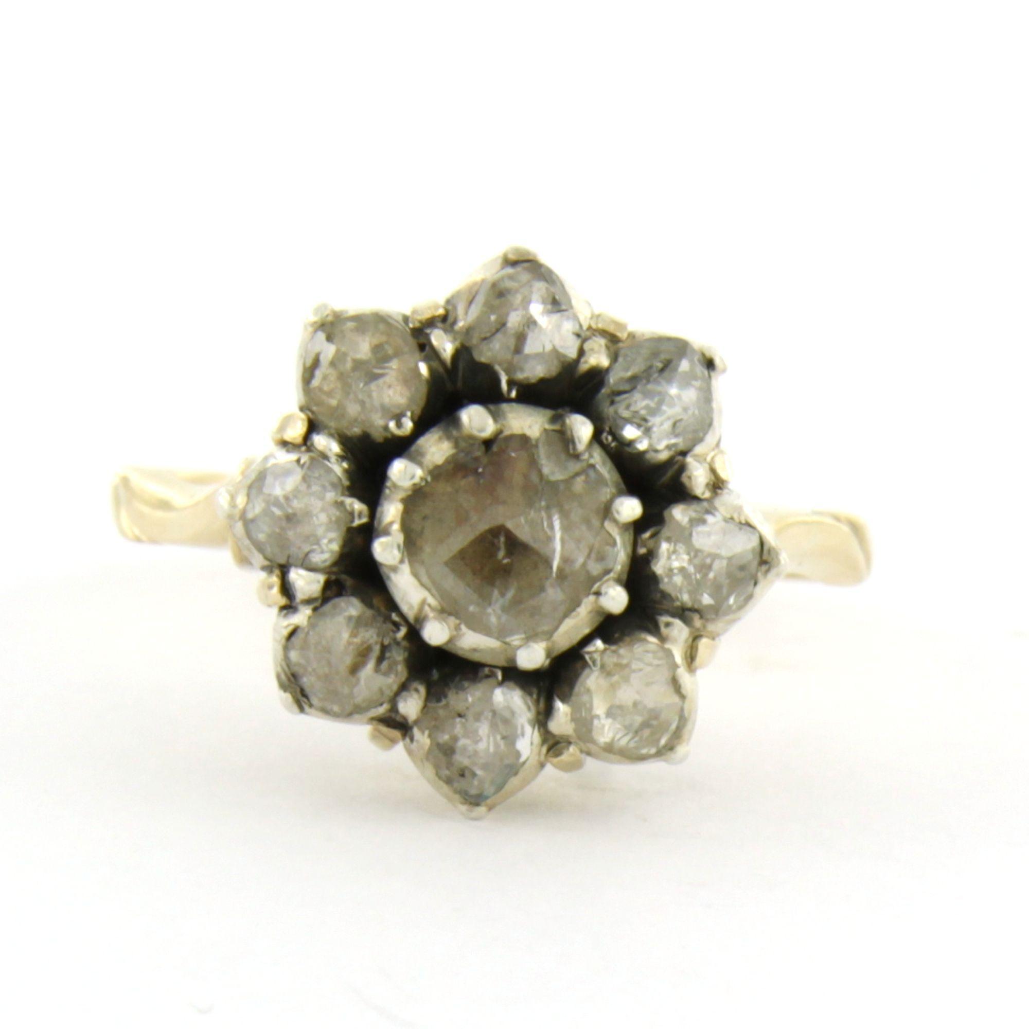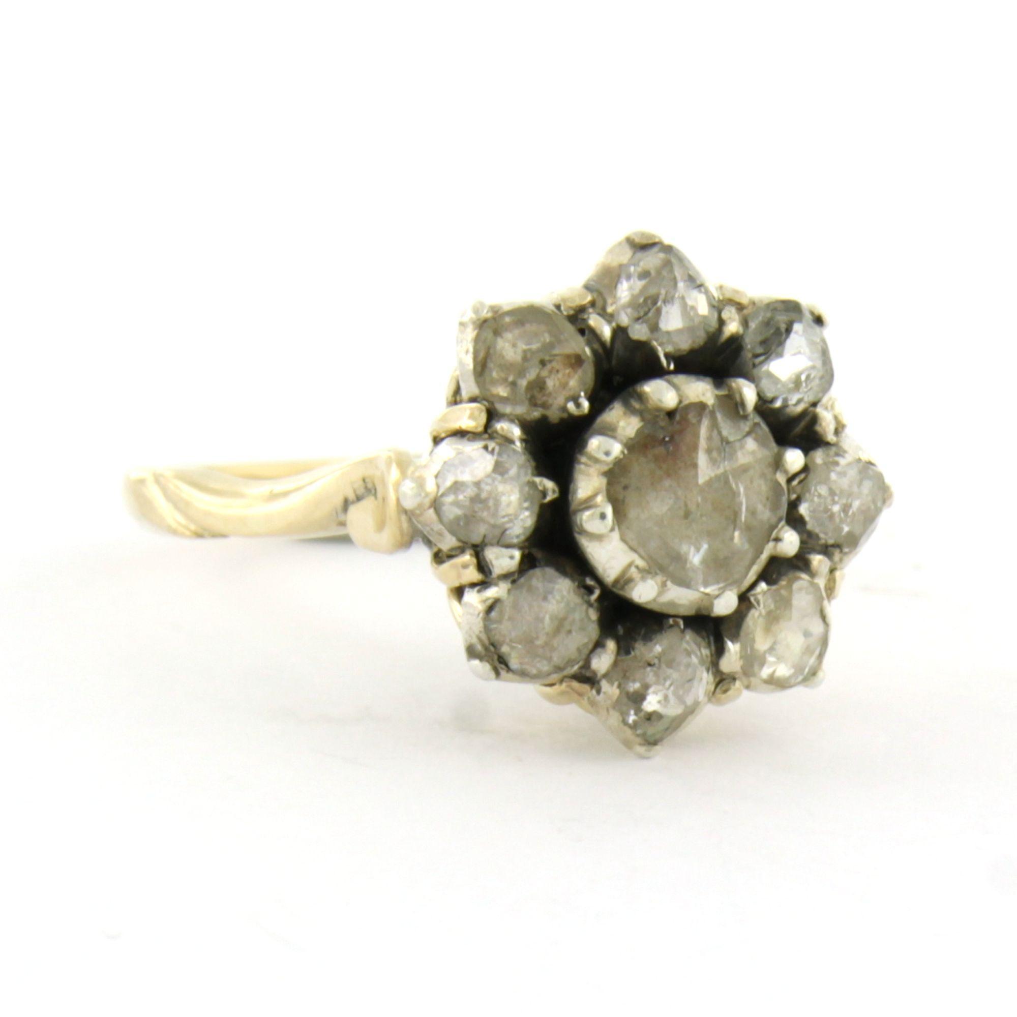 14 Kt. goud met zilveren ring met roos geslepen diamant tot. 0.35ct – G/H - SI - ringmaat 17.75(56)