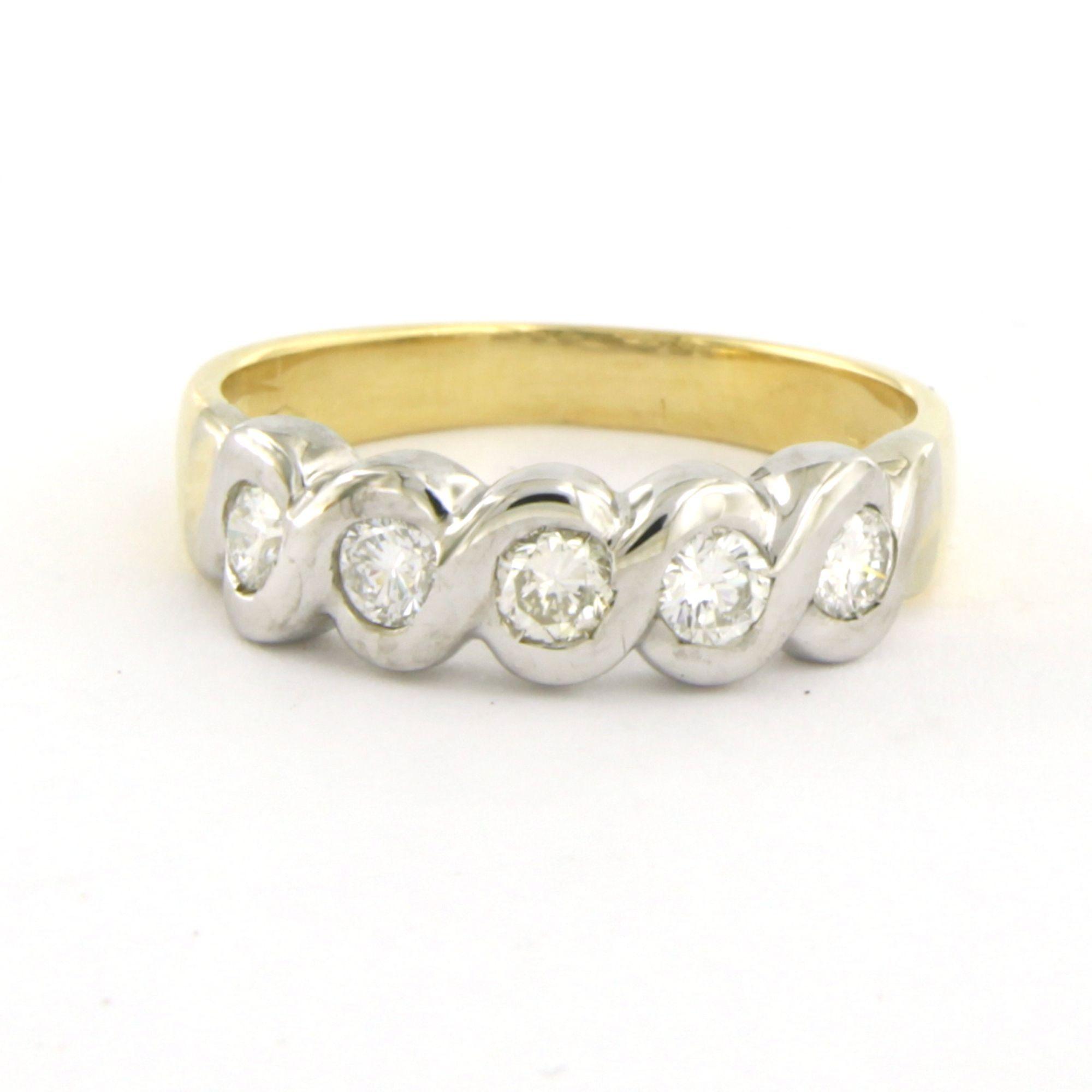 18 Kt. bicolour gouden ring bezet met briljant geslepen diamant tot. 0.45ct - ringmaat 17.5(55)