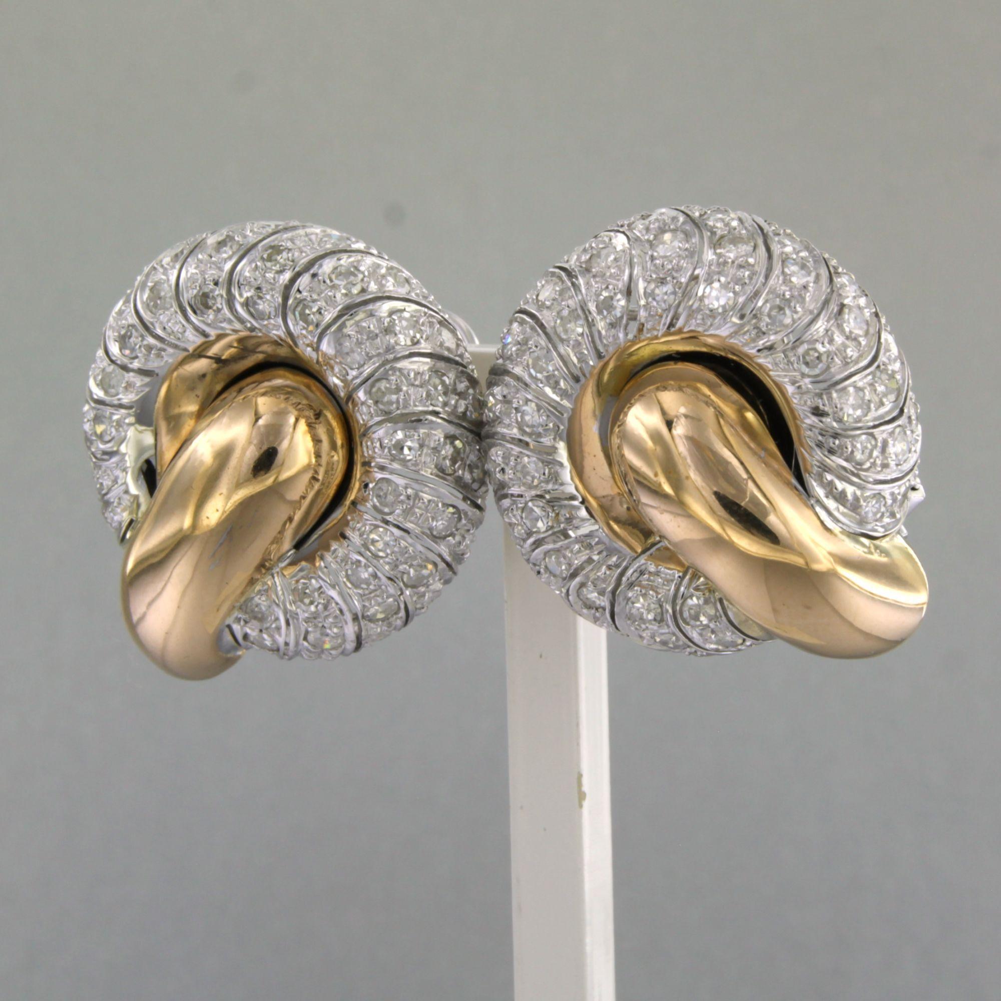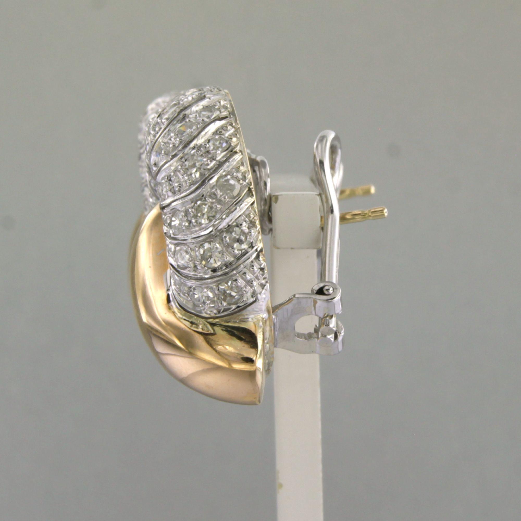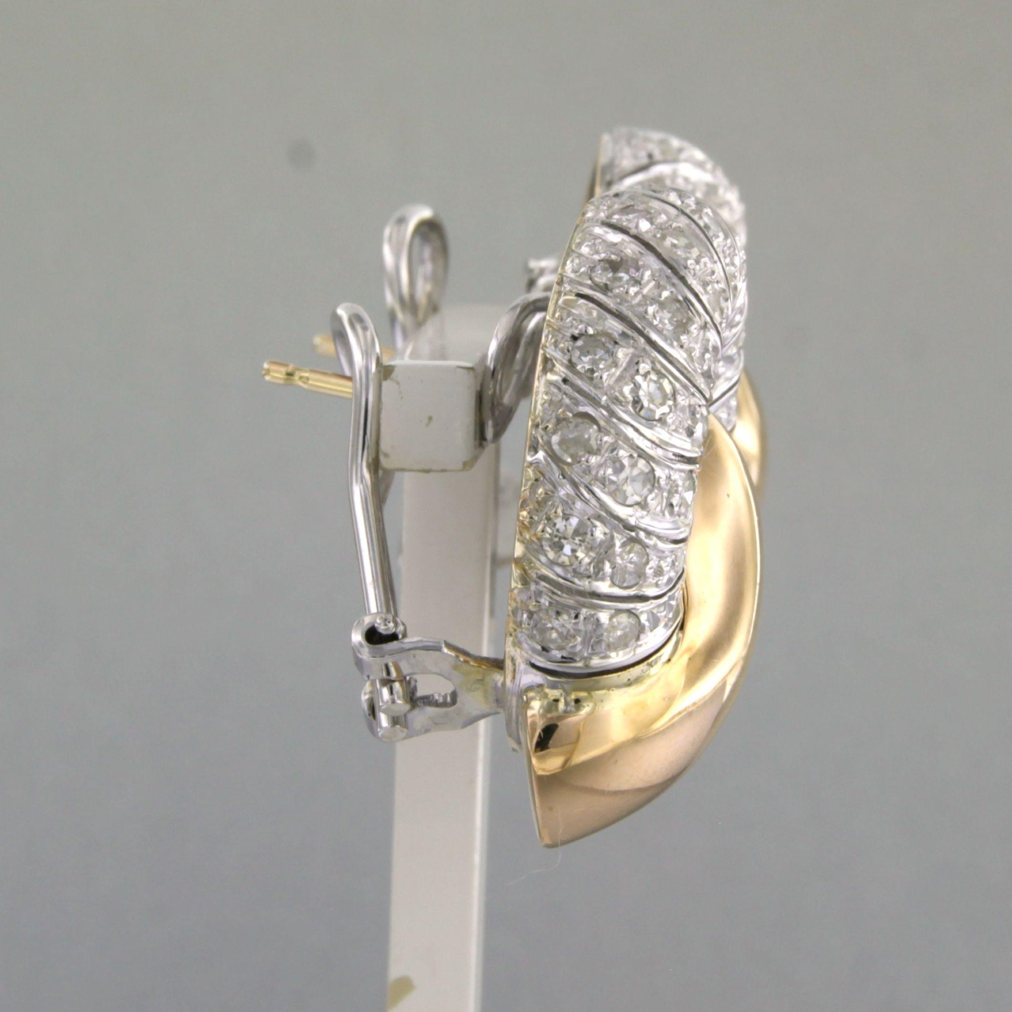 18 Kt. bicolour gouden oorclips bezet met single cut geslepen diamanten tot. 2.50ct - 23.5 gram